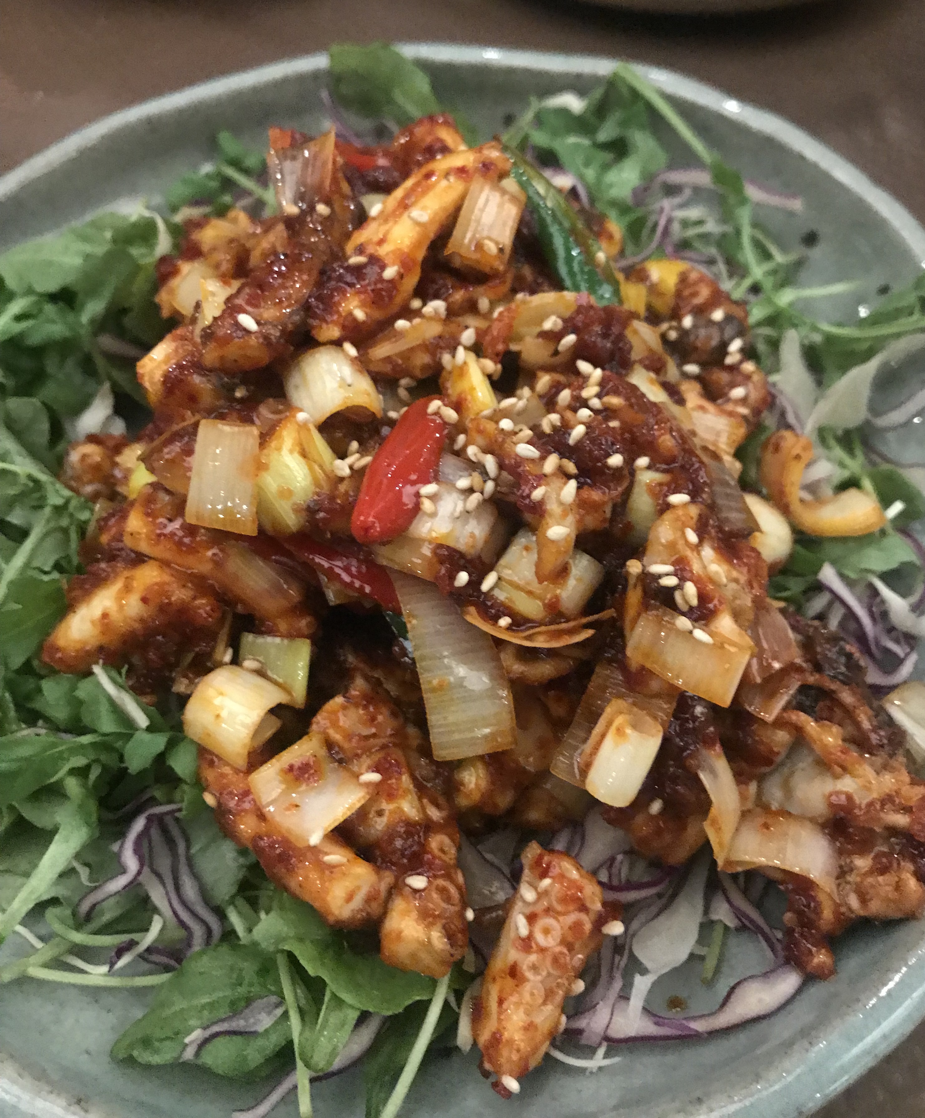 Un accueil agréable. Une cuisine coréenne avec des plats originaux mais qui s’avère assez inégale. Le croustillant de Bulgobi est une tuerie quand la salade de poulpe est caoutchouteuse et manque de peps… Les raviolis aux légumes sont super agréables et équilibrés quand le Kimchi un peu fade… c’est correct dans l’ensemble mais je ne suis pas ressorti conquis.