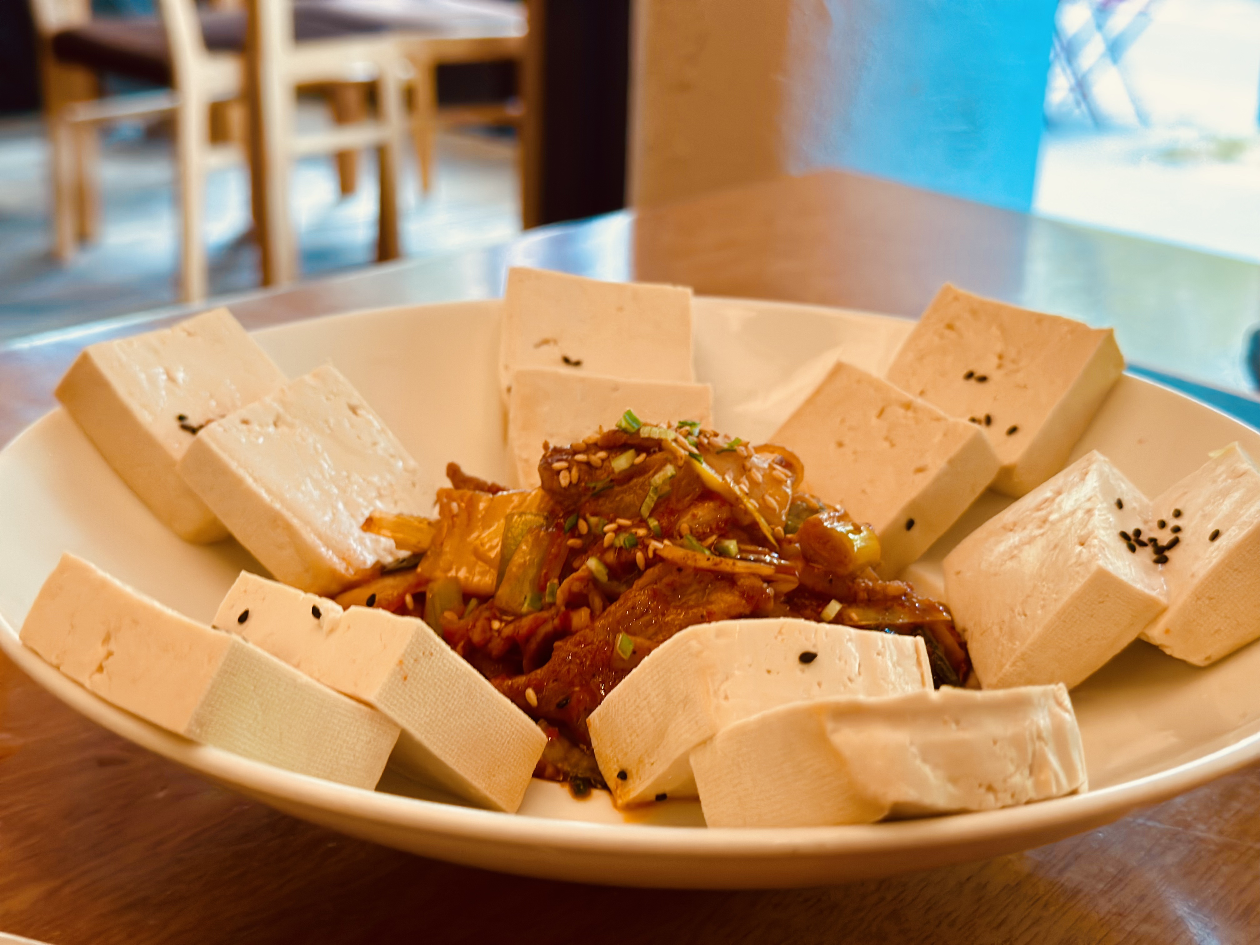 Un lieu très agréable, tout de bois et d'or, avec des plats à la présentation soignée. Éviter les plats frits pour manger en individuel, cela risquerait d'être trop monotone. L'idéal reste de partager ces beaux plats à plusieurs pour éviter la monotonie et goûter divers saveurs de la cuisine coréenne. Le calamar pimenté est un met de choix pour ceux qui supportent bien les épices et la salade de tofu est un excellent plat d'accompagnement.