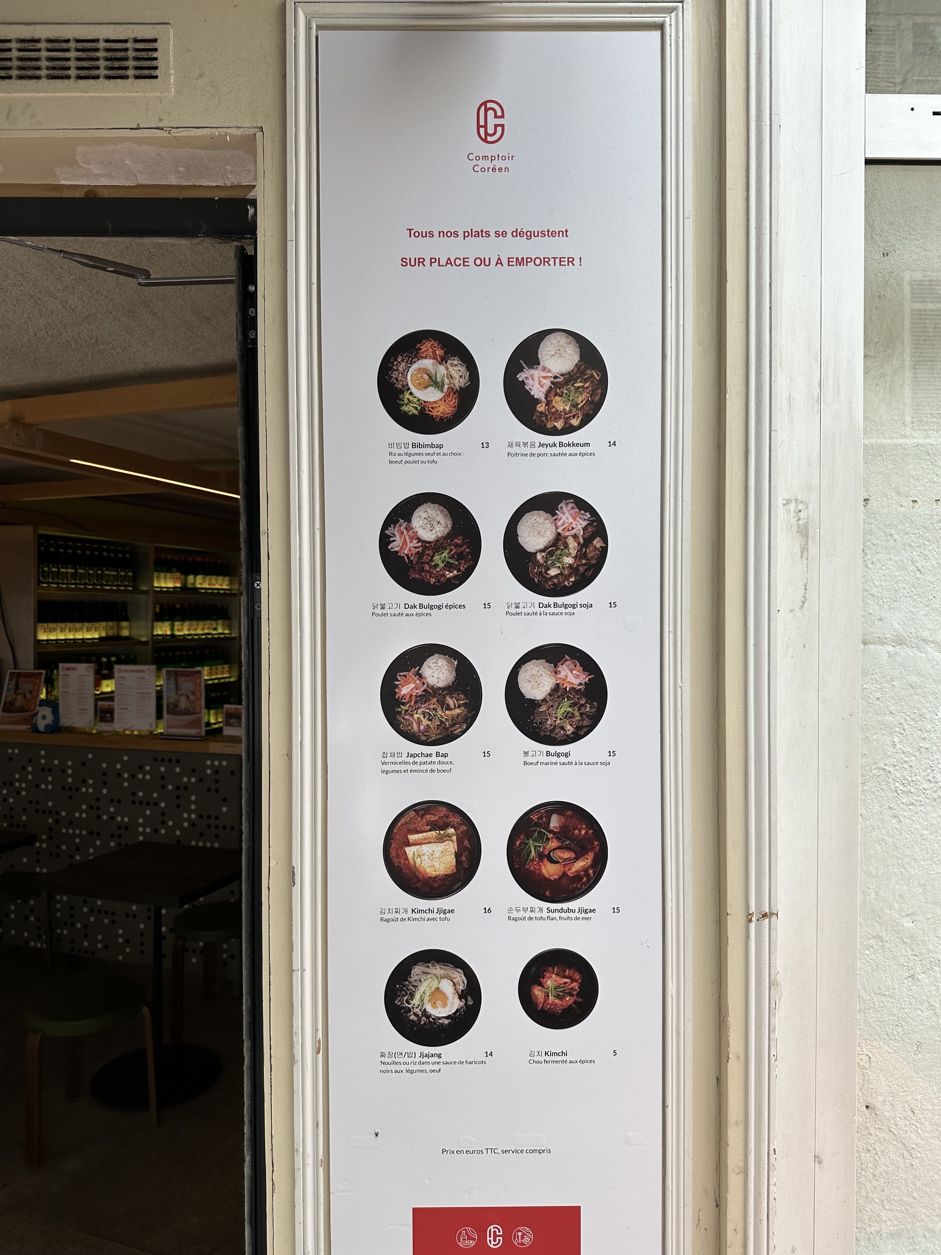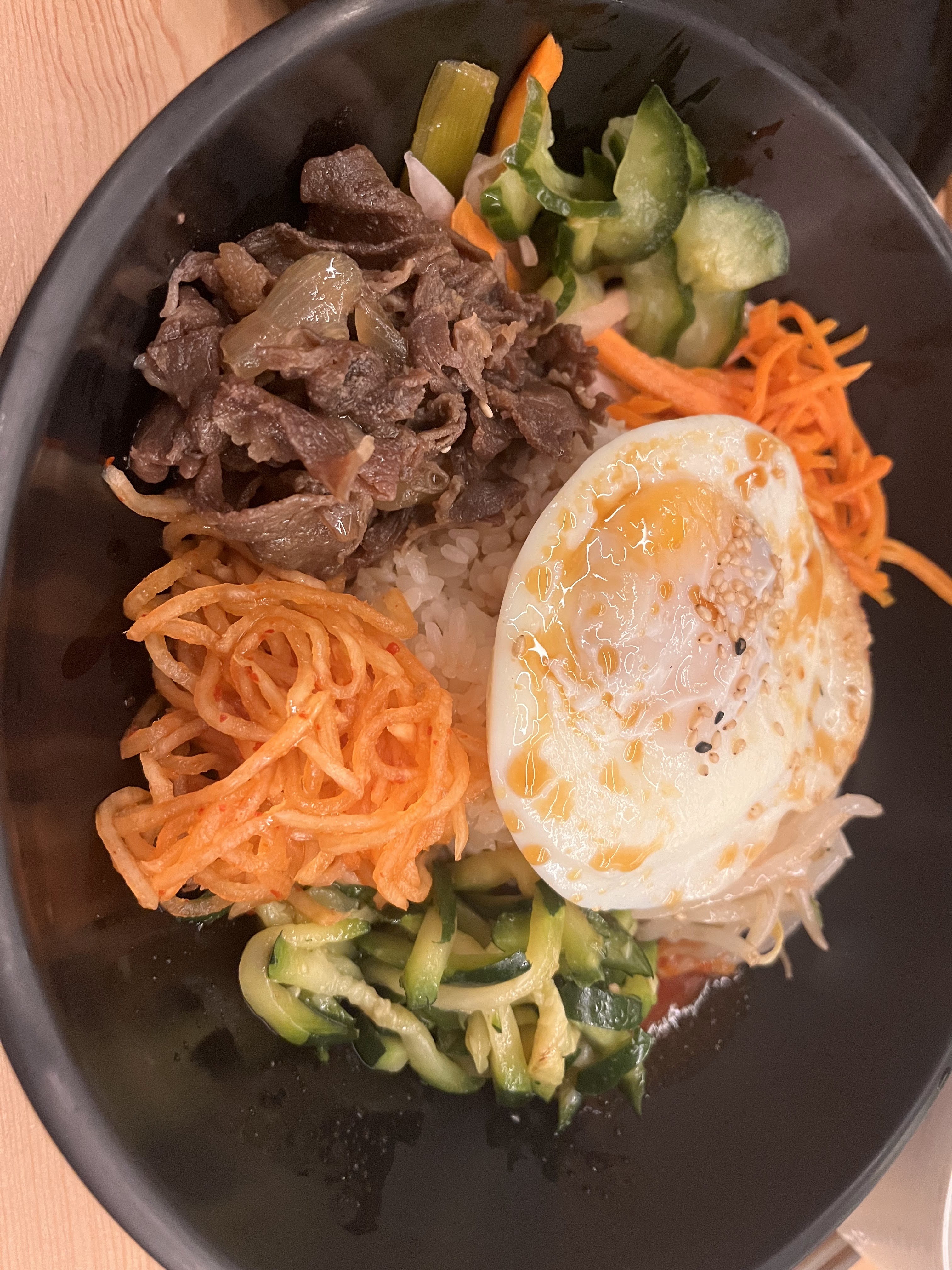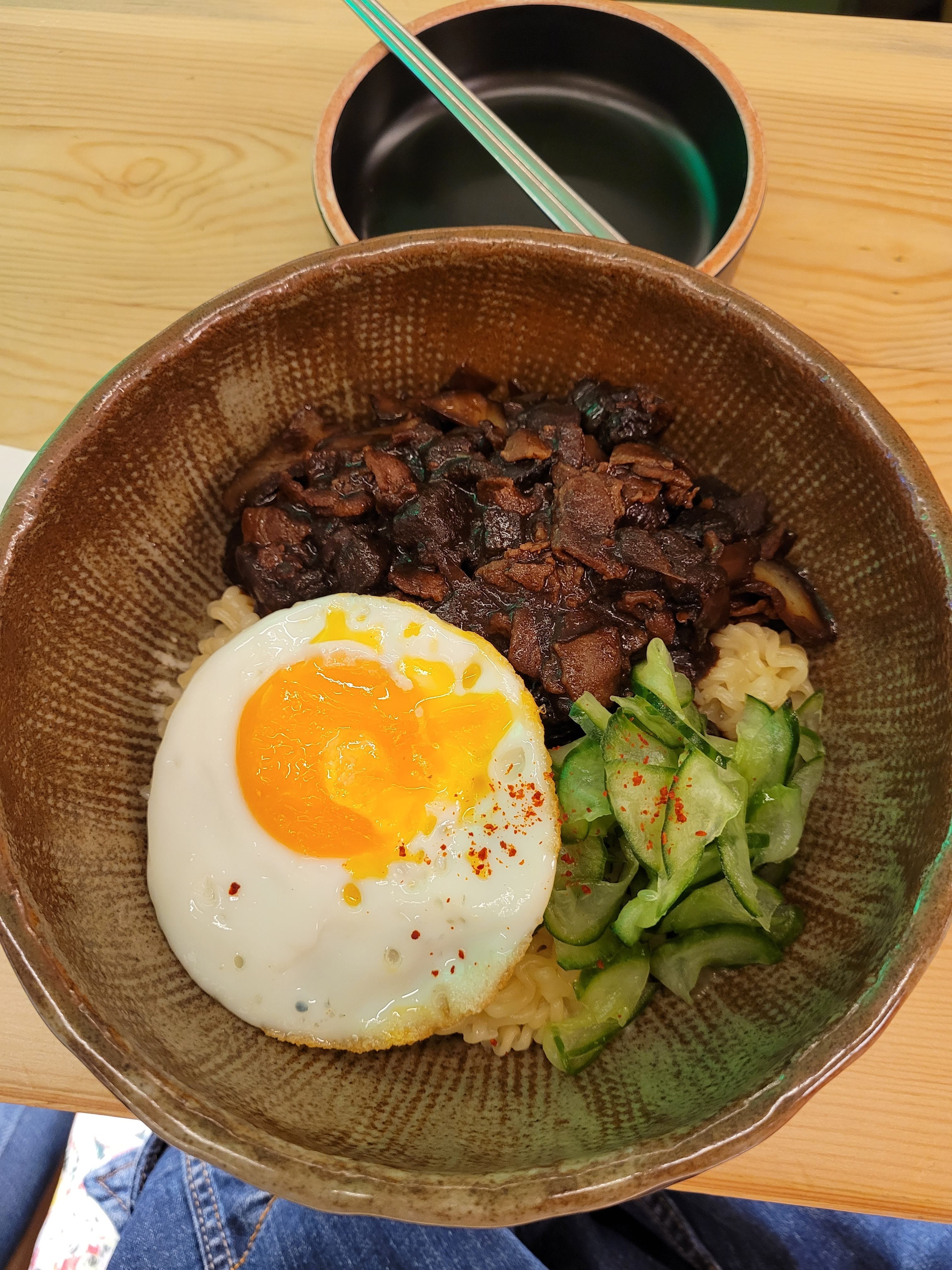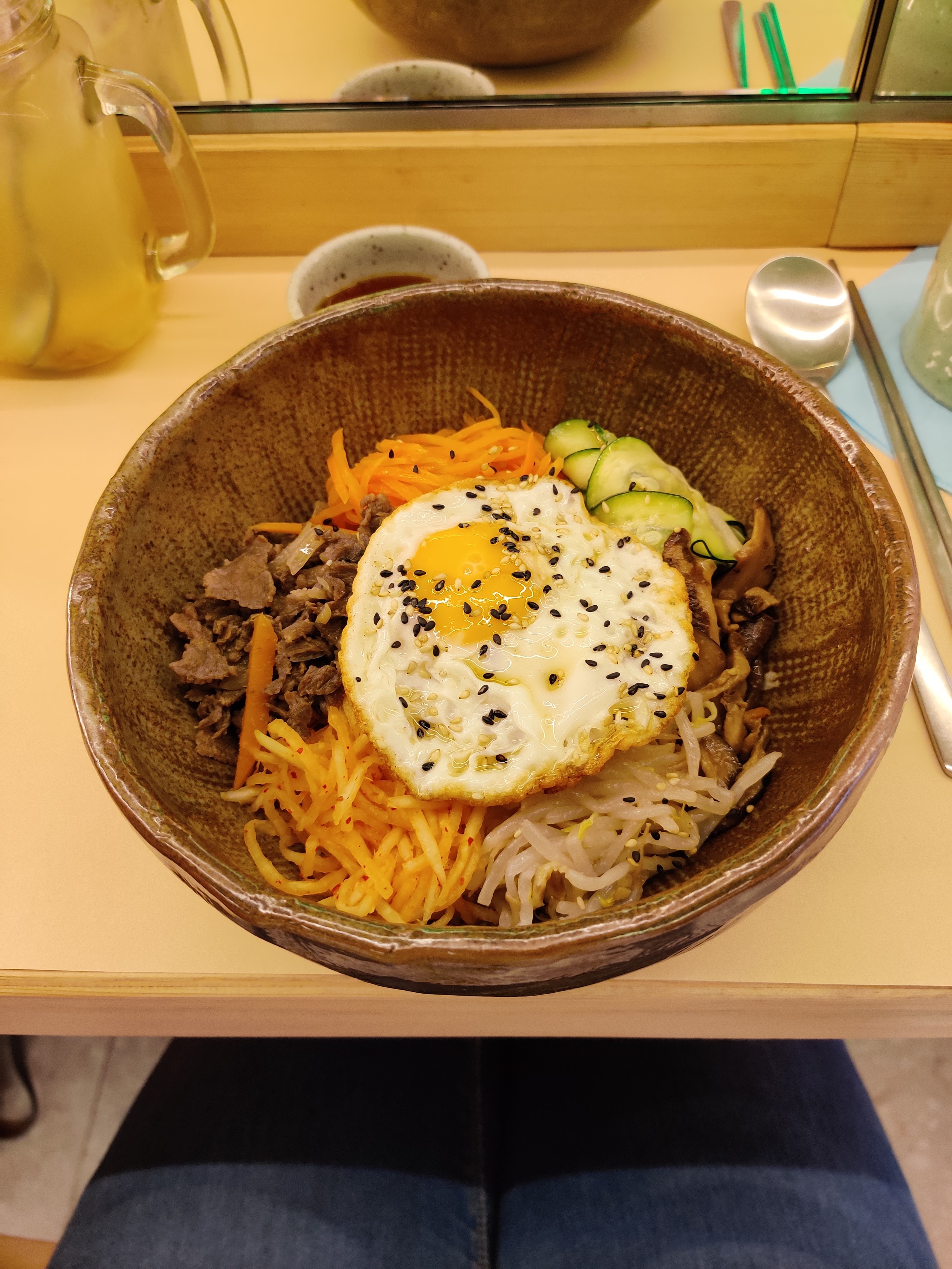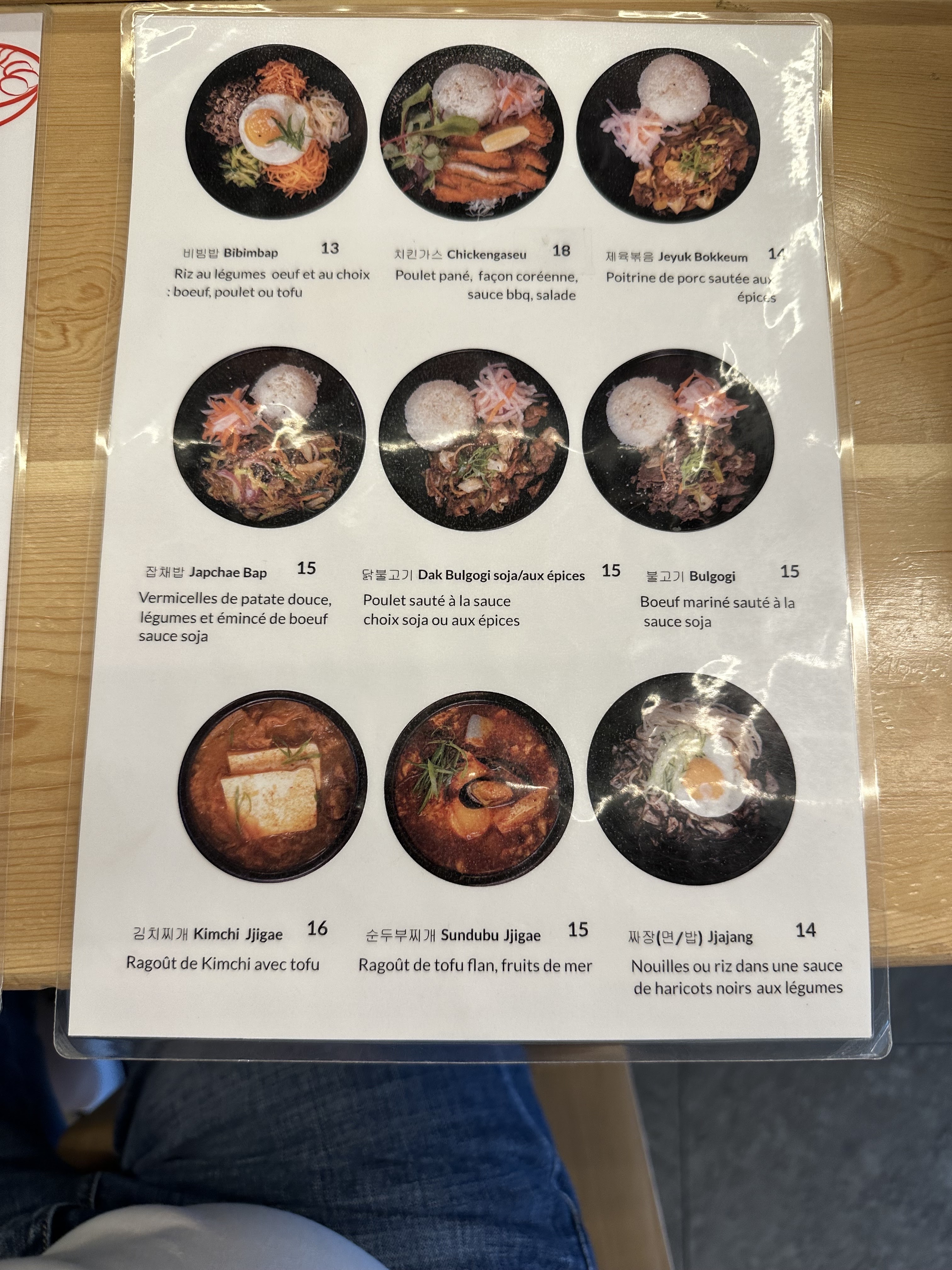 Quoi qu'il en soit, le fait que l'endroit soit plutôt sympa, le service très bon et le personnel très sympathique, malheureusement, la nourriture est décevante ! Le bibimbap était très froid et manquait beaucoup de goût. La tarte au kimchi était grasse et détrempée ! pour la qualité c'est cher