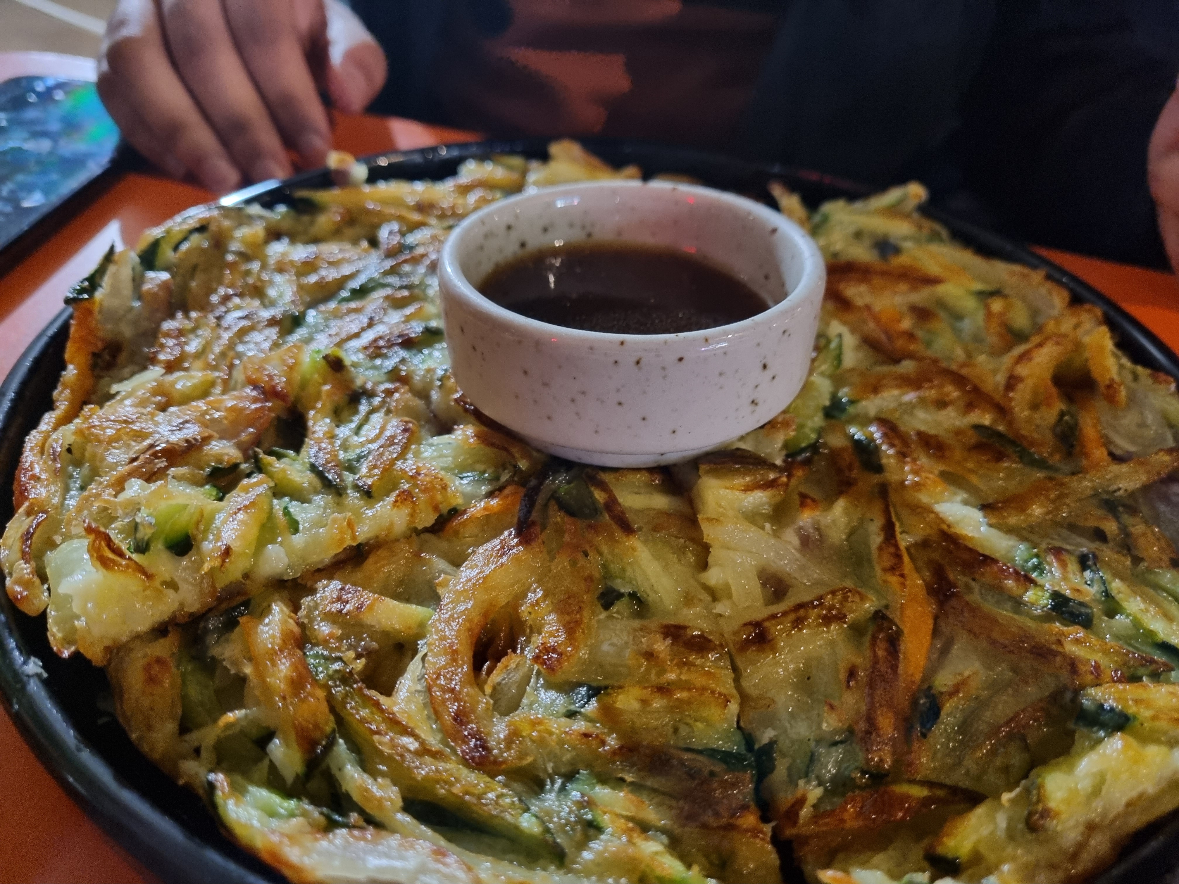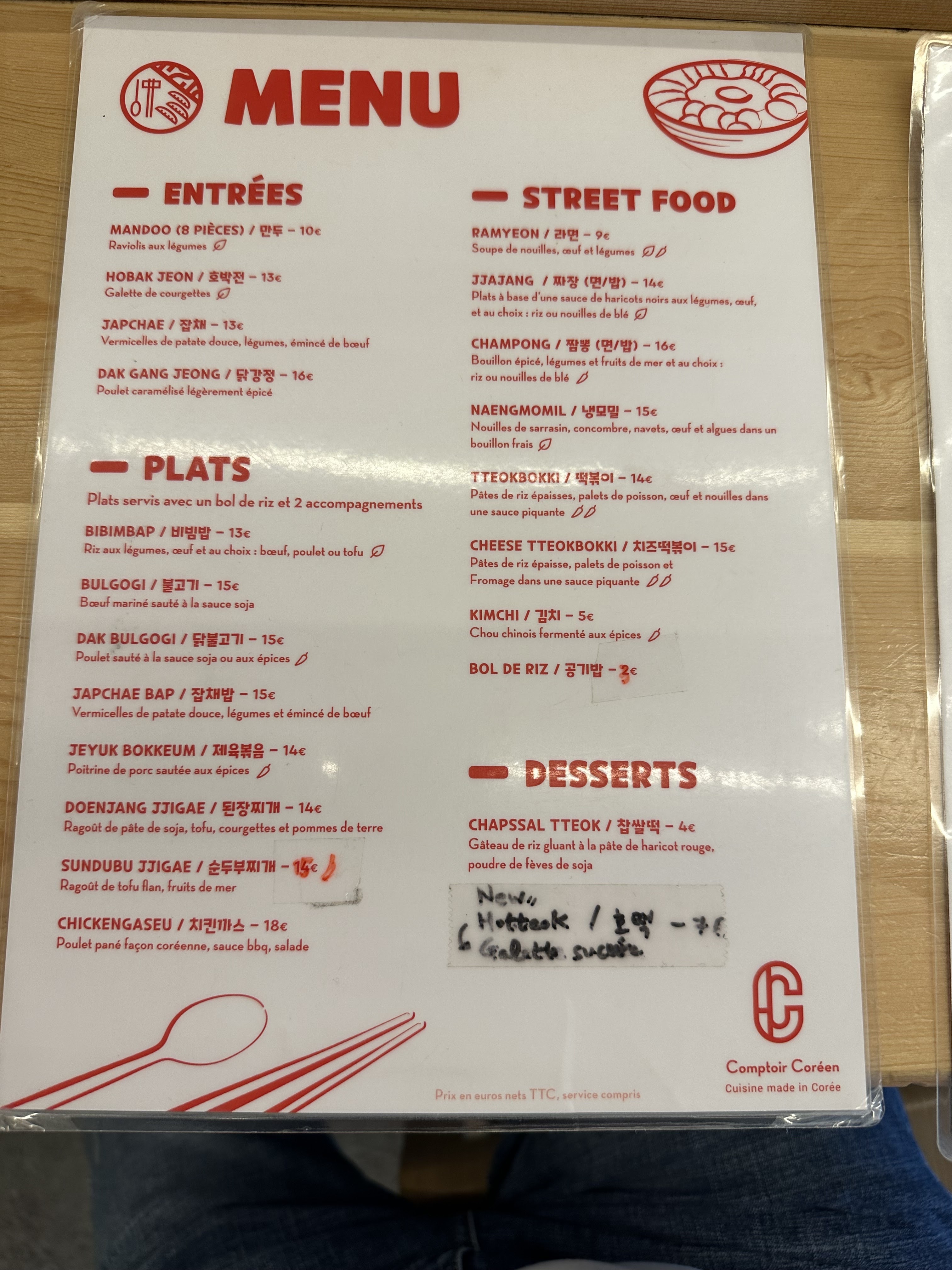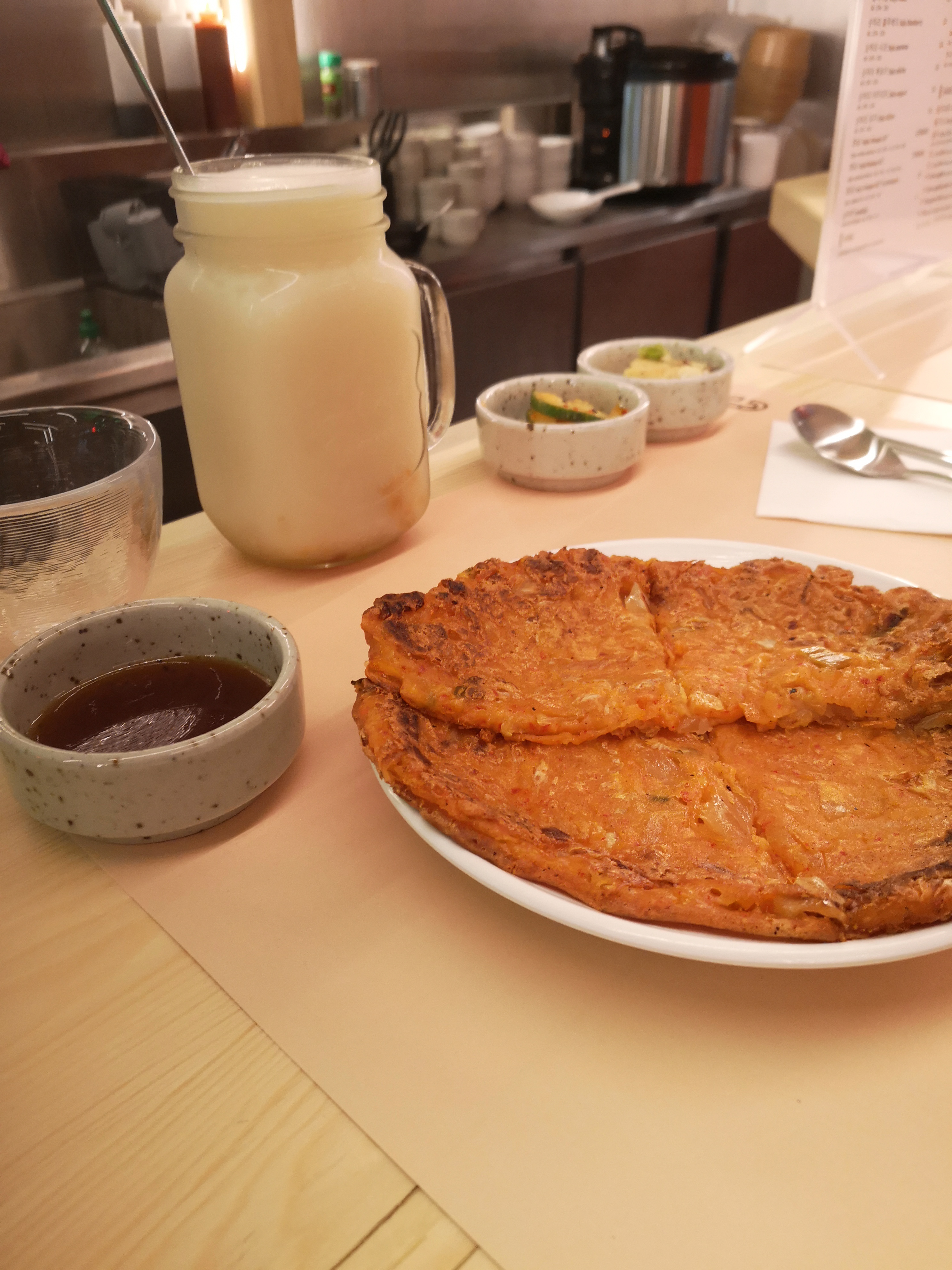J'ai pris des crêpes au bibimbap boeuf et au kimchi. Les deux étaient OK. Le bibimbap manquait de saveur et la crêpe au kimchi n’était pas salée, peut-être qu’ils l’avaient oublié, mais elle était épicée. Tbh 13 € pour une crêpe au kimchi, c'est injustifié car je n'appellerais pas ça un vrai repas mais plutôt une entrée et je ne l'achèterais plus jamais. Mais je reprendrais le bibimbap si je n’avais pas d’autre choix. Le service était bien Par contre je ne comprends pas la note de 4,6, l'endroit est correct mais sans plus J'ai mis 3 étoiles au lieu de 4 car 13€ pour une crêpe au kimchi c'est absurde