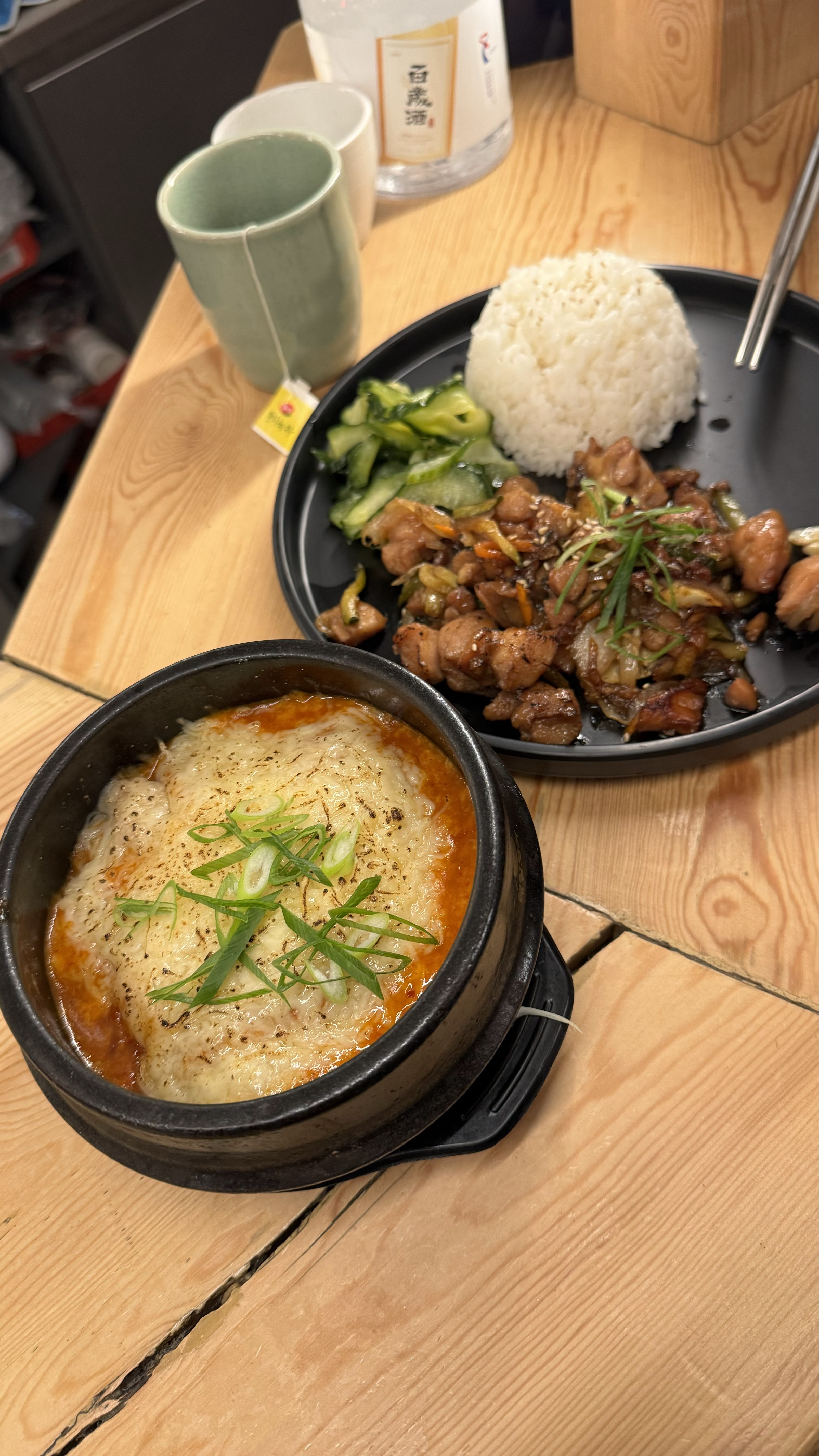 Bonne petite adresse. J'avais pris un tteokbokki au fromage, bien chaud bien bon. Et un autre plat à base de viande (photo), très bon.