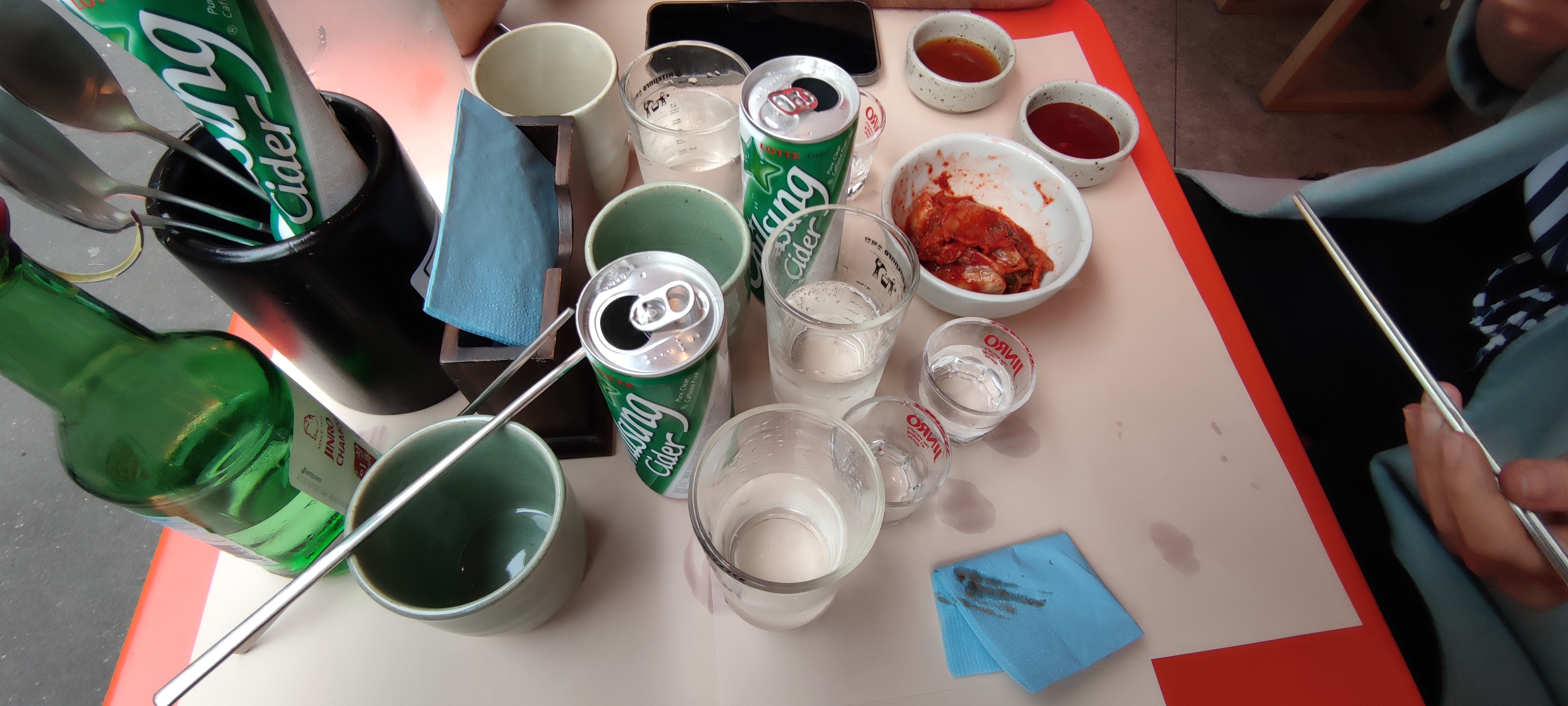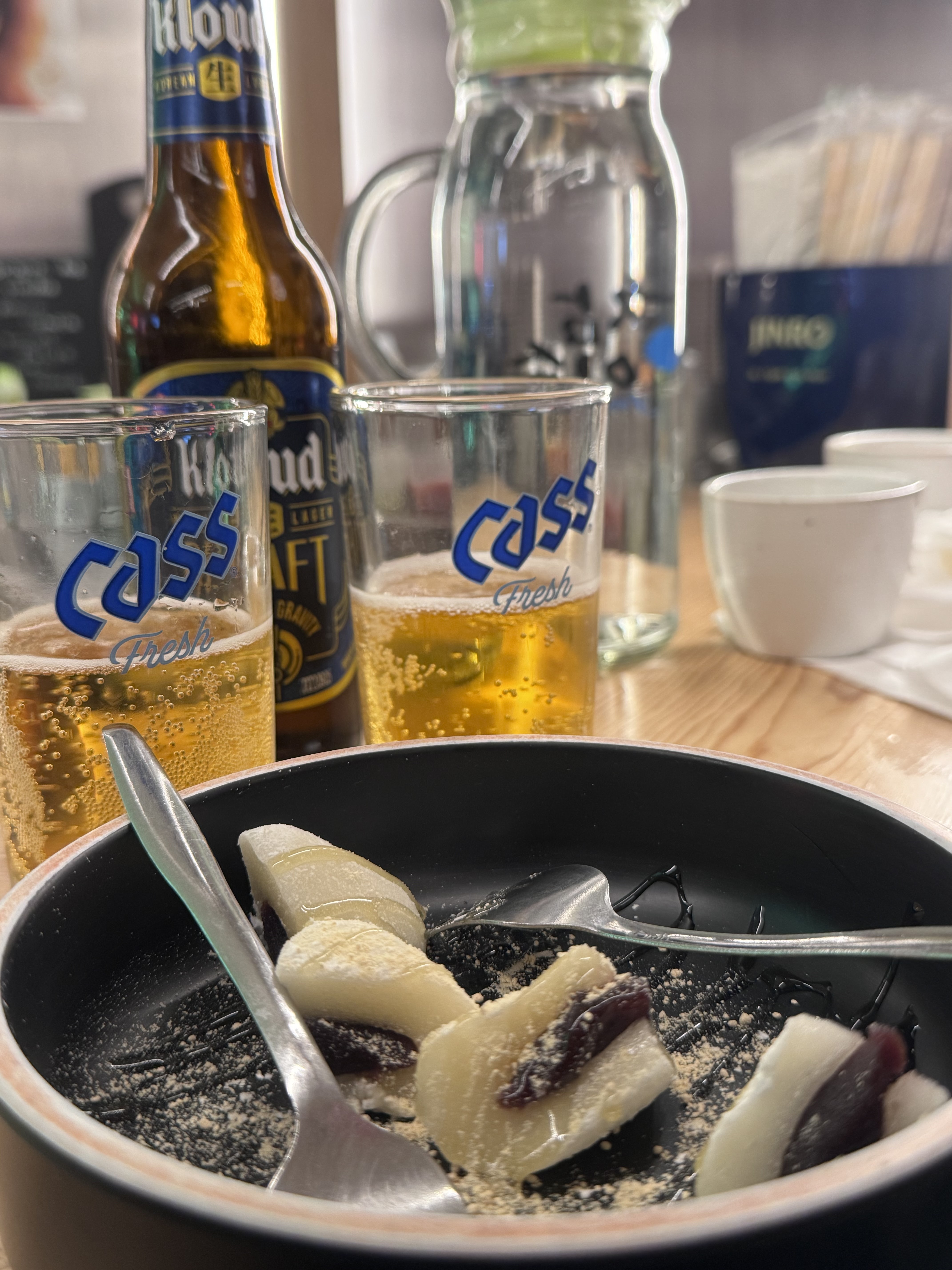 Les serveurs sont super sympas et l’ambiance est cool pour prendre un verre de soju en mangeant.