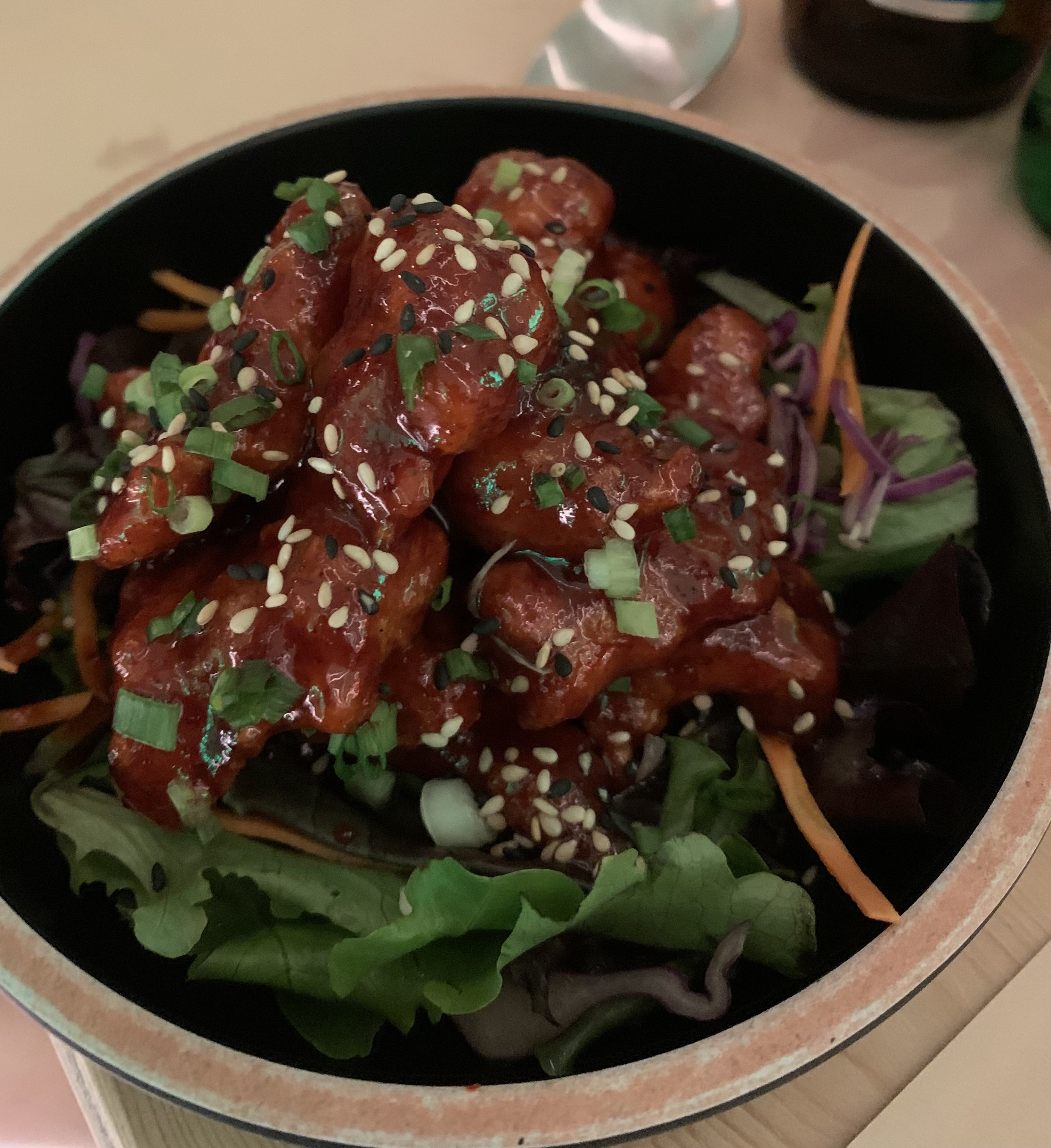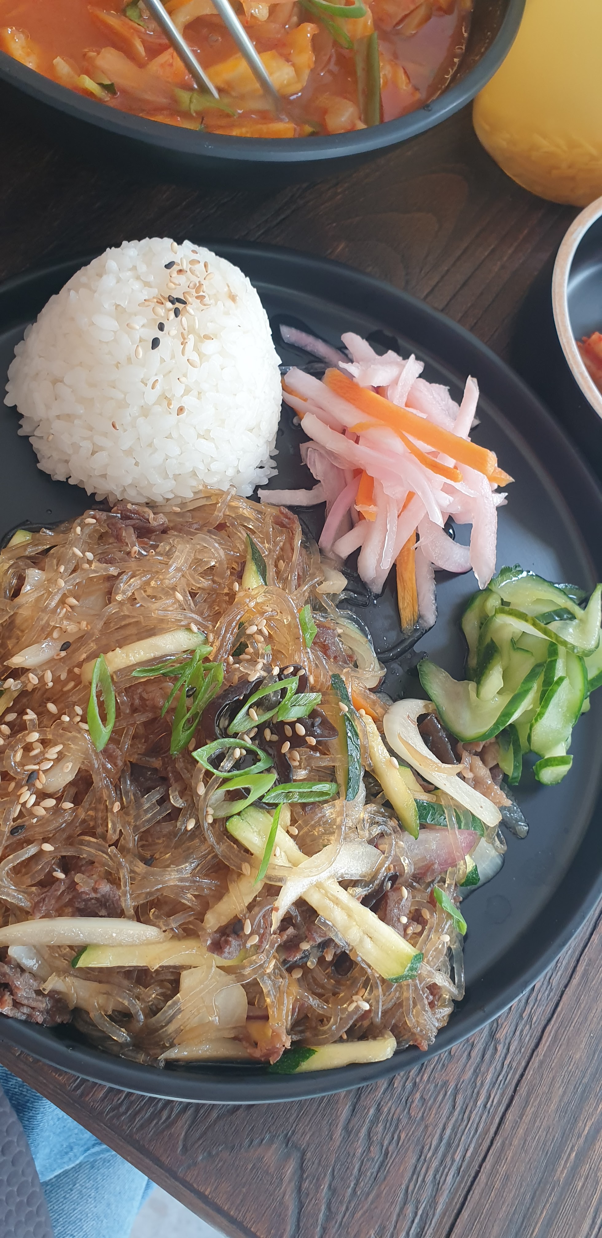 C'était tellement bon et le serveur était juste trop gentil, je vous recommande vivement, j'ai pu gouté le japchae et les teokbokkis et c'est un go to, les teokbokkis sont assez piquants mais vous pouvez demander au serveur de réduire le piment, même si je trouve que c'était la dose parfaite. Le japchae était incroyable c'est pas du tout piquant si vous avez jamais goûté, foncez !!
