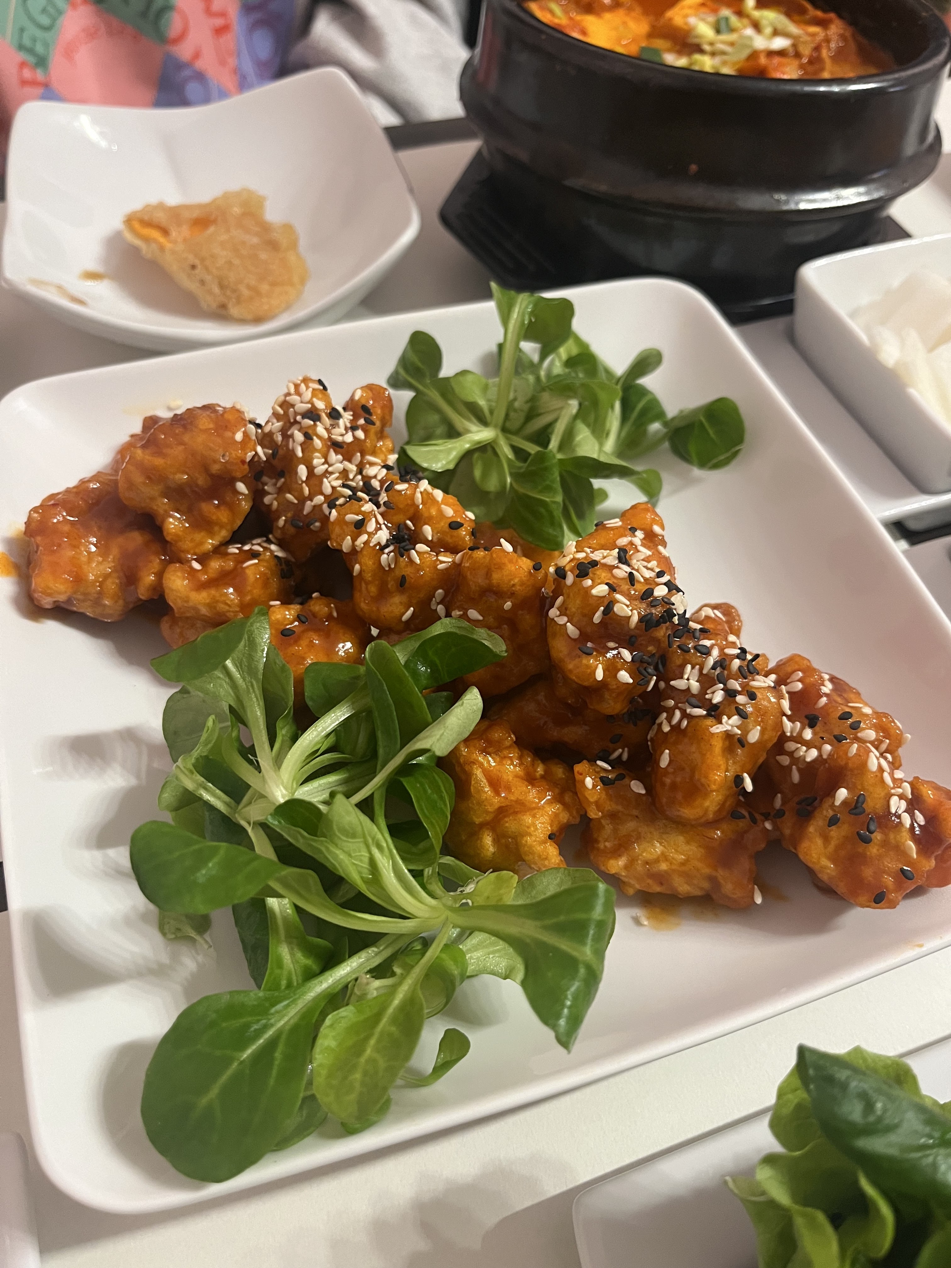Bon 떡볶이 et bon 김밥. Mais je cherche encore le poulet dans le poulet frit sous les couches de fritures... C'est vraiment abusé, y'a pas de viande...