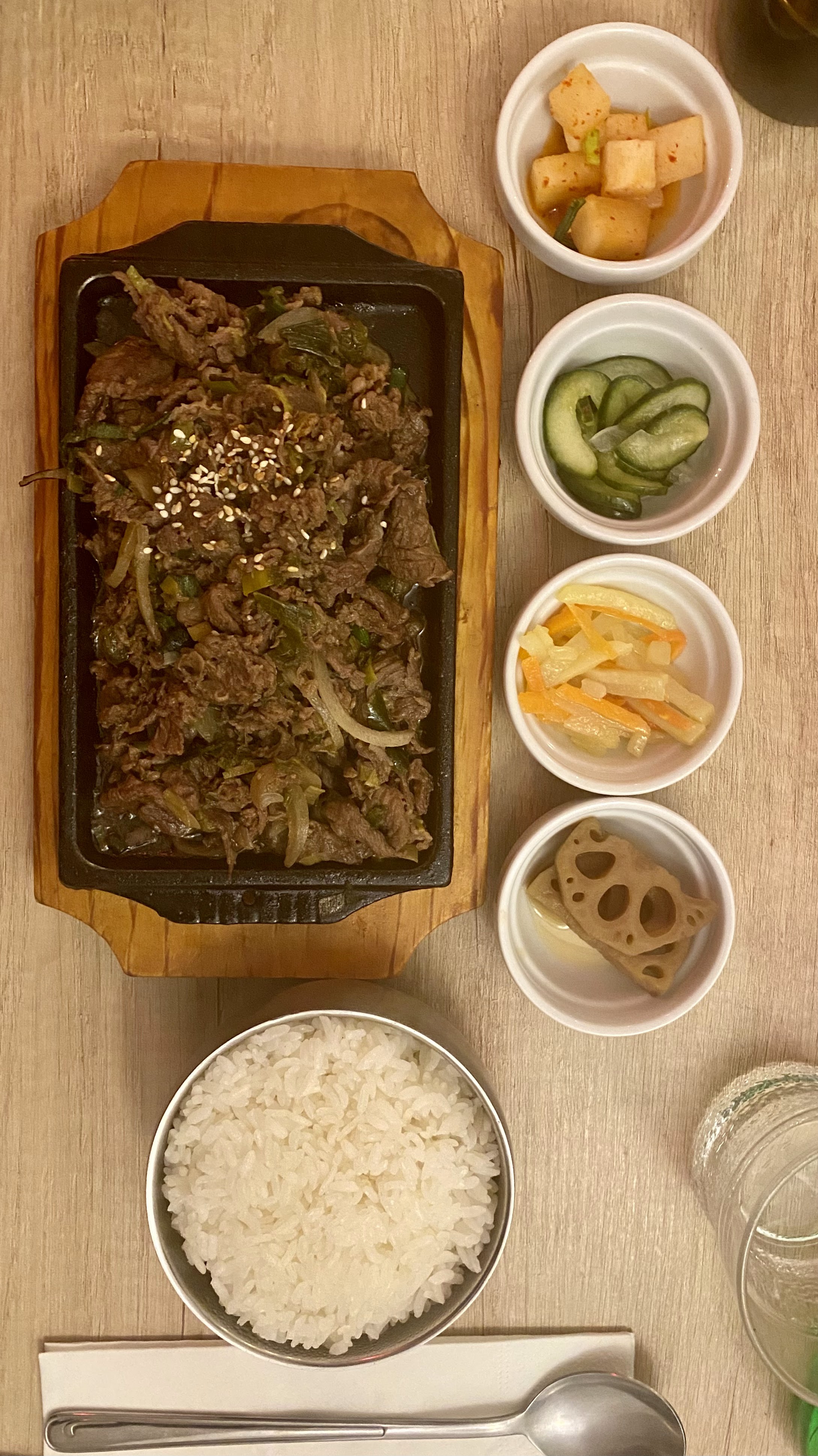 Bbq coréen très bien viande de bœuf Bulgogi très bon , le service est rapide et le personnel gentil , c’est devenu mon resto valeur sûr , pour finir des mochis glacé miam Je recommande ce resto 😊