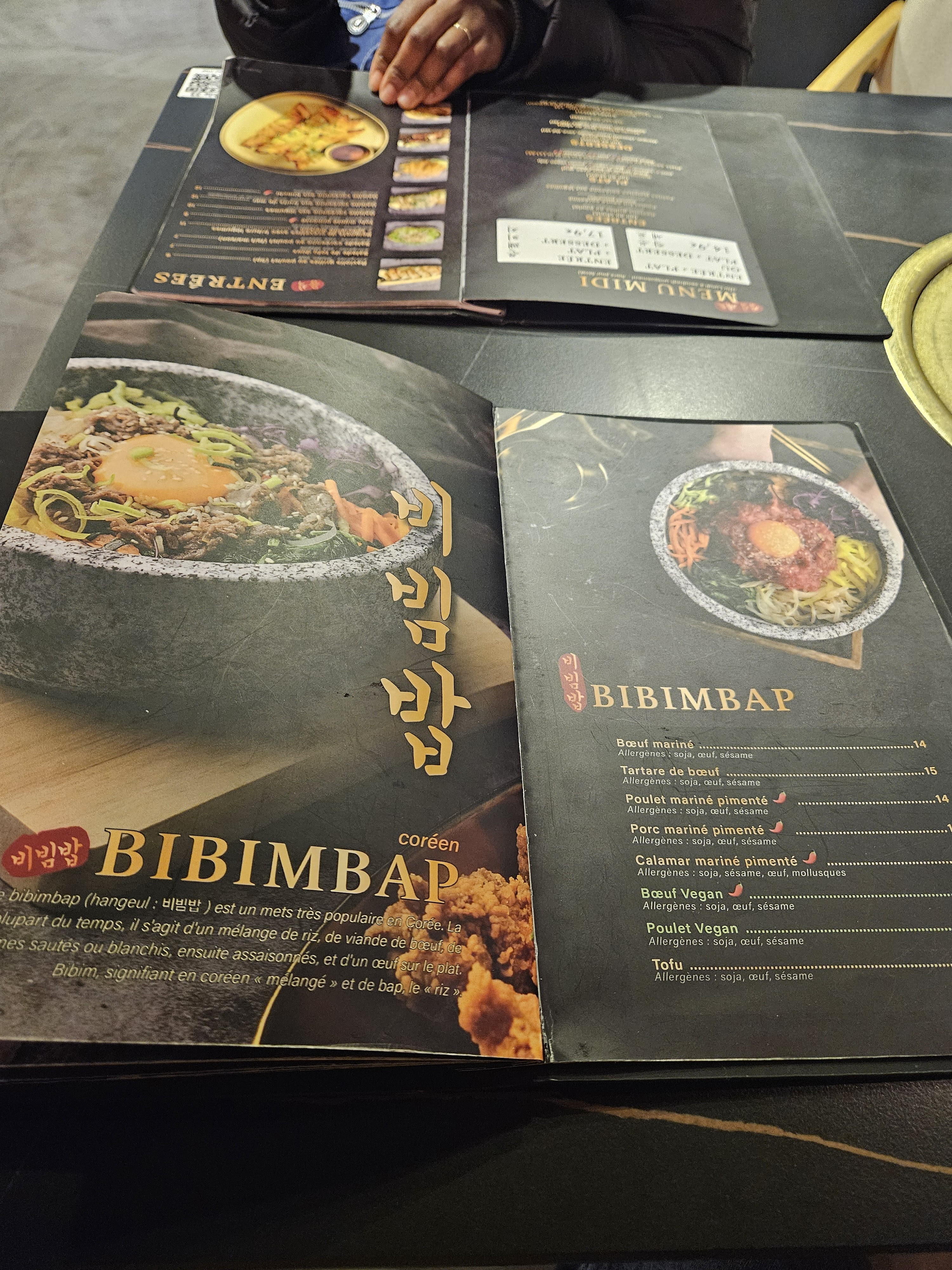 Nous y avons dîner ce soir, l'endroit est très agréable et chaleureux, les tables espacées (on n'est pas collés les uns au autres et c'est très agréable), le personnel aux petits soins et très sympa. Nous avons pris un bimbimbap et un barbecue et bien on a hâte de revenir pour goûter d'autres plats ! C'était top ! Bravo 😊
