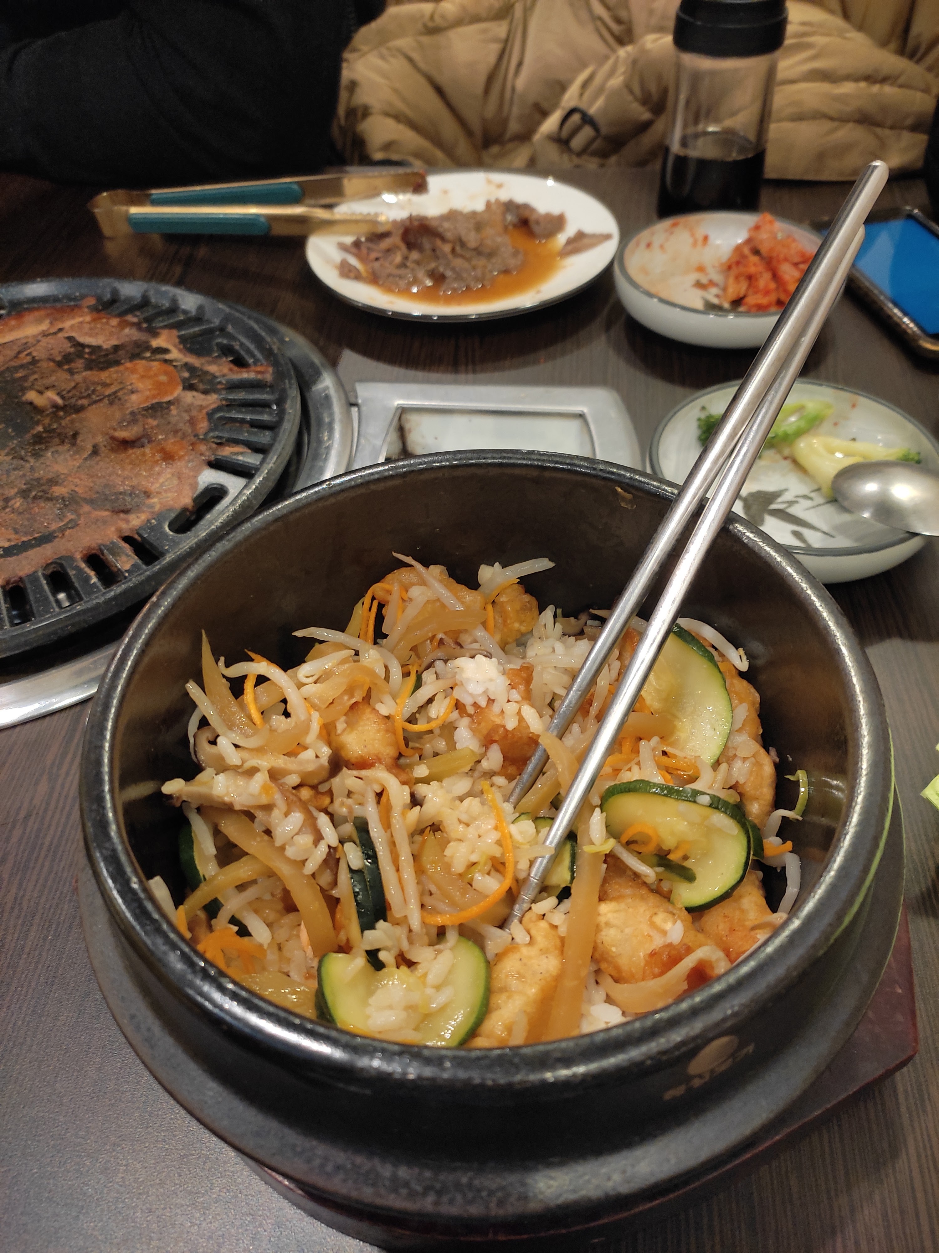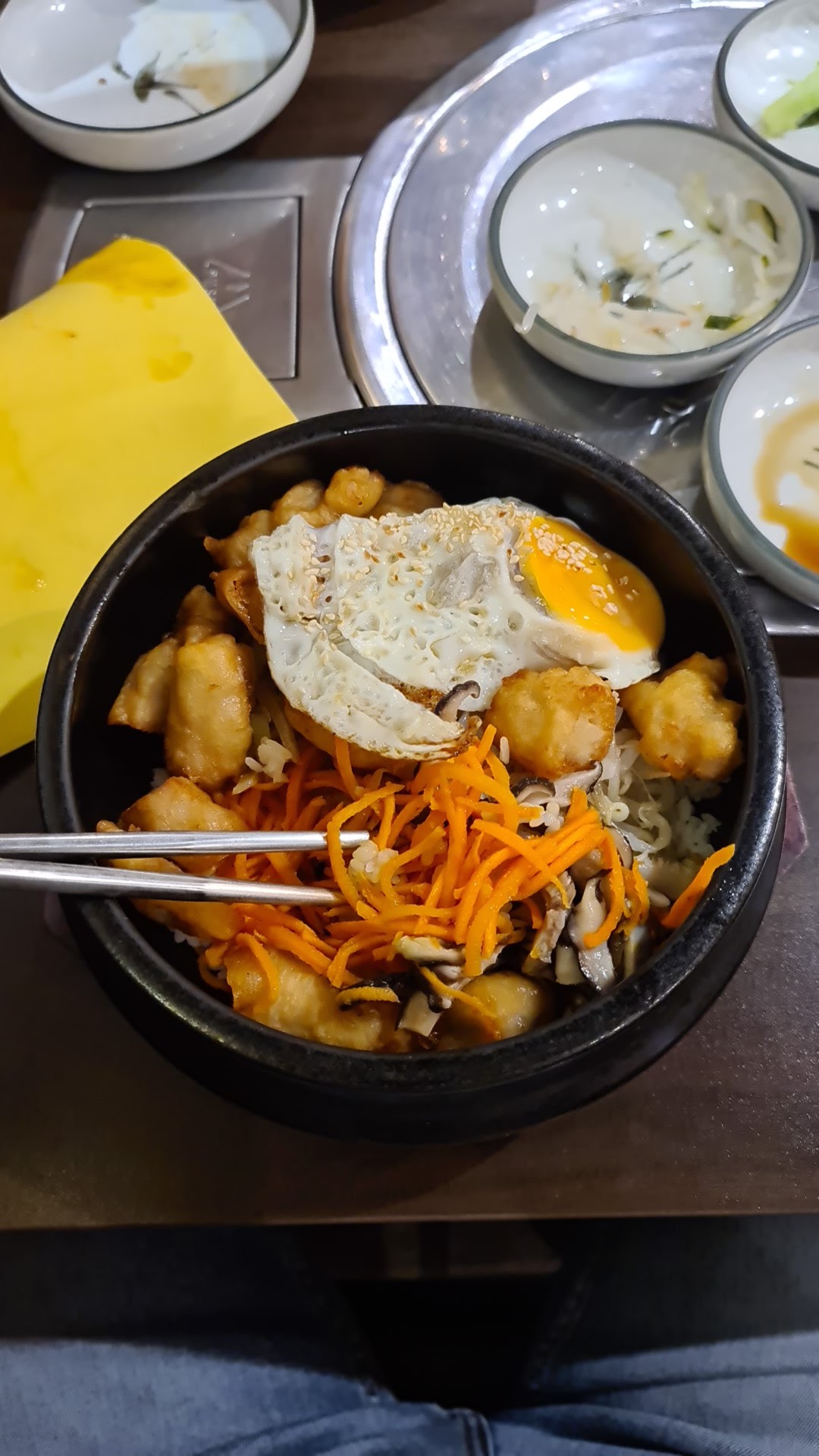 J'y ai prit un bibimbap, pas le meilleur que j'ai mangé mais sincèrement, il reste très bon. De mes autres expériences dans d'autres lieux, je suis cependant assez déçu pour le ratio prix/quantité qui est globalement élevé. Même si leur bibimbap reste bien garni et rassasie comme il se doit, il reste assez cher.