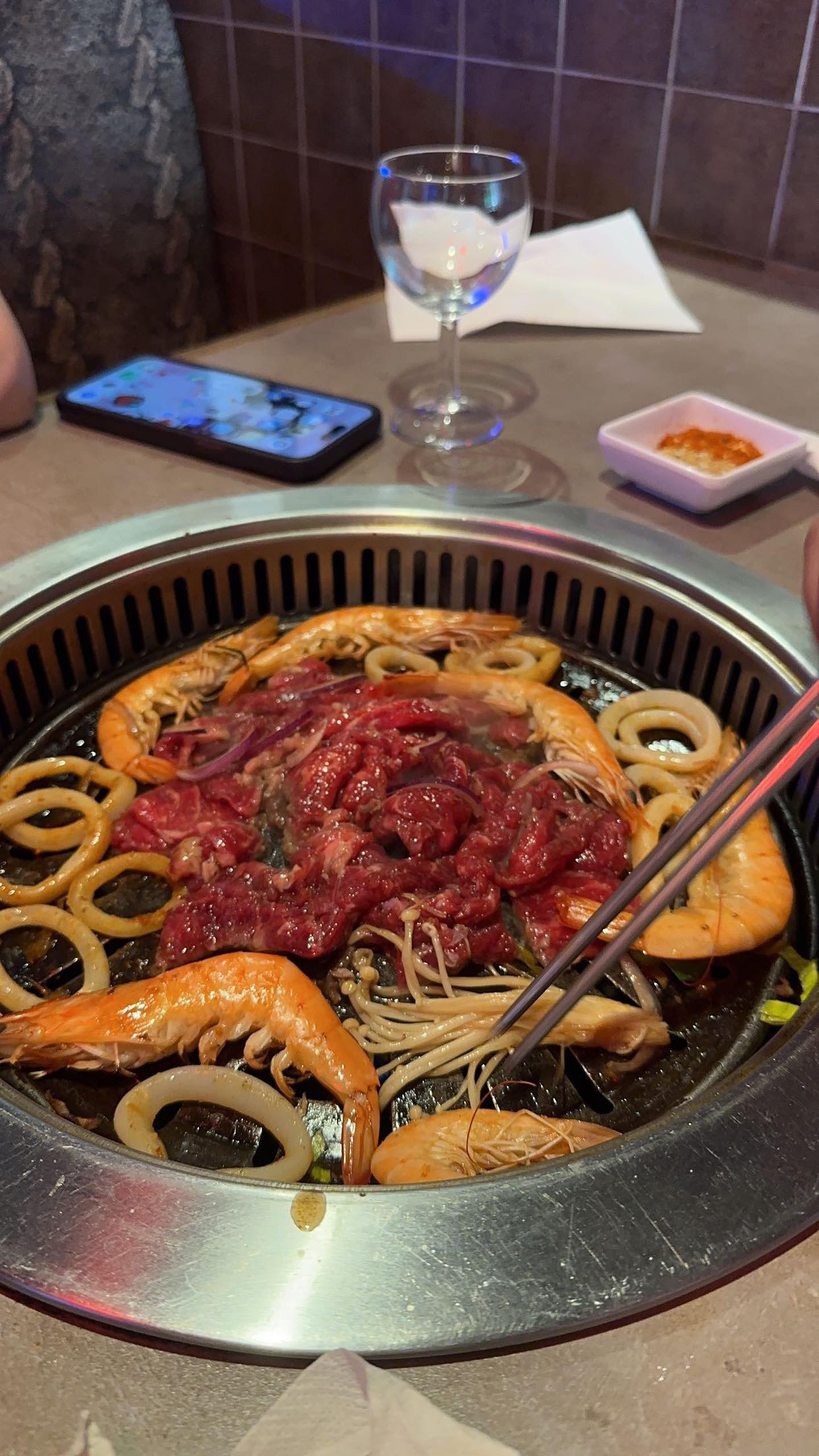 J’ai goûté avec ma famille pour la première fois à la gastronomie coréenne et je n’en suis pas déçue. Nous avons partagé la fameuse fondu bulgogi qui était délicieuse qu’on en redemande encore. Les enfants ont eu du poulet à faire cuire sur la plaque. Les condiments sont spéciaux mais appréciables. Le prix est raisonnable et l’accueil est de qualité c’est très appréciable