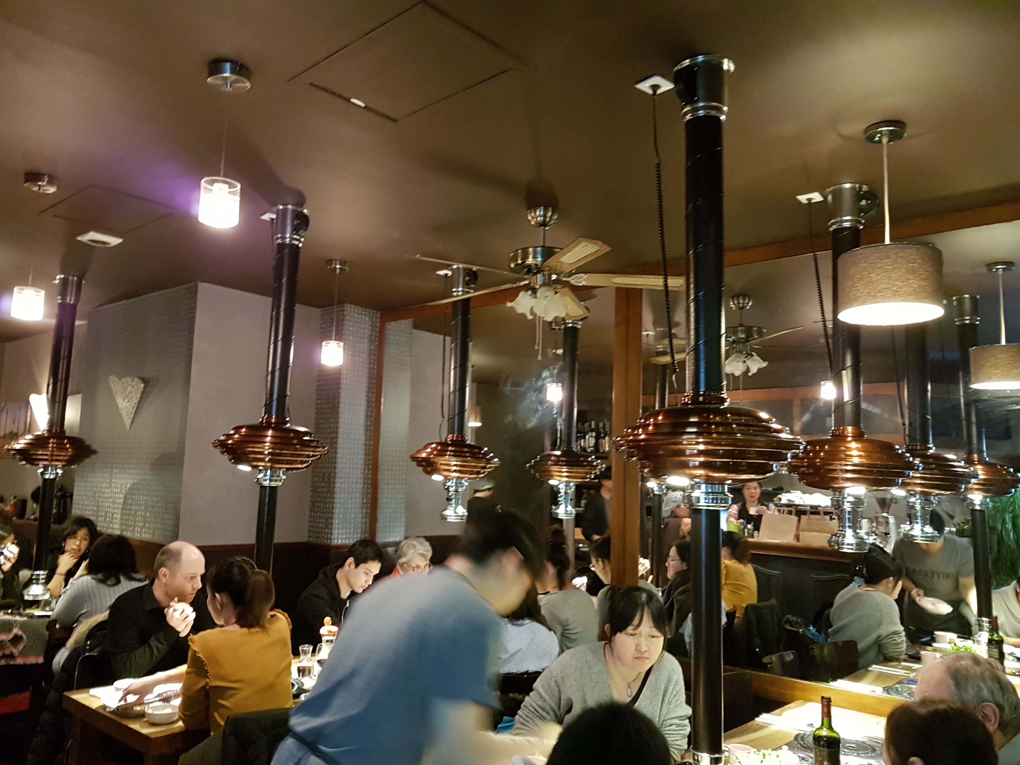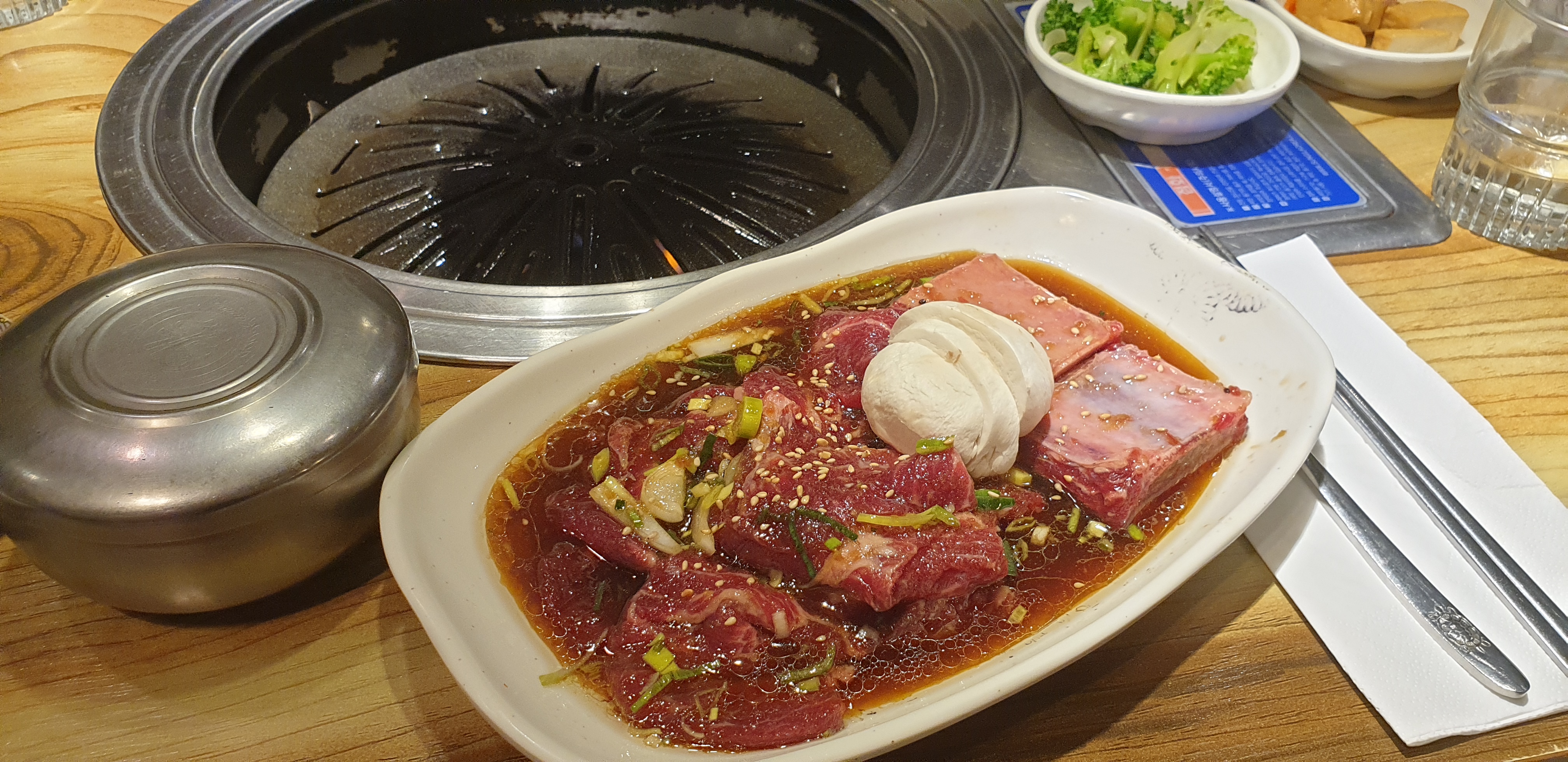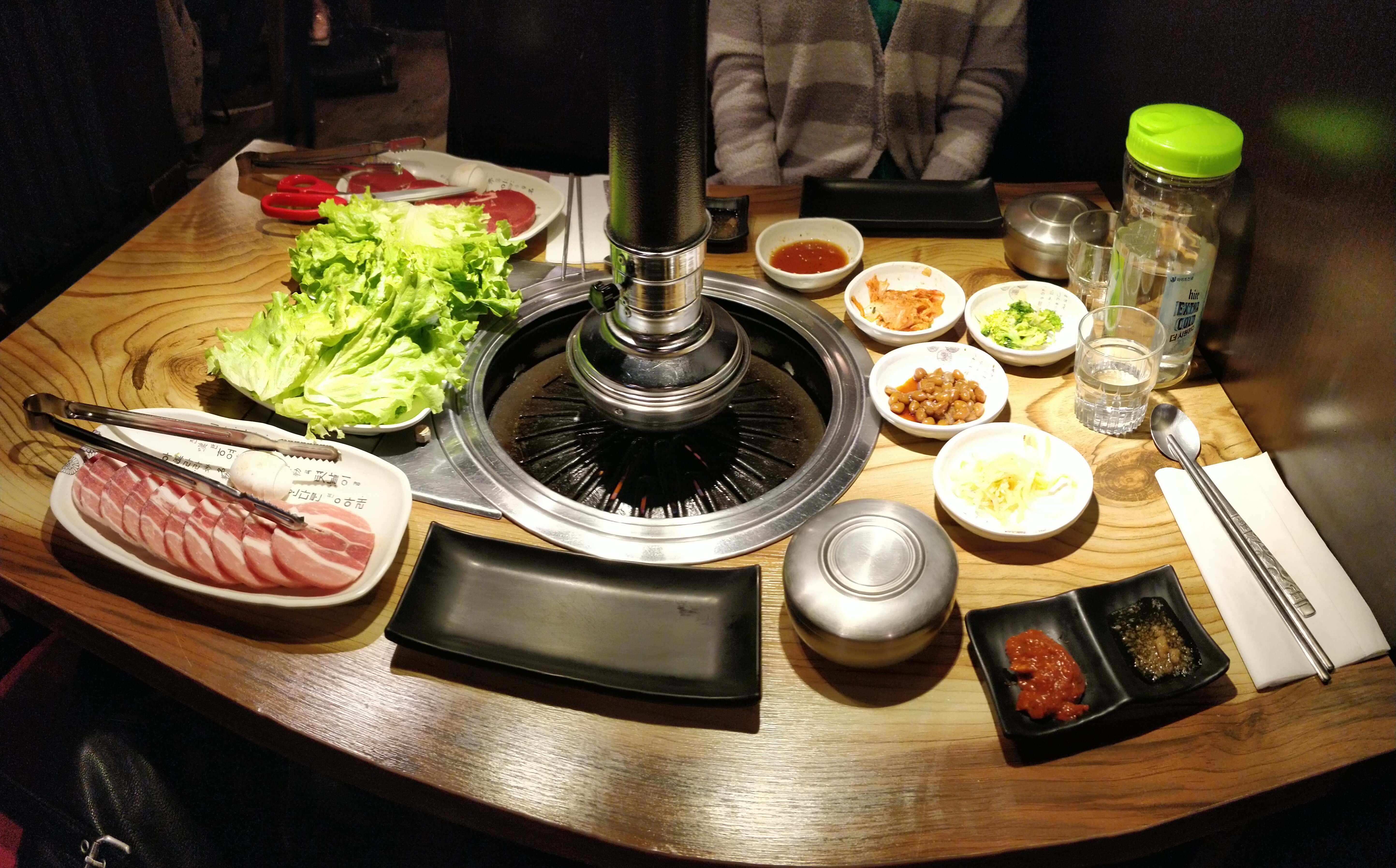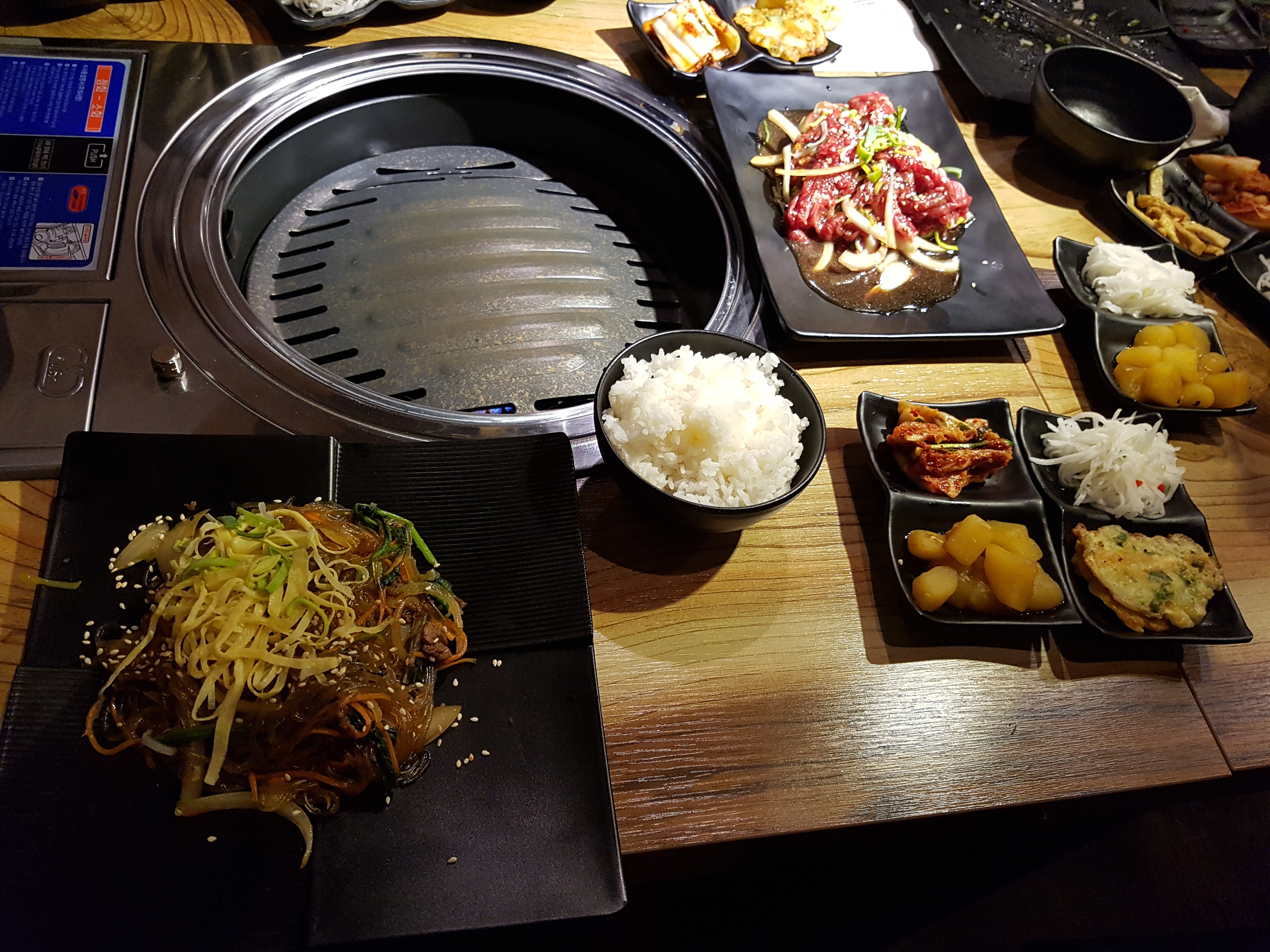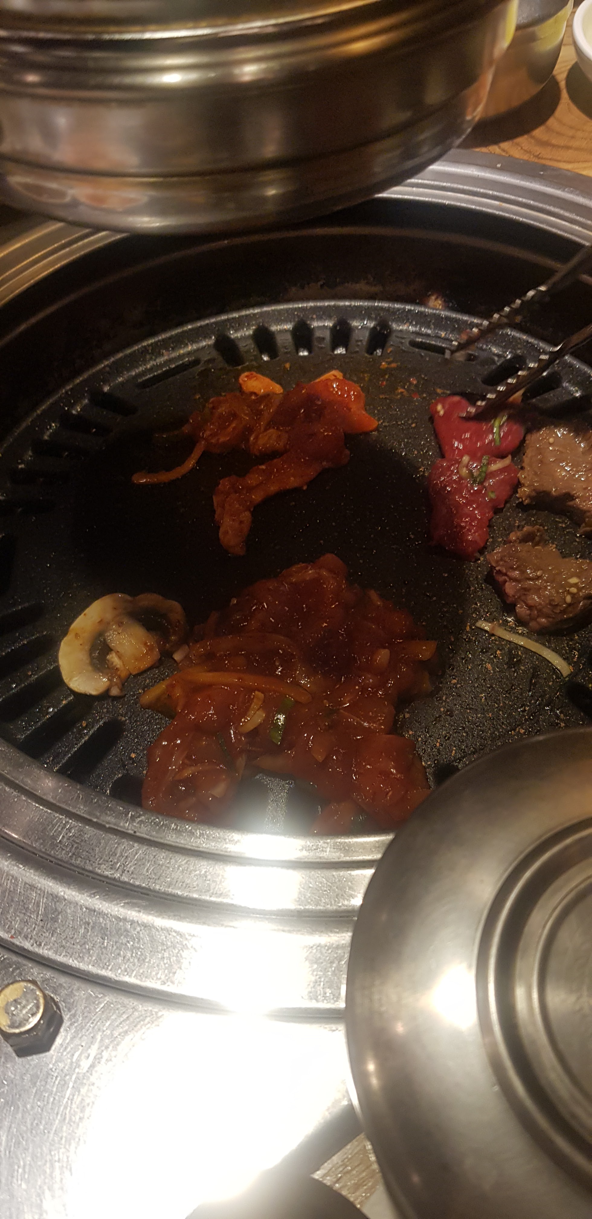 Ambiance sympa et un grill par table. Il y a une hotte, ce qui est super pour l'odeur. On n'a pas eu à attendre trop longtemps pour une table. On a pris barbecue avec ma soeur. J'ai pris porc et ma soeur boeuf. Les morceaux de porc qu'on m'a apporté était encore congelés, et étaient assez étrangement découpés. En grillant, la viande s'est séparée bizarrement et le porc n'avait pas beaucoup de goût. Le bœuf était congelé aussi et la qualité pas super. Heureusement il y avait des plats d'accompagnements assez bon, et du riz. Le prix du bbq était acceptable, environ 18euros. Mais pour la qualité de la viande, je trouvais ça cher.