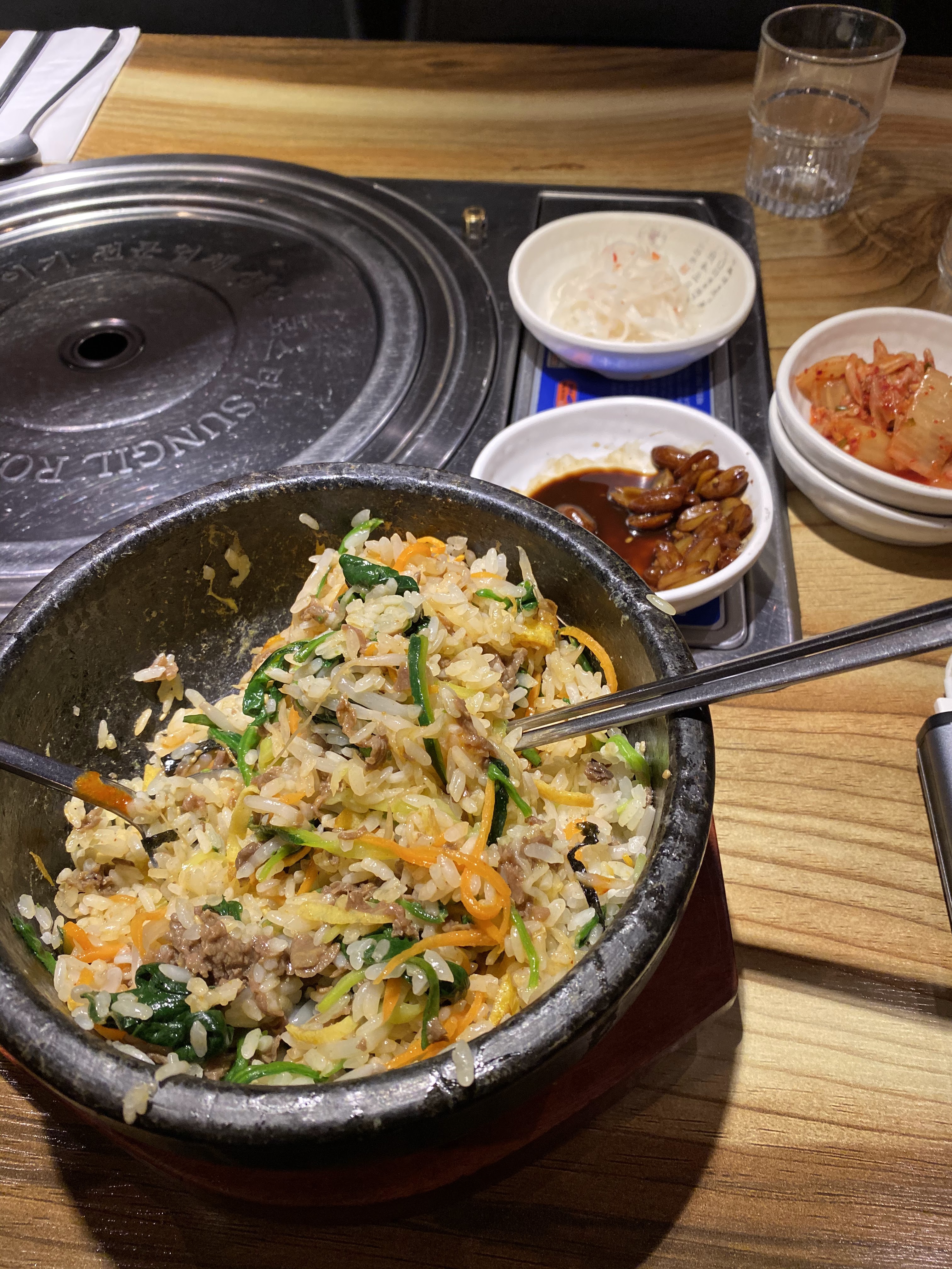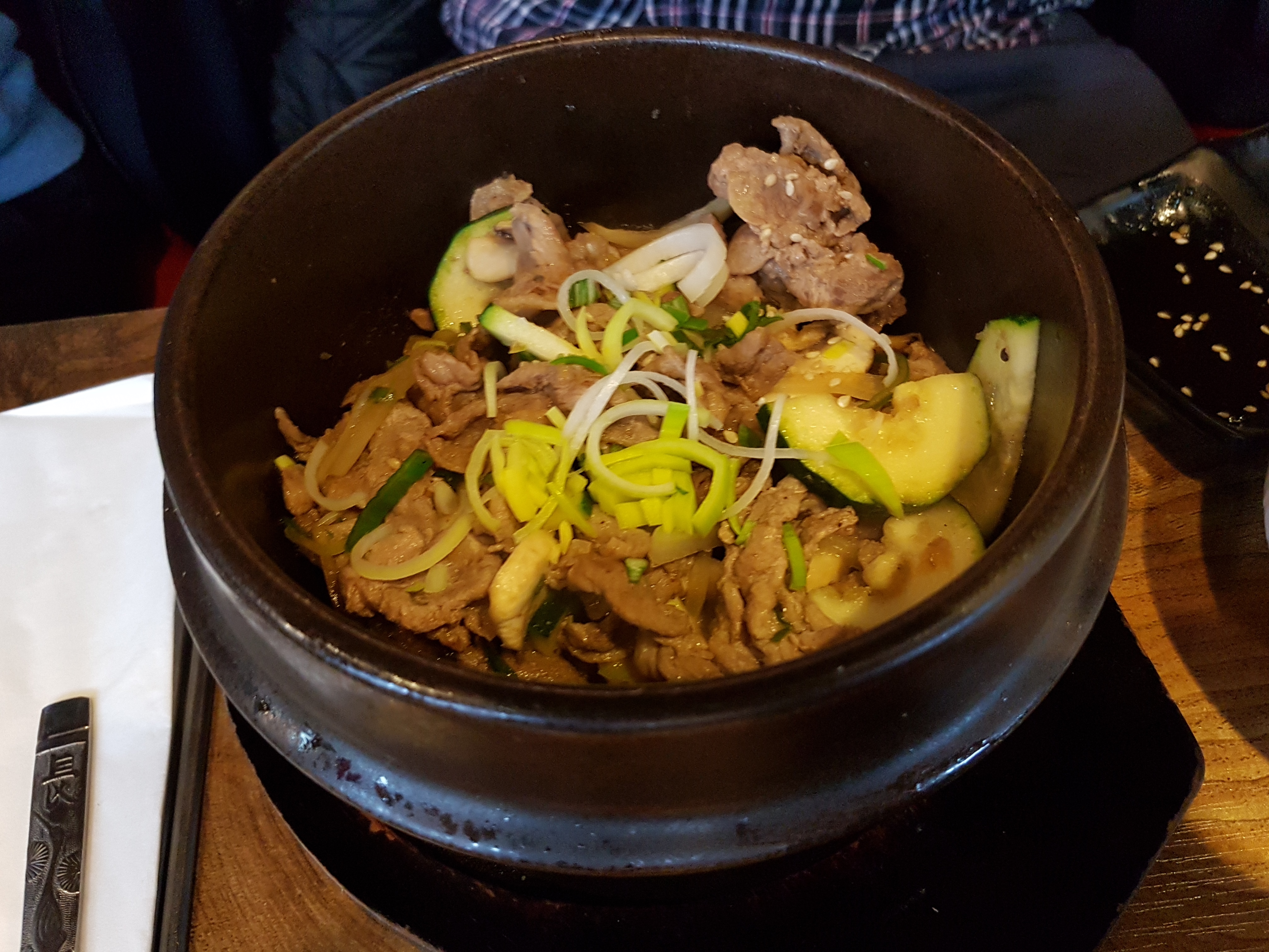 Nous avons passé un très bon moment dans ce restaurant Coréen. Le bibimpap (plat dans un bol en pierre) ainsi que le so galbi (bœuf mariné à la sauce soja au barbecue) étaient délicieux. Les kimchis et autres petits accompagnements étaient bien au rendez-vous. Le service au petits soins pour vous dans une ambiance chaleureuse.