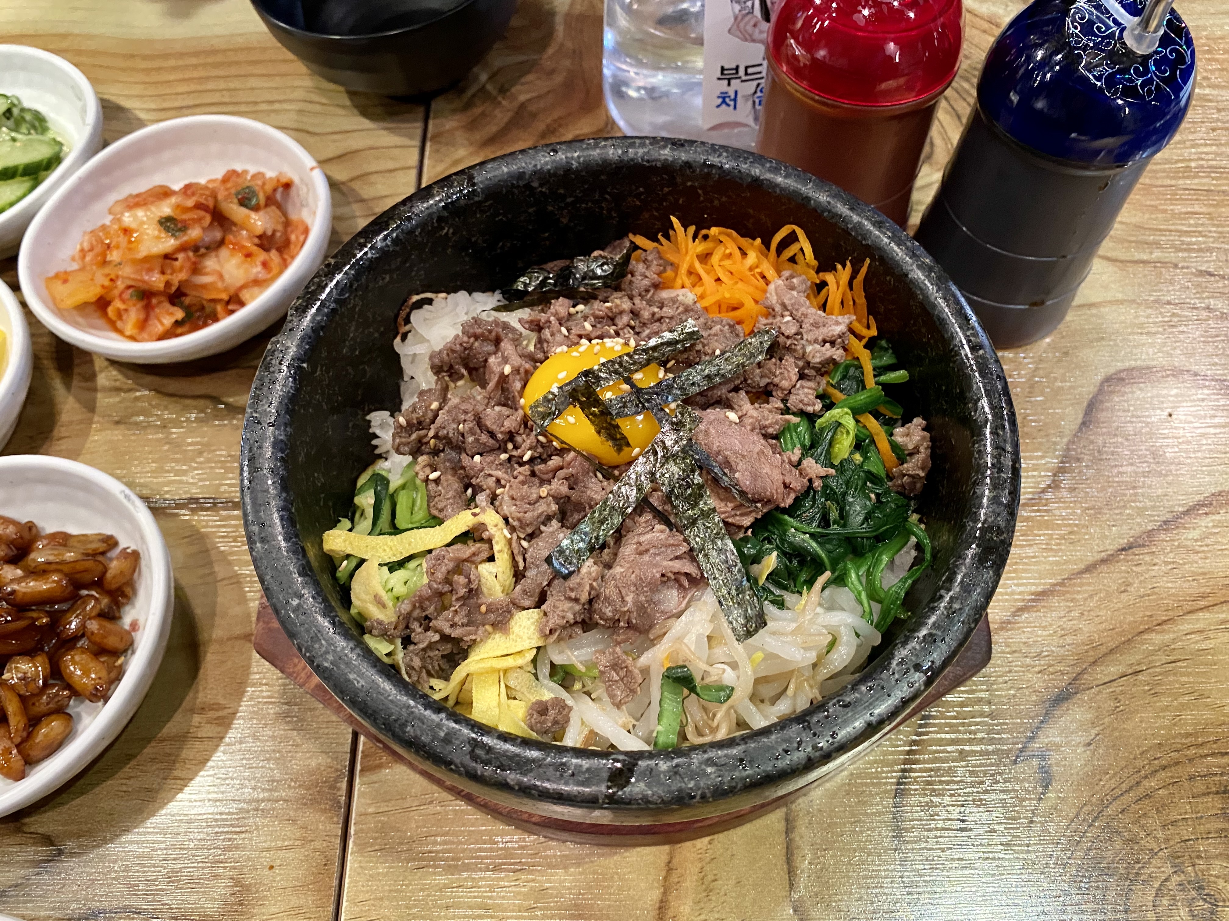 Nous sommes arrivés par hasard devant ce restaurant coréen. Agréablement surpris par les plats. Le bimbimbap bœuf était copieux et délicieux. Le japchae excellent. Le personnel était courtois et souriant. Nous avons bien mangé et nous reviendrons goûter le reste de la carte.
