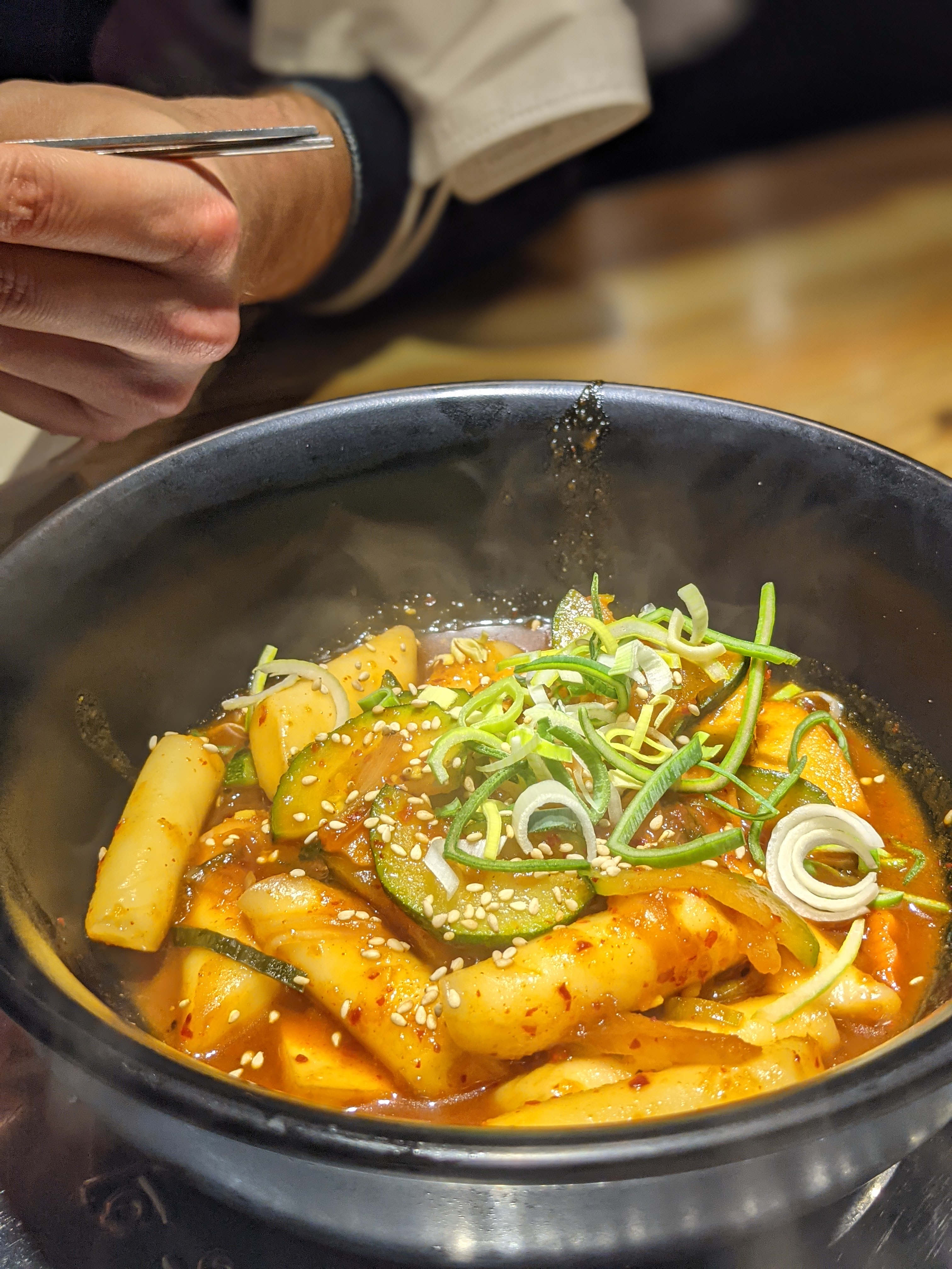 Petit restaurant coréen du quartier. Les plats sont authentiques, vous pouvez déguster des pancakes, Tteokbokki, barbecues, ragoûts... Pour une personne, comptez entre 25 et 30 euros. Les tteokbokk sont cuits dans une poudre de piment, dommage, c'est meilleure avec de la pâte de piment.