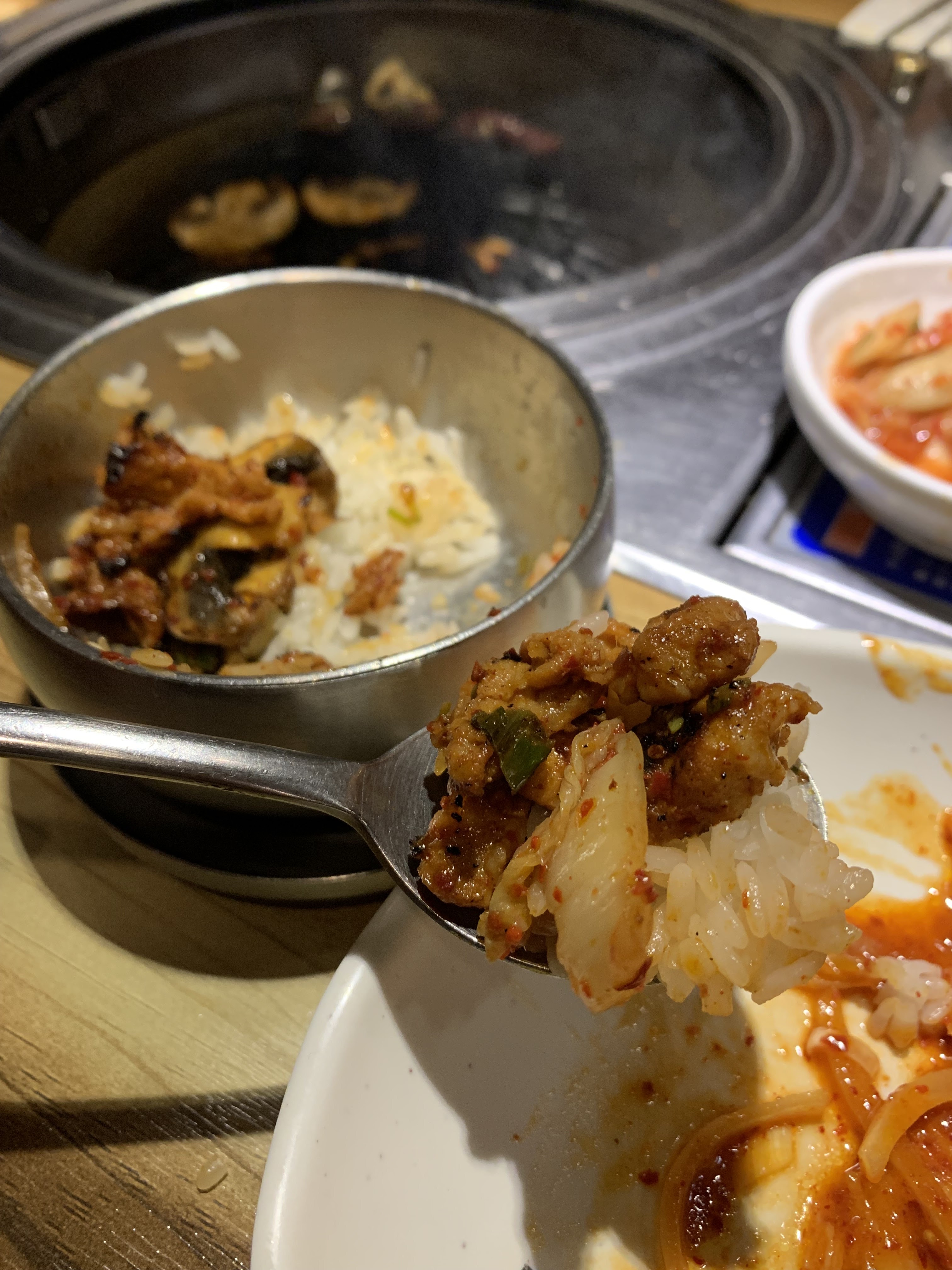 J'avais jamais fait de barbecue coréen, c'était cool ! Je recommande la viande de canard la meilleure de la carte (oui, on testé toutes les viandes BBQ de la carte)