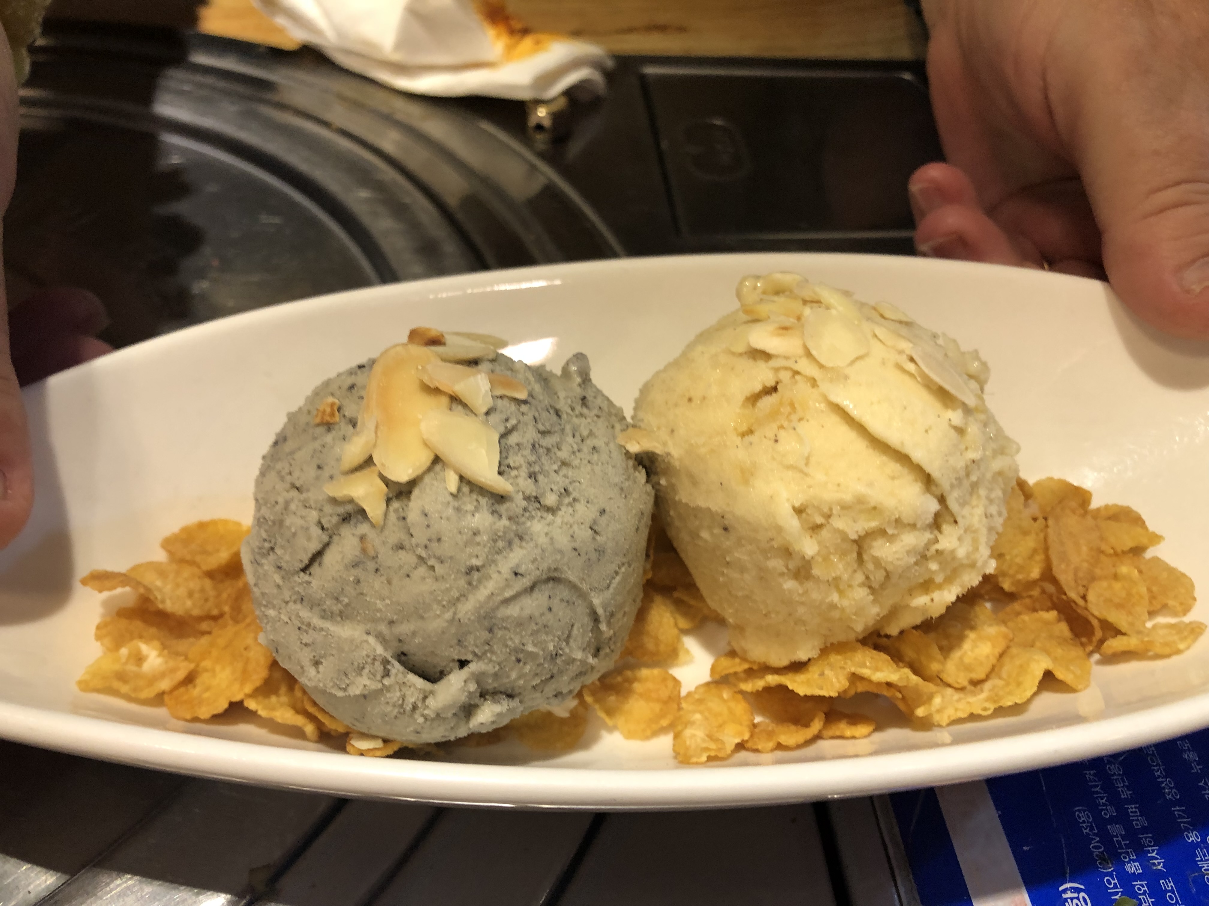 Une première pour nous le barbecue coréen. C’est délicieux, après la cuisson la viande est encore très tendre. Et les fruits de mer aussi. Seul bemol, il n’y a pas assez de riz. Moi qui est une grande mangeuse de riz