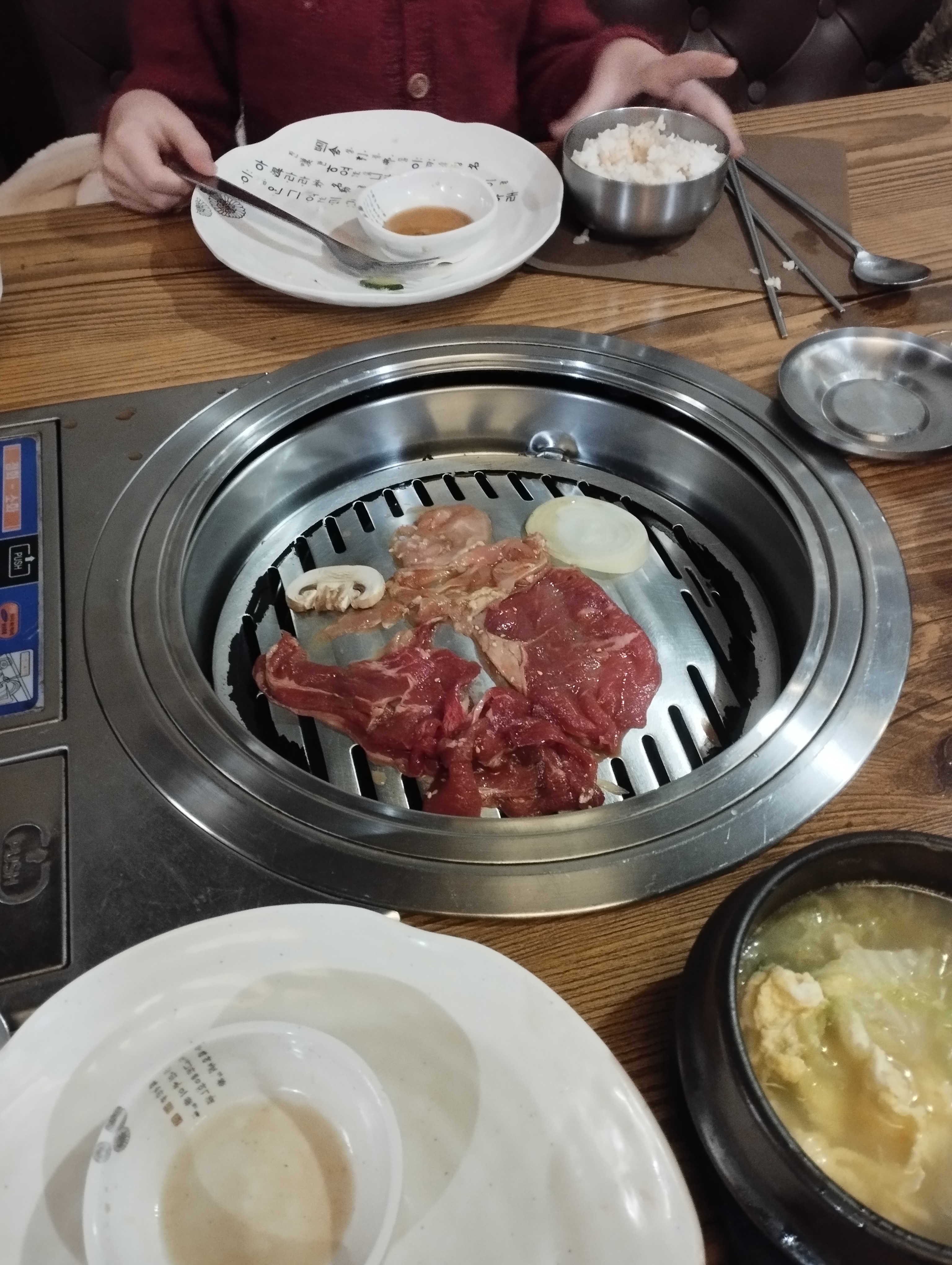 Découvert grâce à vos avis, un petit restaurant ou même si il reste juste une petite place ils pousseront tout le monde pour vous y mettre ! Barbecue au milieu (gaz) de la table ou vous faite griller vos viandes/ légumes marinés ou pas , Les plats sont simples mais bon, le personnel et très sympathique et accueillant Nous avons réservé pour 6 personnes 30mn avant pas de problème nous nous sommes serrés sur deux petites table mais la soirée fut fort mémorable !! Nous reviendrons avec très grand plaisir !