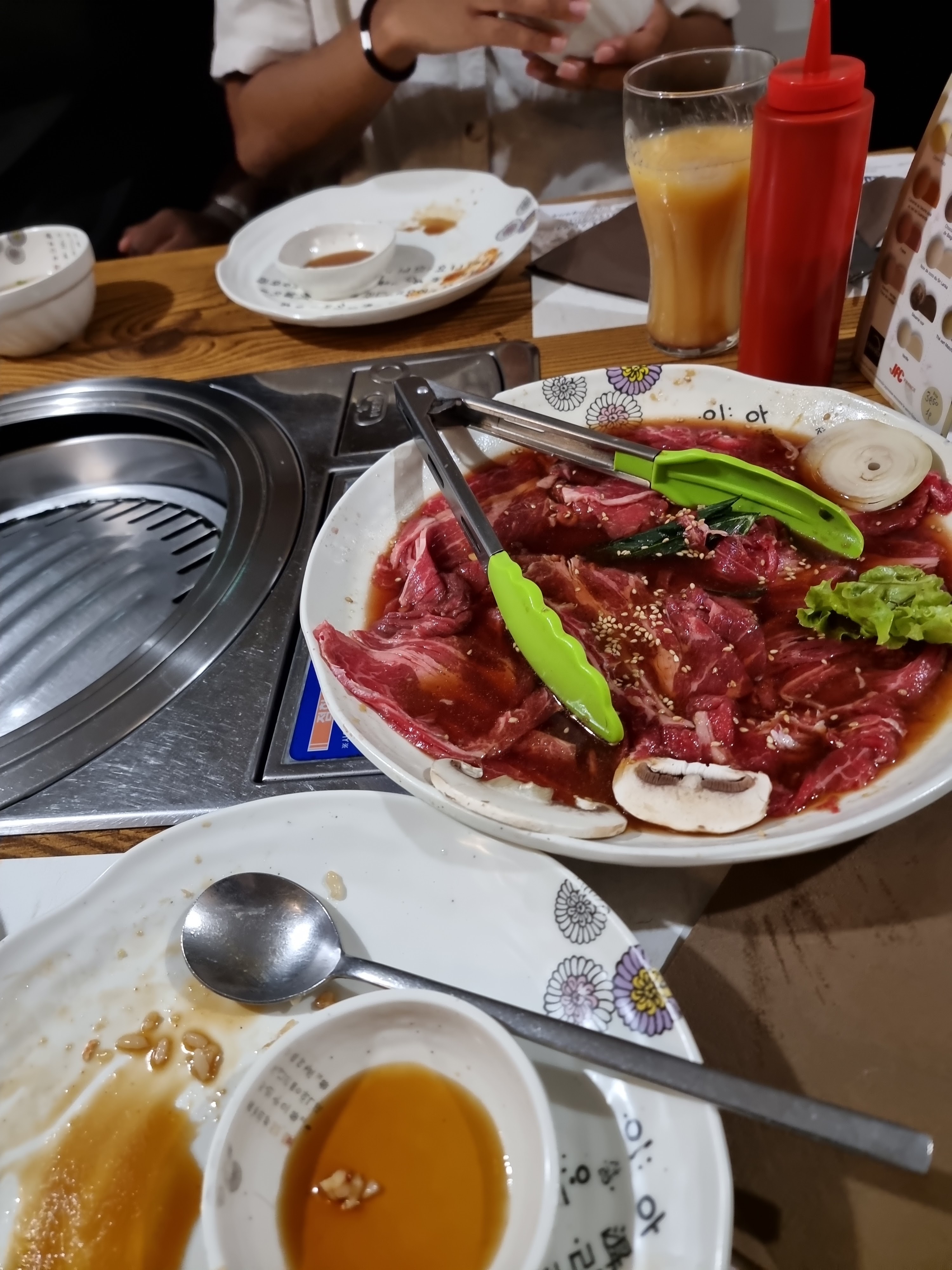 Déçu… Nous avons été placé en bas à l’écart et à côté des toilettes avec une odeur très nauséabonde. Le service n’était pas fameux tout comme l’accueil mais le pire reste le personnel qui m’a informé sur mes dernières tranches de viande de bien bien cuire la viande car sinon j’allais tombé malade… cela indique donc la qualité de la viande ! J’ai en effet été malade… D’autant plus que le personnel me prenait ma viande sans me demander et la faisait cuire eux même alors que je suis censé être celui qui s’en occupe…tout cela pour la somme de 23€50…déplorable…