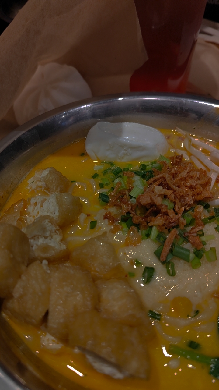 J'avais plus d'attente concernant ce restaurant, un peu déçue. Les toilettes sont hs en travaux, il faut carrément demander au resto d'à côté pour pouvoir y aller. Le bubble tea a un goût particulier, j'ai eu du mal à le terminer.Mise à part cela , j'ai apprécié les nouilles mais ce qui aurait été encore mieux c'est d'avoir des nouilles dans un bol en céramique pas dans un bol en carton. Je valide la playlist kpop ☑️ et la déco de l'étage du dessus est pas mal.