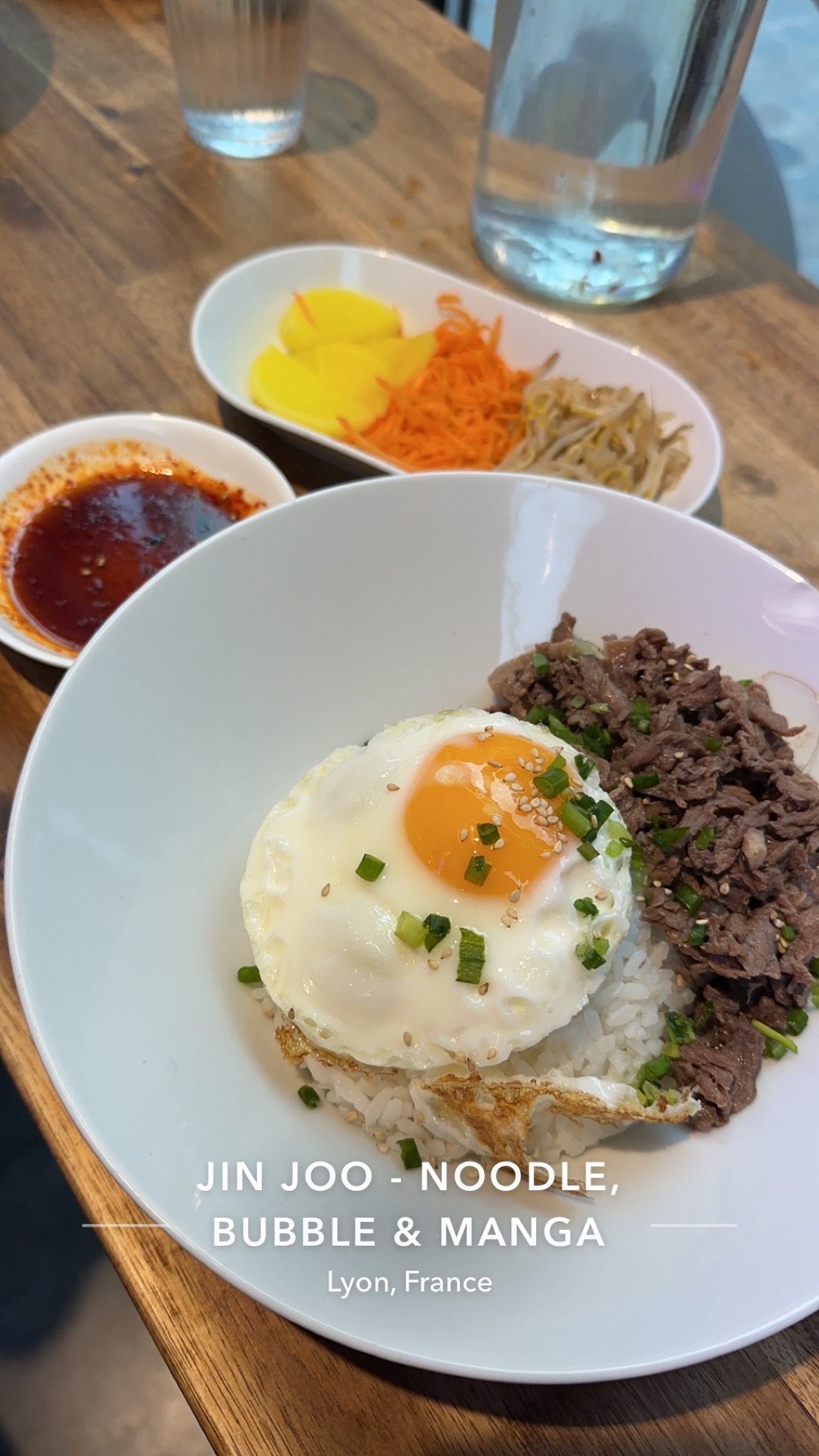 Une belle découverte de la cuisine coréenne. Le lieu est vraiment canon. Concernant le service, c’était rapide. Les 2 seuls points négatifs : - le fait de nous presser à commander alors qu’il restait 1h30 avant la fermeture et qu’il n’y avait pas de monde - l’indisponibilité de plusieurs desserts En parlant de l’ambiance, on valide complètement tout autant que la playlist musicale. Nous reviendrons, c’est certain ! Instagram : @yummy.lyon