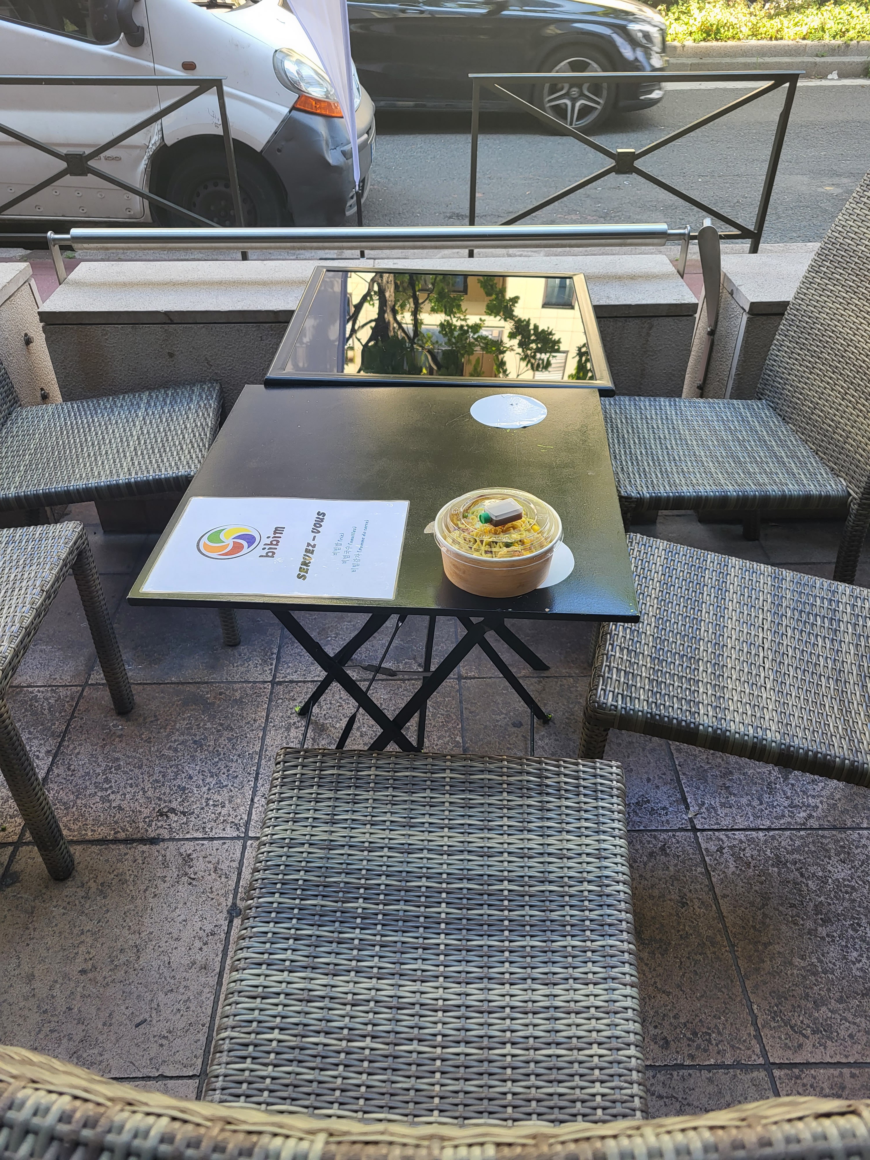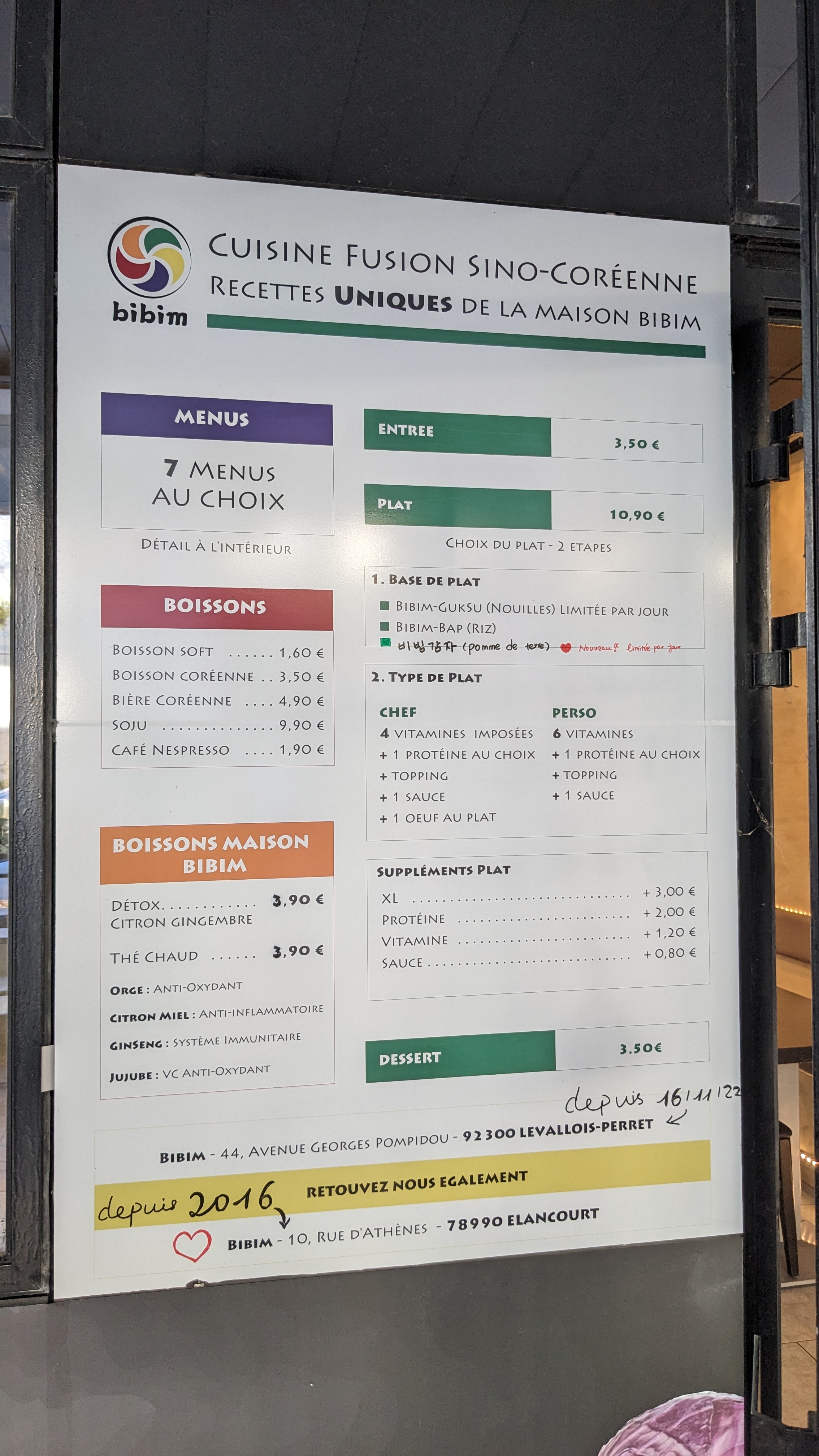 Avis 1 : C'est vraiment super bon. La vendeuse est vraiment très gentille et elle a toujours le sourire. Possibilité d'avoir une carte de fidélité. Et pour les petites têtes qui aiment perdre leurs cartes de fidélité, elle peut vous les garder pour vos prochaines visites. Avis 2 : Je n'aime pas le curry. Mais aujourd'hui, j'ai testé les crevettes au curry. C'était vraiment super bon. Toujours un plaisir de venir manger chez Bibim et ses produits frais. J'ai testé le thé froid Jujube. C'est léger et avec des bienfaits de la médecine asiatique. Je recommande également.