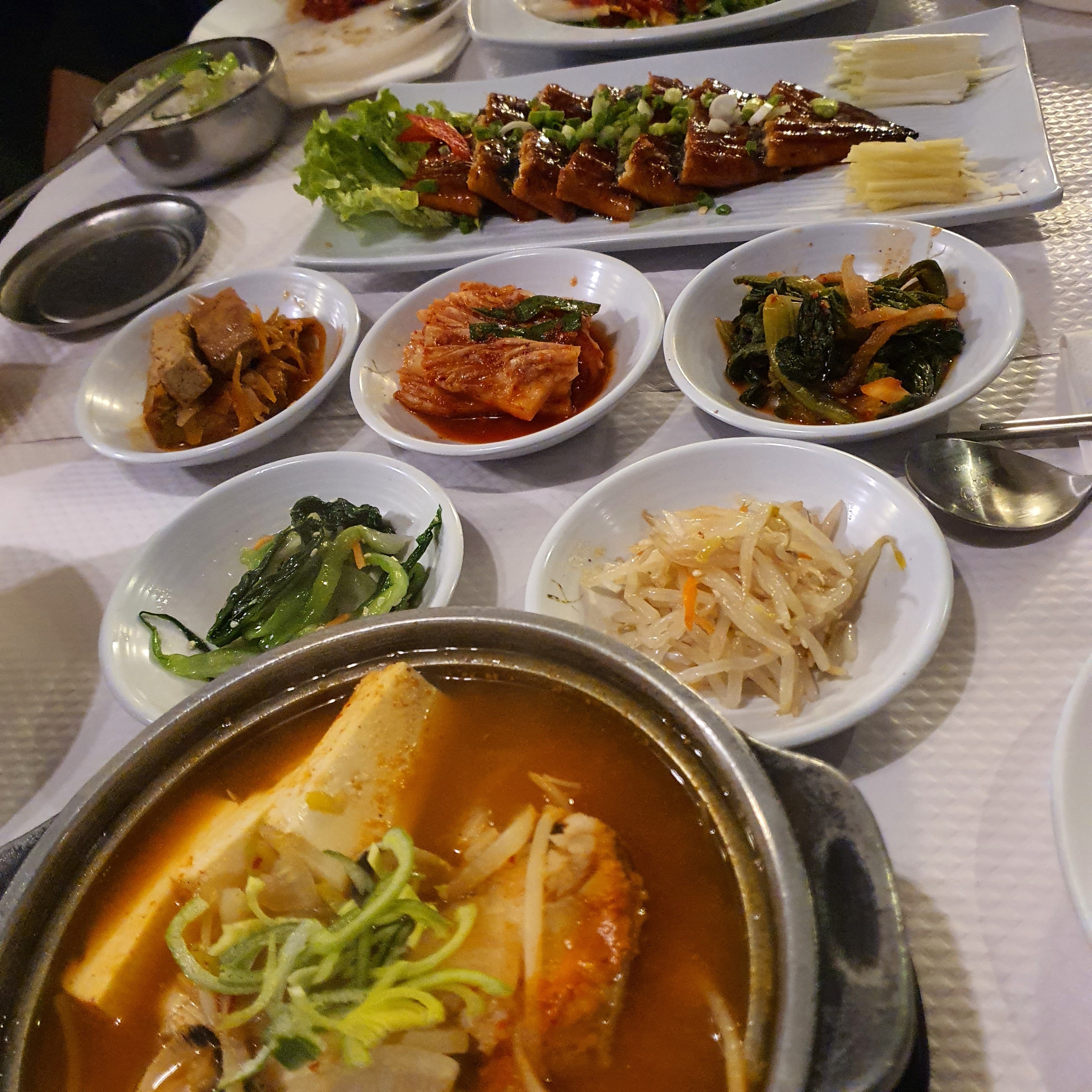 Nous avons très bien mangé. Le patron nous a expliqué chaque plat en détail pour nous initierà la cuisine coréenne.