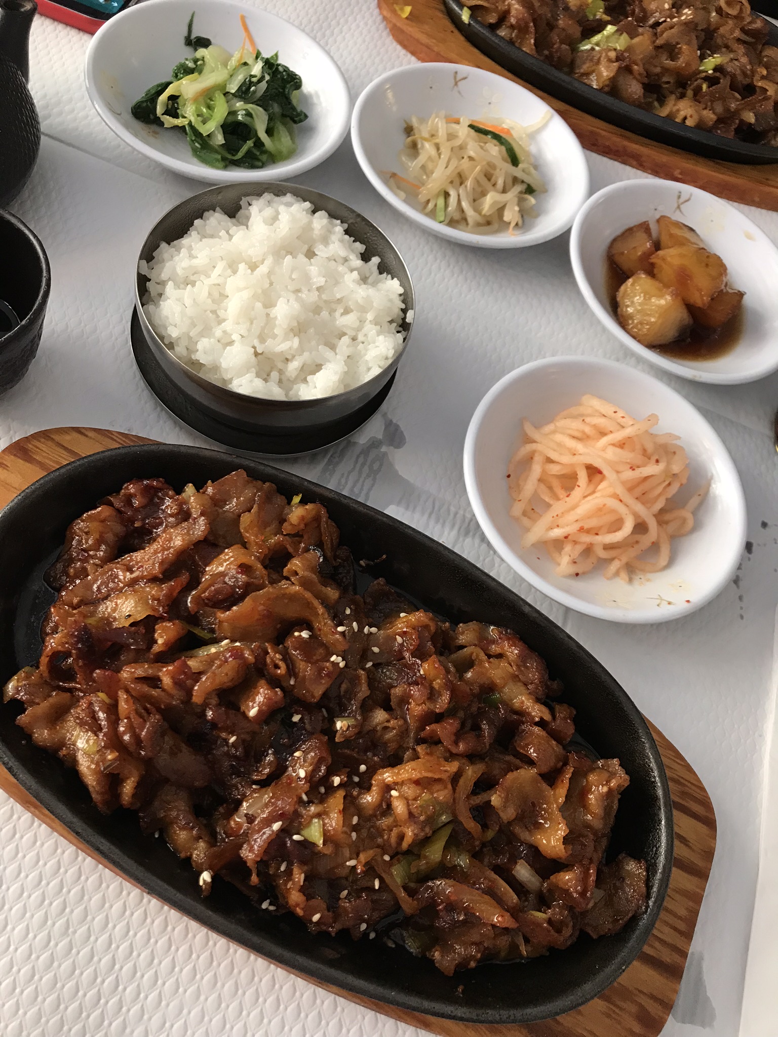 Les entrées sont très bonnes, mais j'ai vu mieux concernant les barbecues surtout vue le prix assez élevé. Le barbecue de poulet et petit, il arrive sur une petite plaque chauffante et est un peu trop salé. Le bulgogi est vite sec en barbecue est vite sec lorsque la cuisson est rapide. Le