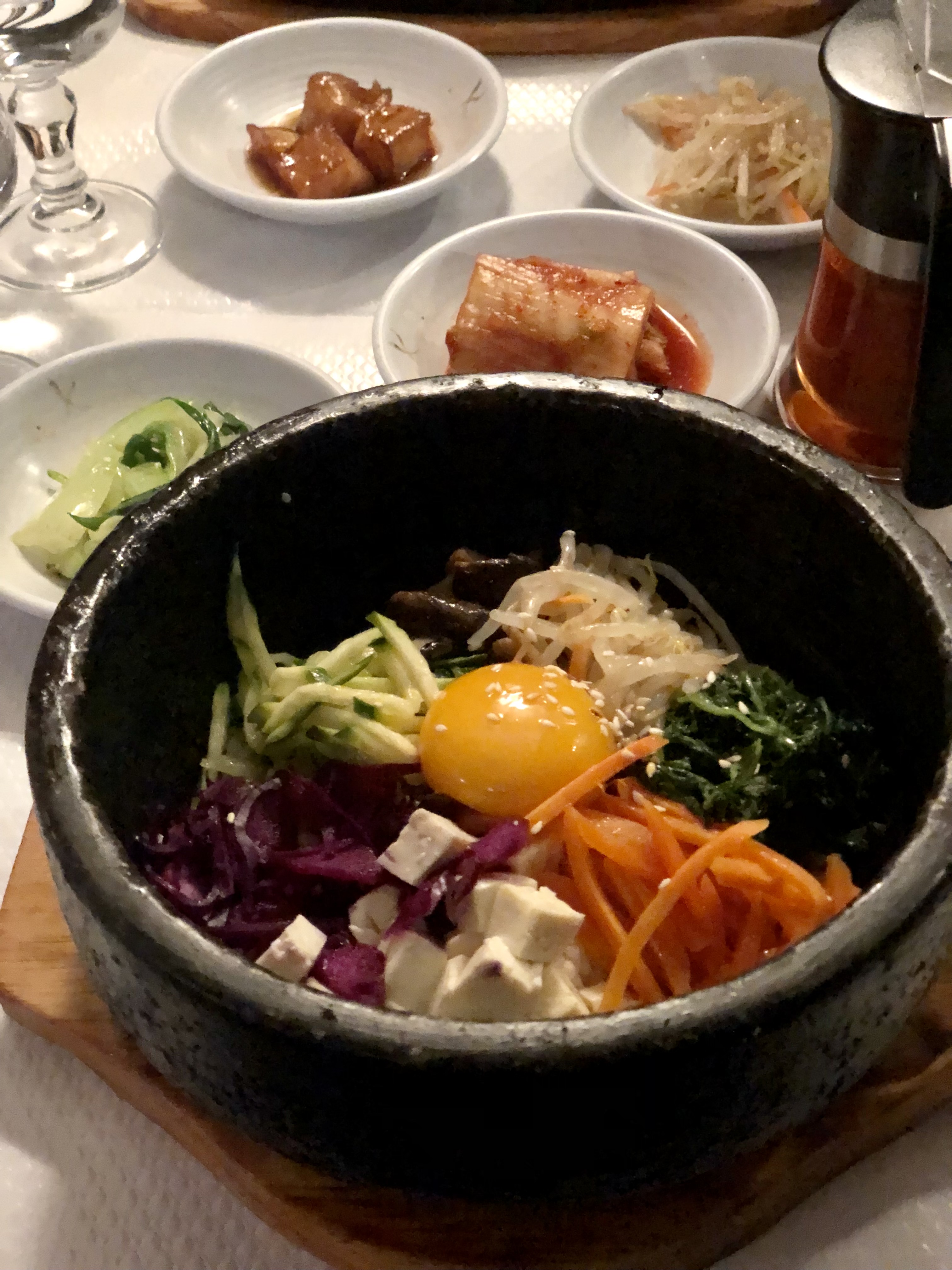 Accueil chalereux Plat: bibimbap délicieux avec la sauce faite maison Dessert: glace thé vert et sésame noir fait maison, est un delice!!! Les accompagnements sont très bon Le restaurant Coréen incontournable, le meilleur de Paris Hâte d'y retourner !!!