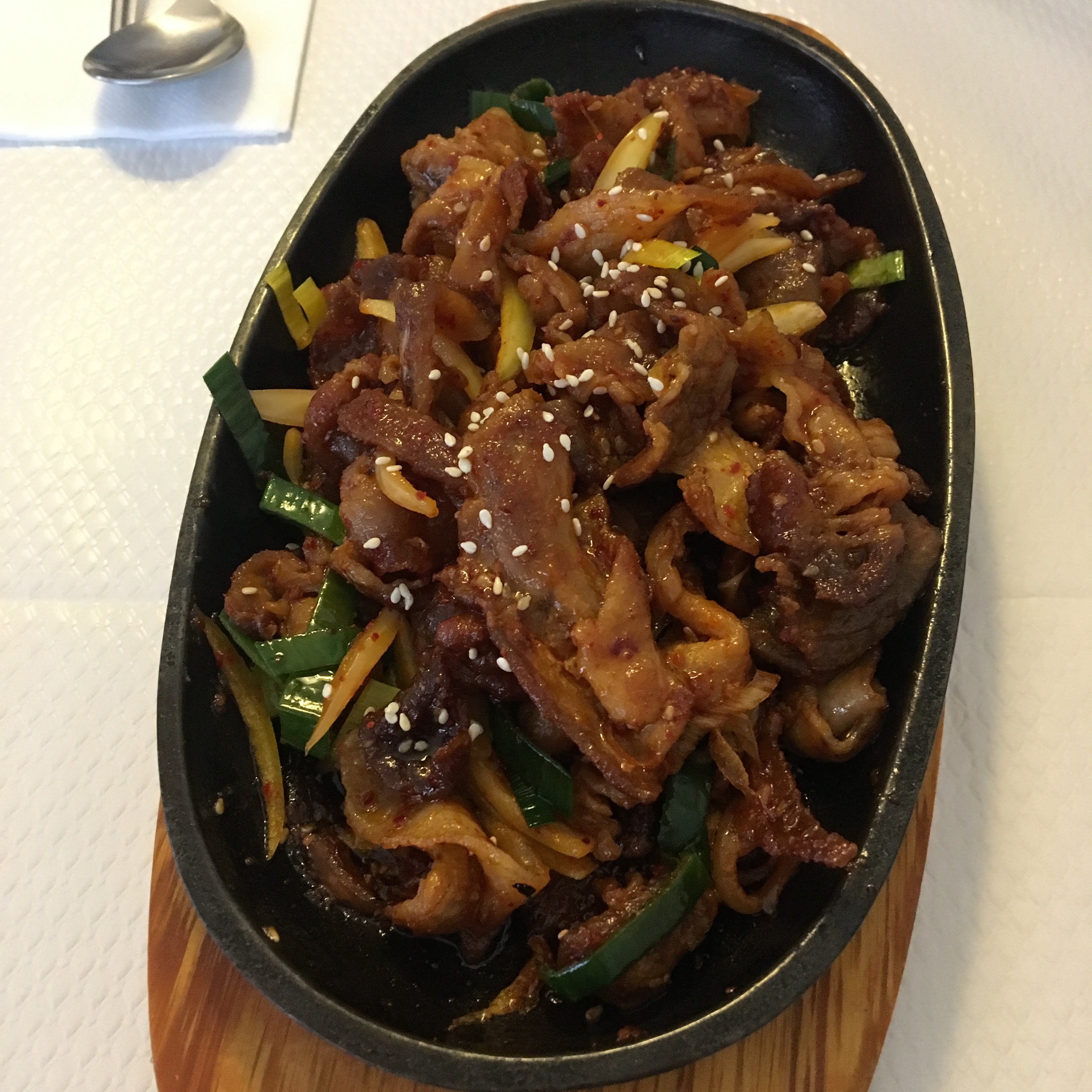J'y suis allée hier soir, et je m'attendais à quelque chose de vraiment bien, vus tous les commentaires positifs. Et j'ai été très déçue. Service lent, déjà et pas vraiment sympa. Ensuite, je n'ai pas trouvé que c'était servi copieusement, loin de là. J'ai pris des raviolis de boeuf et un barbecue de boeuf à griller. Les raviolis étaient pas mal mais ne justifiaient pas leurs 10 euros. Et le boeuf, vraiment bof. Aucun goût, et pas à griller, mais plutôt à bouillir, puisqu'on nous l'a apporté sur un plat baigné de sauce posé sur une plaque gaz. Les accompagnements étaient sans intérêt. Donc pareil, 18 euros pour ça, je trouve que c'est un peu cher ! Mes amis ont pris un dessert, le gâteau coréen avec une boule de glace.. .sans s'apercevoir que la boule de glace était en option facturée 2 euros !!! Donc non, pour moi ce n'est pas un restaurant que je referais. Trop cher pour ce que c'est.