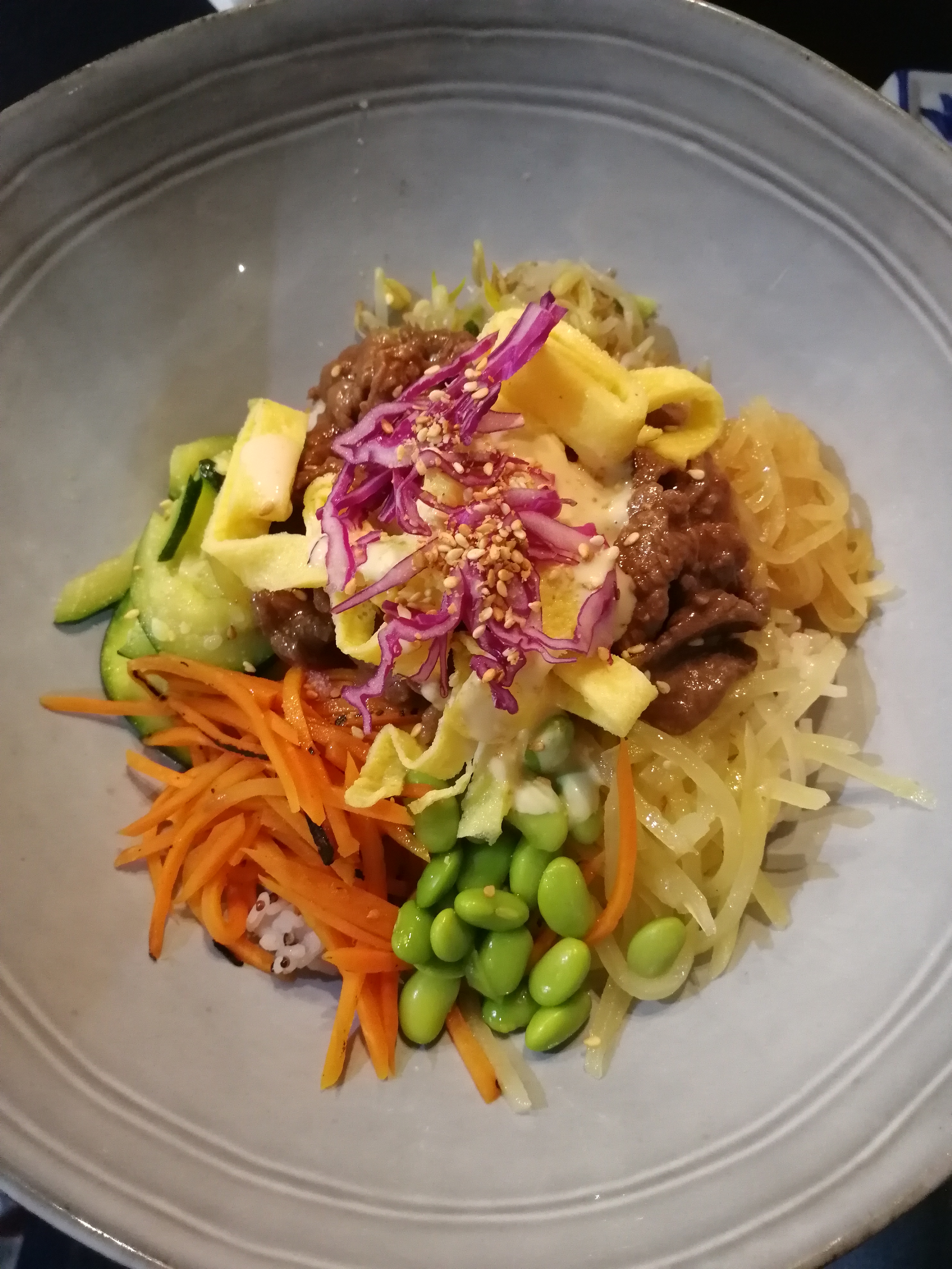 Une belle découverte, cette pépite de restaurant coréen. Ça faisait bien trop longtemps que je n'avais mangé de kimchi, j'ai pu y remédier et me suis régalé. Les nouilles de patates douces sont un vrai régal aussi avec leur accompagnement de petit légumes et de poulet. Vraiment, j'y retourne dès que l'occasion se présente !