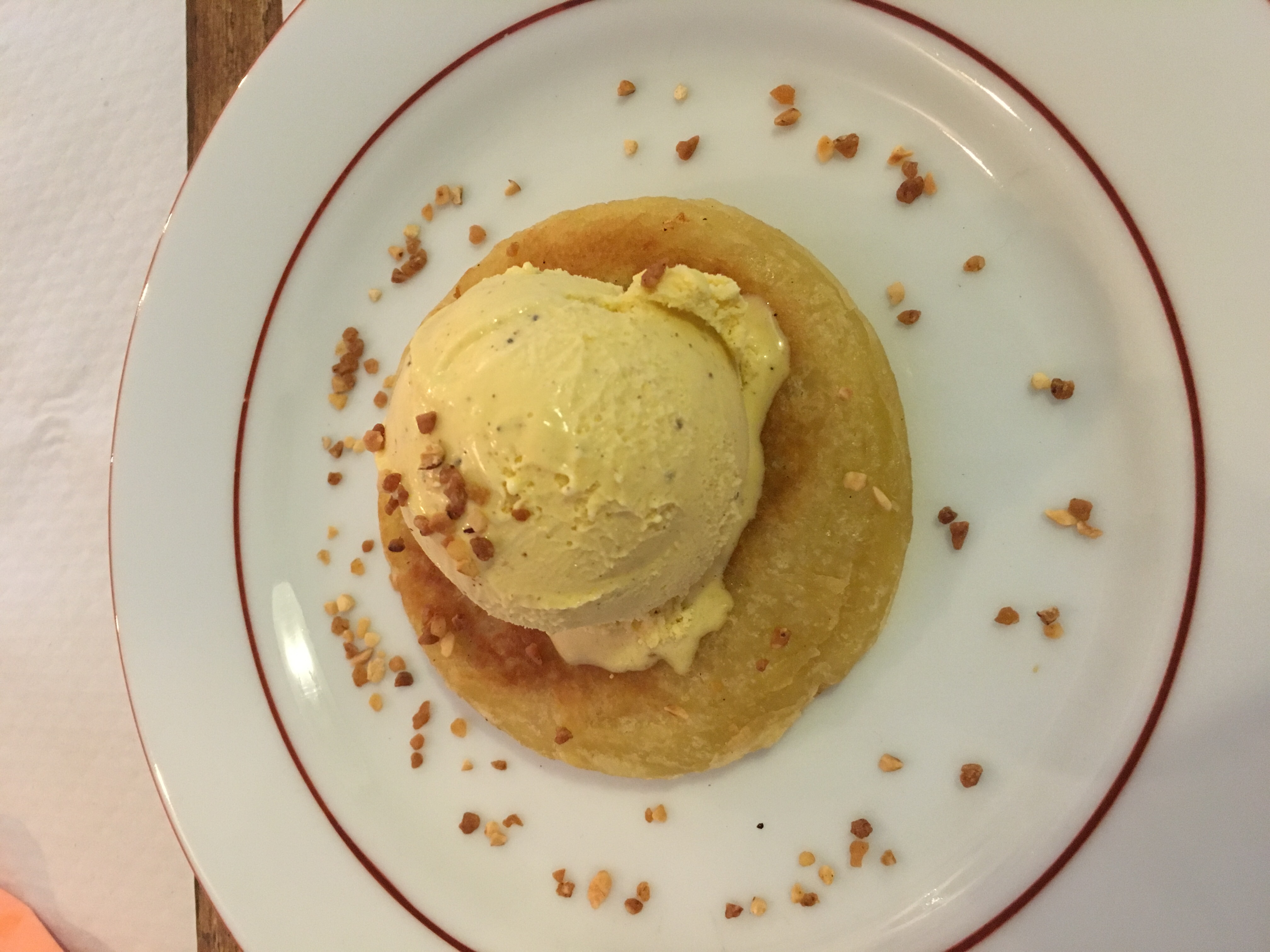 Très dur à trouver, mais la récompense est là. Après un accueil très souriant, nous voilà à table. Les plats arrivent rapidement et le régal commence. Toujours aux petits soins, la serveuse est toujours présente pour ravitailler en eau, remplir le verre, ramener les assortiments d'entrée. Même si on a été bien repu, on a quand même pris un dessert, et ce fut une très bonne idée: la crêpe avec la boule de glace est un délice! Bref, un très bon repas dans un restaurant au calme mais difficile à trouver pour la première fois.