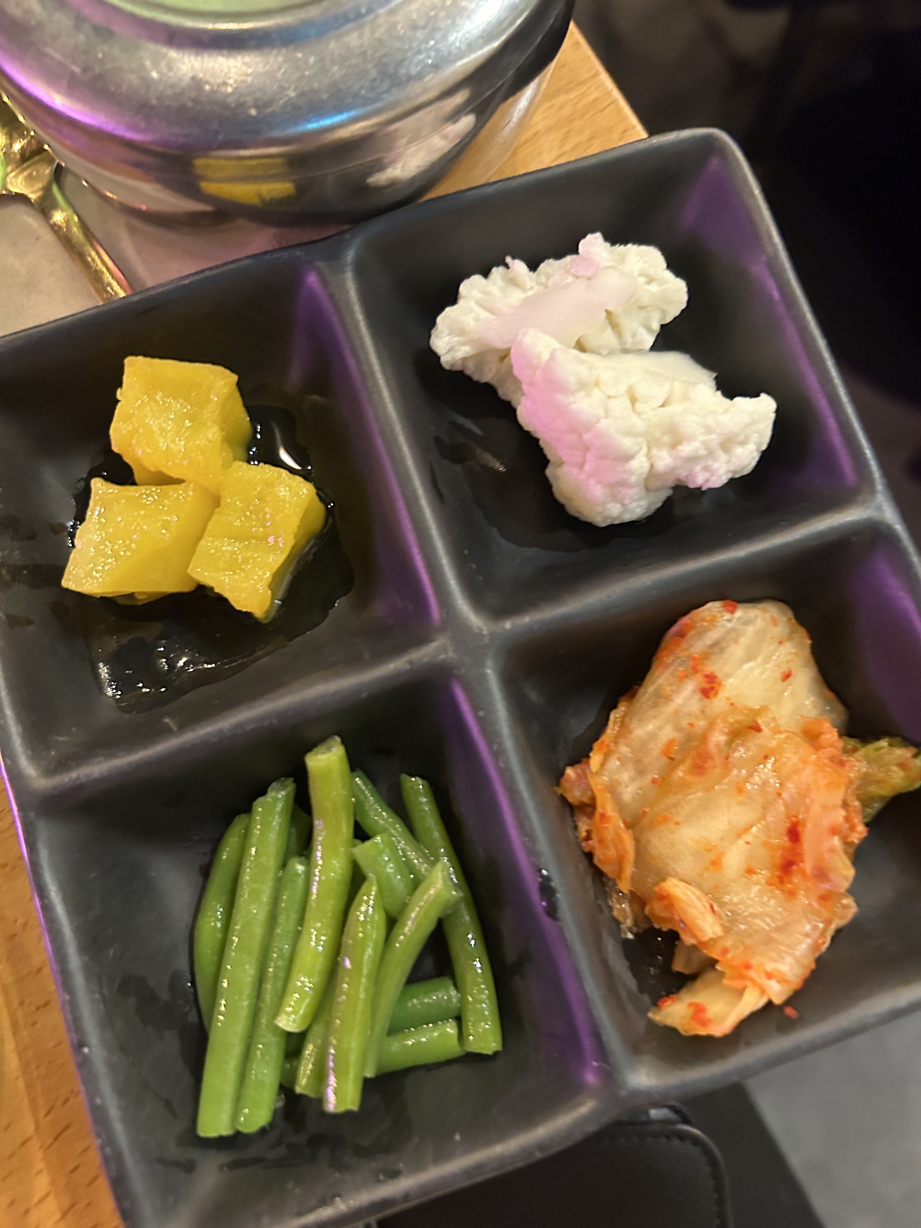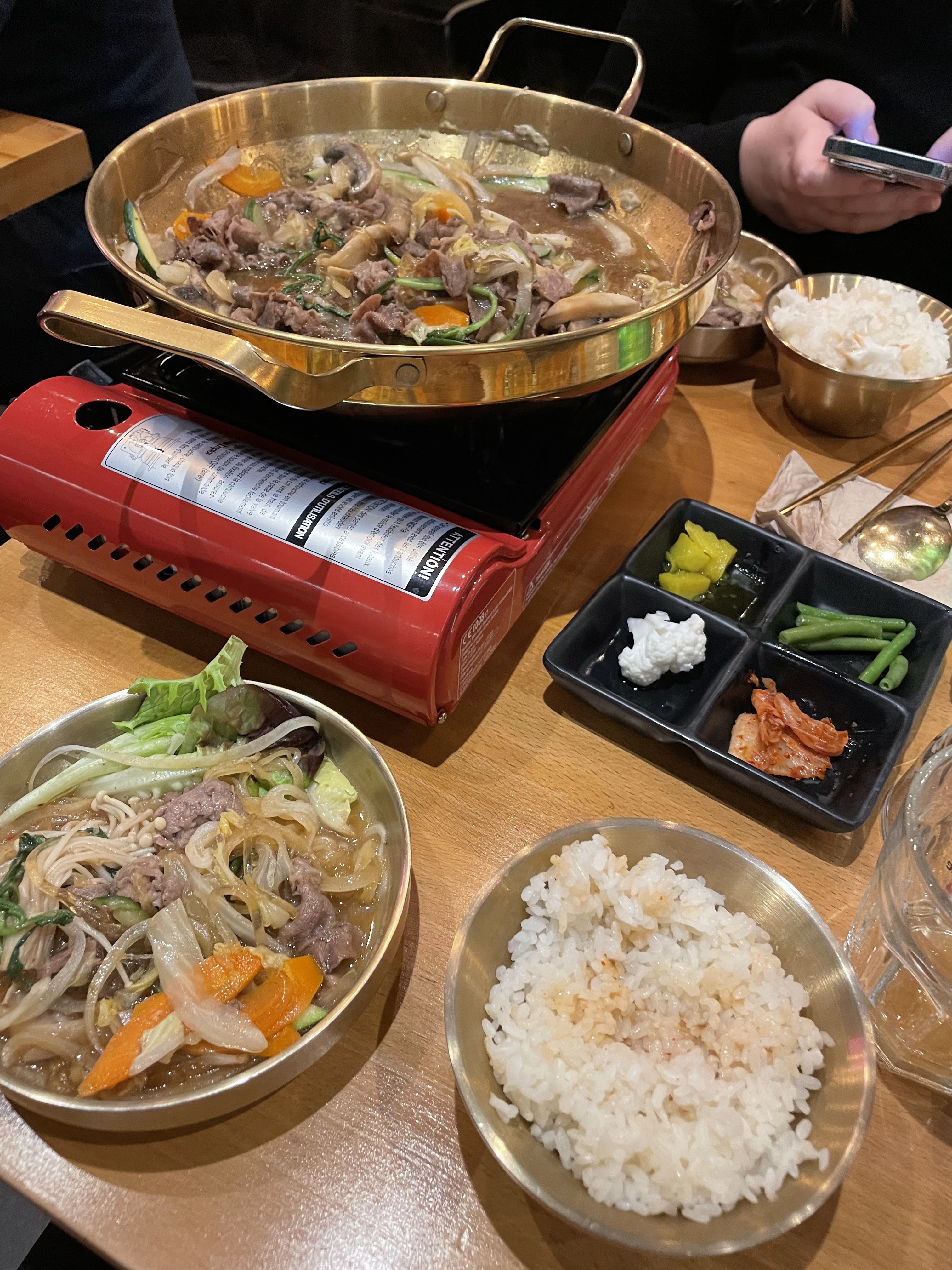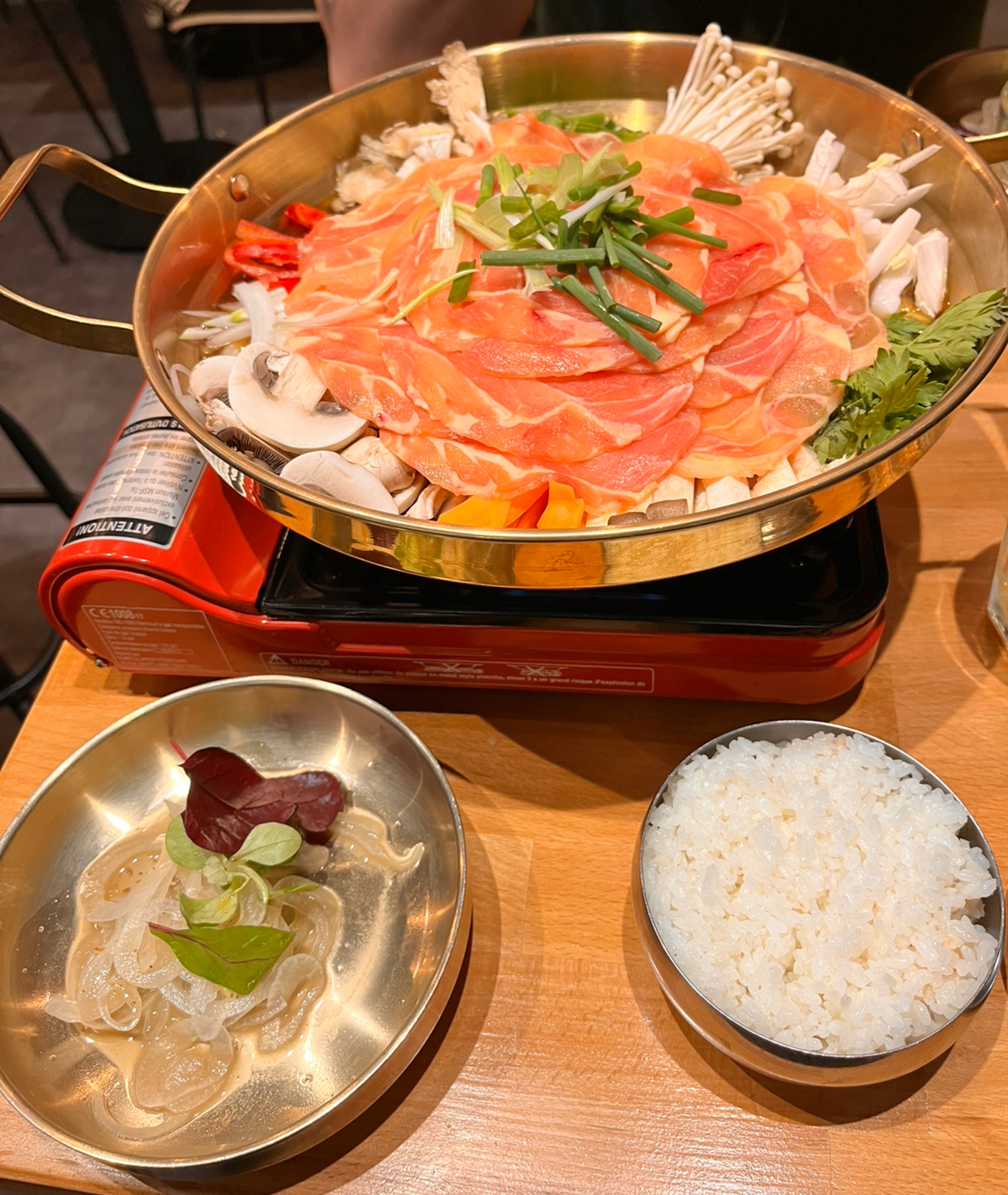 Petit restaurant qui sort vraiment du lot ! L’intérieur est convivial et bien agencé, les tables sont proches mais ce n’était pas gênant pour discuter tranquillement. Nous avons goûté la fondue coréenne et nous avons adoré ! C’est un plat à partager pour deux très savoureux, en bonne quantité, qui est arrivé très rapidement ! Quant au service, il est impeccable, les serveuses sont souriantes et disponibles !