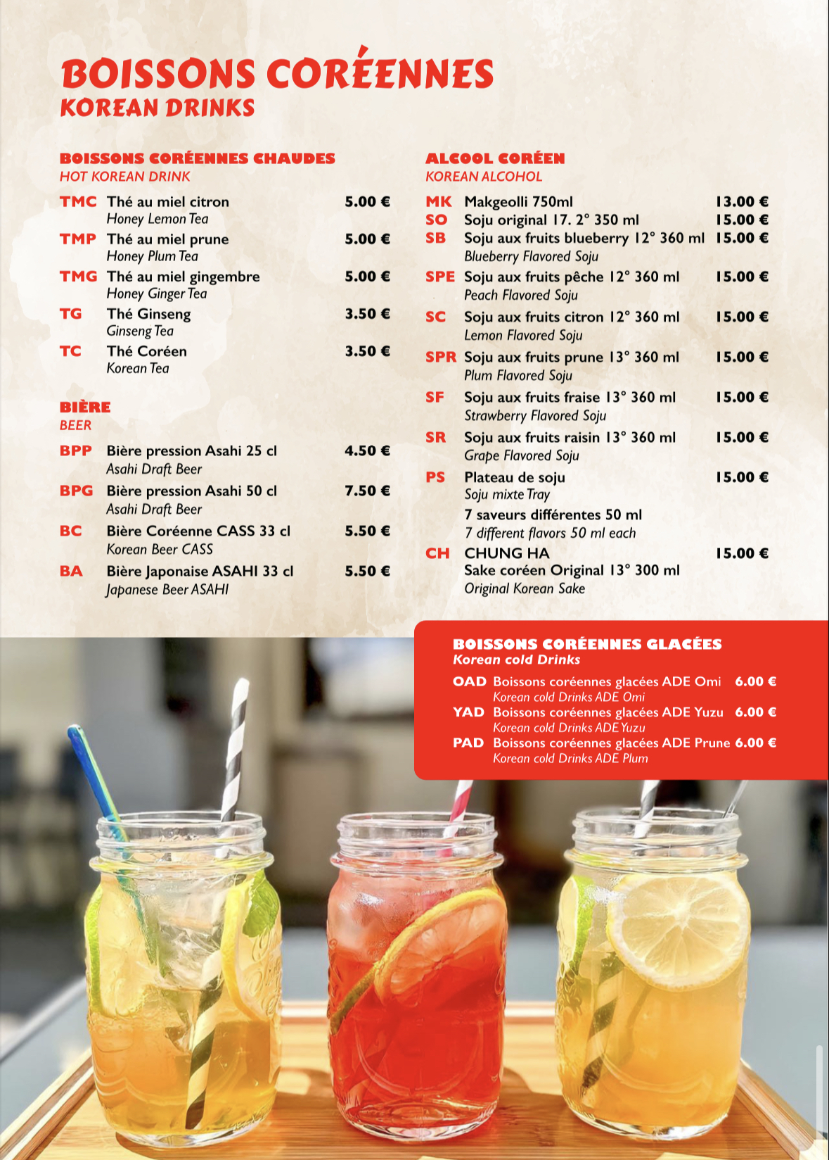 Super bon coréen ! Le bibimbap est EXCELLENT ! Je recommande. Ainsi que les wings caramélisées La limonade maison est top ! Les service est top. Super rapide et le personnel est adorable. On nous propose un thé en dégustation pour patienter, au riz soufflé. Pas cher du tout en plus