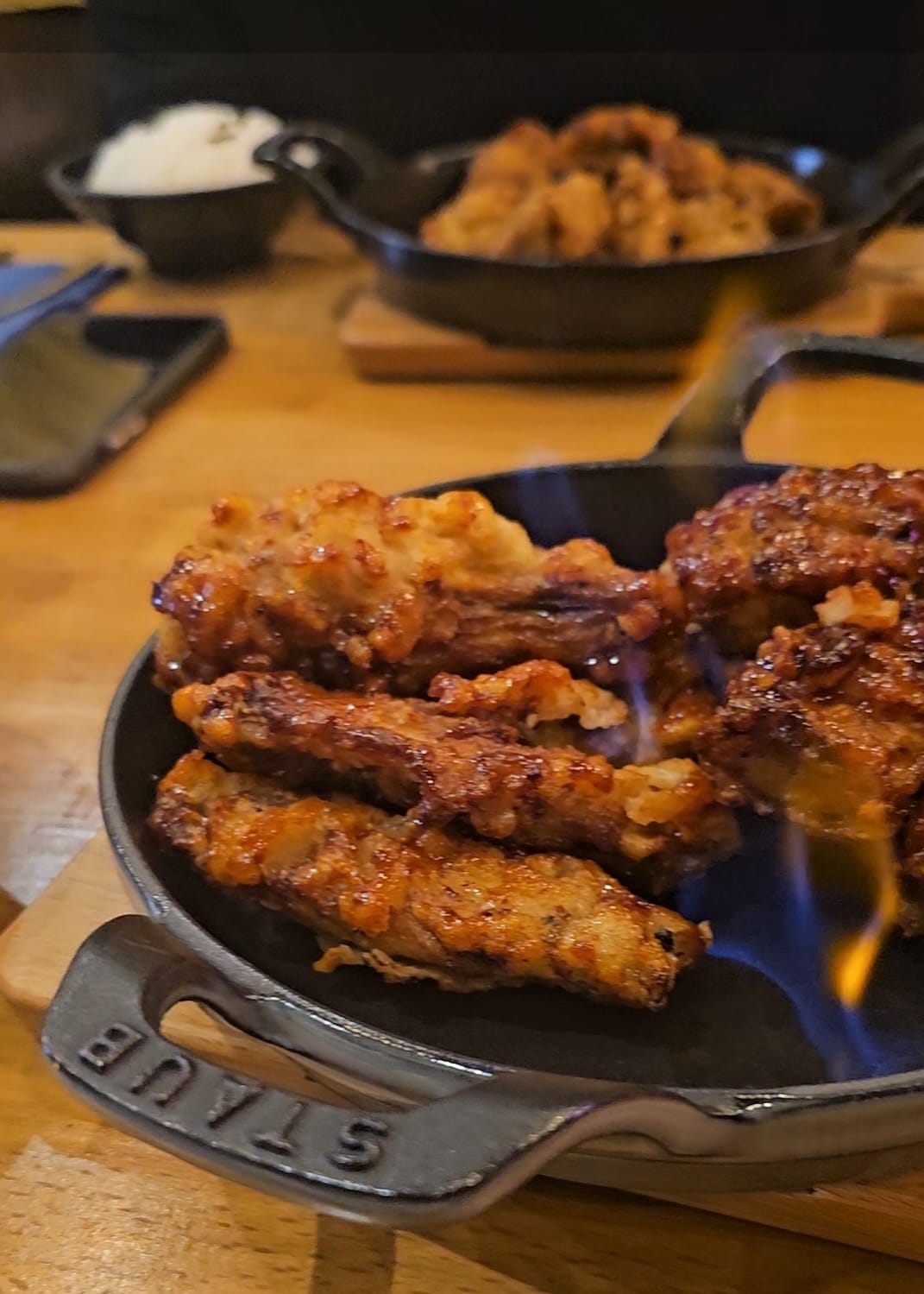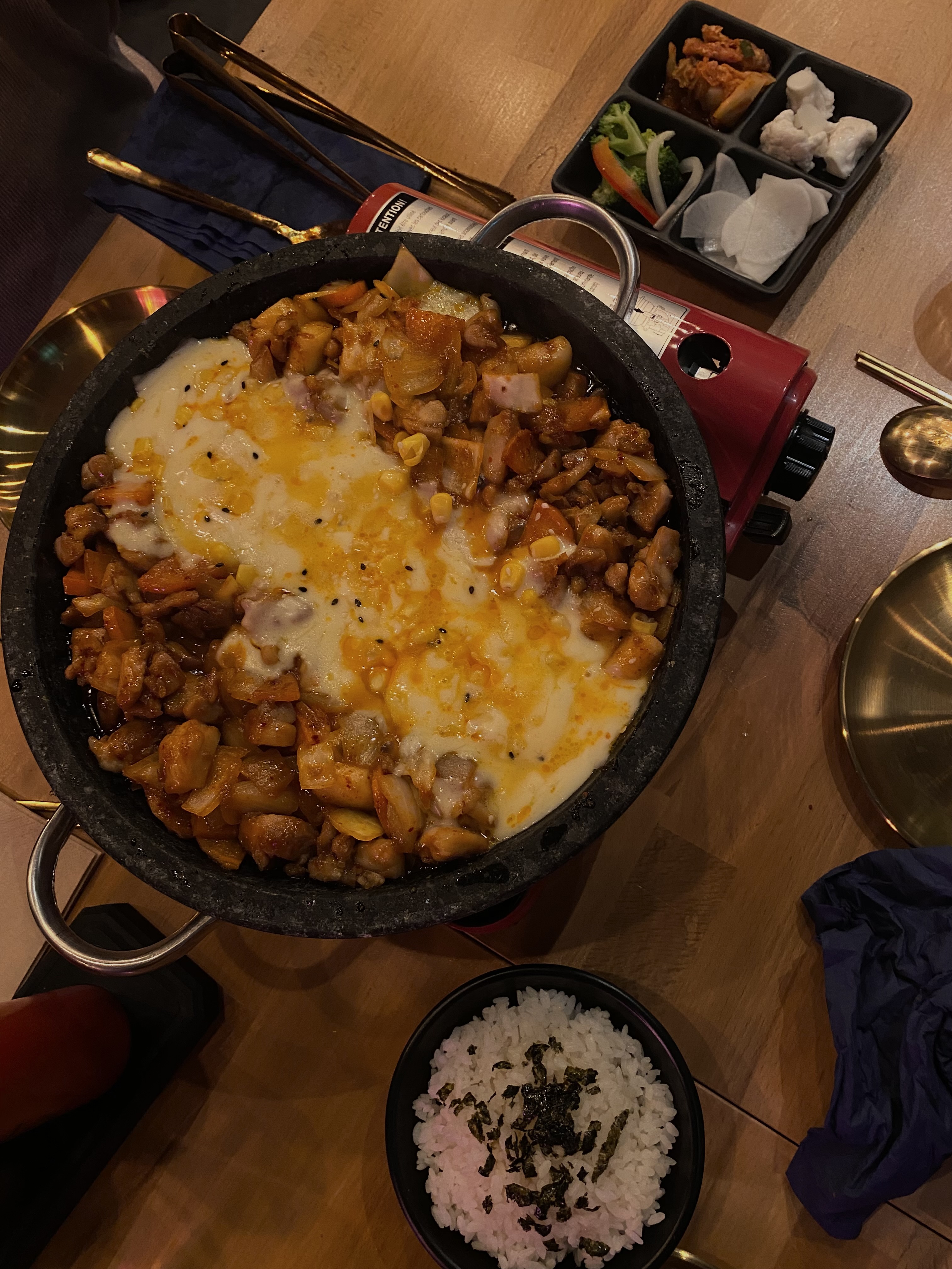 Les plats étaient délicieux et le service était excellent ! Nous avons commandé le cheese dakgalbi ainsi que les boneless de poulet caramélisés, un délice 😋