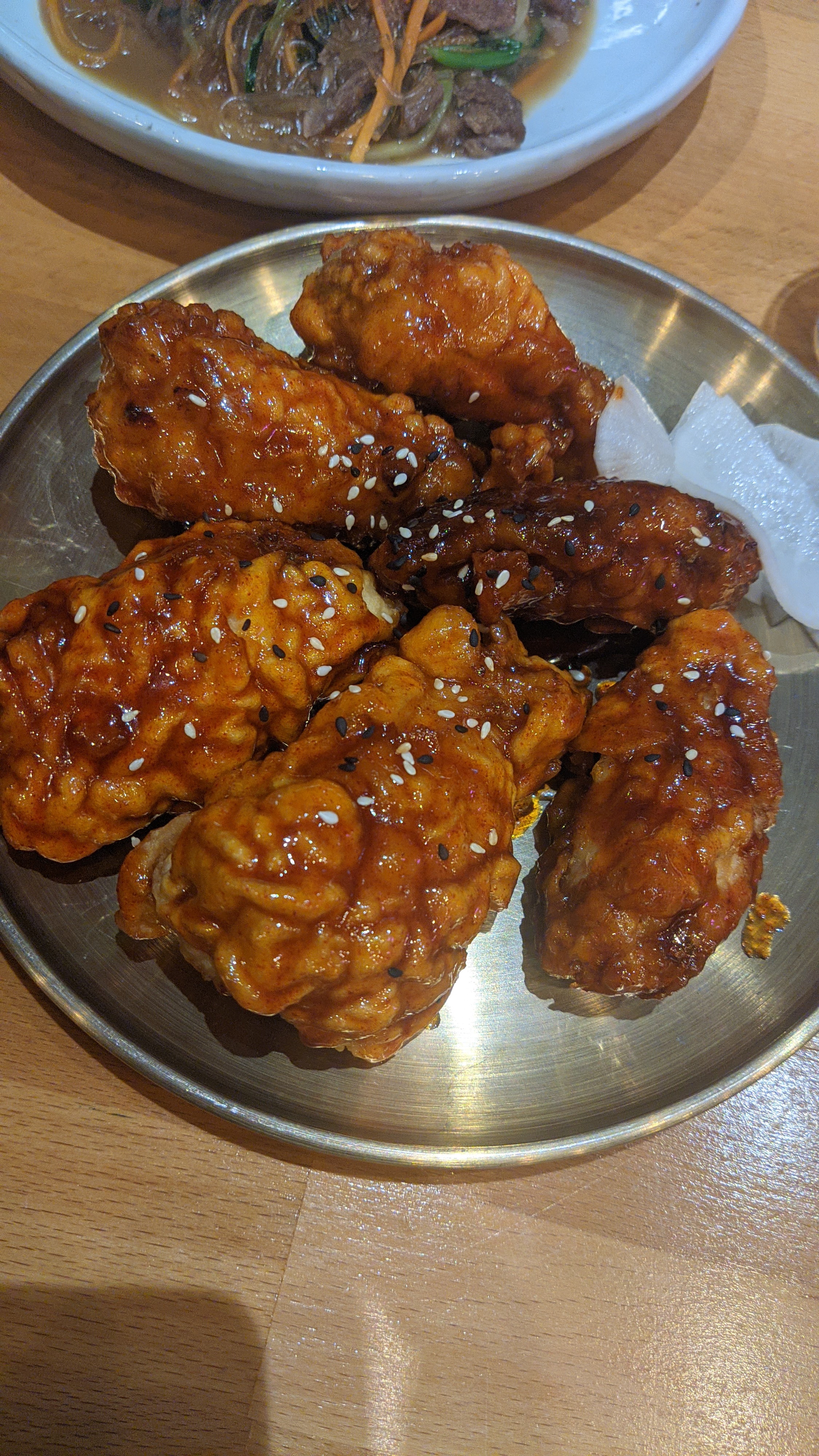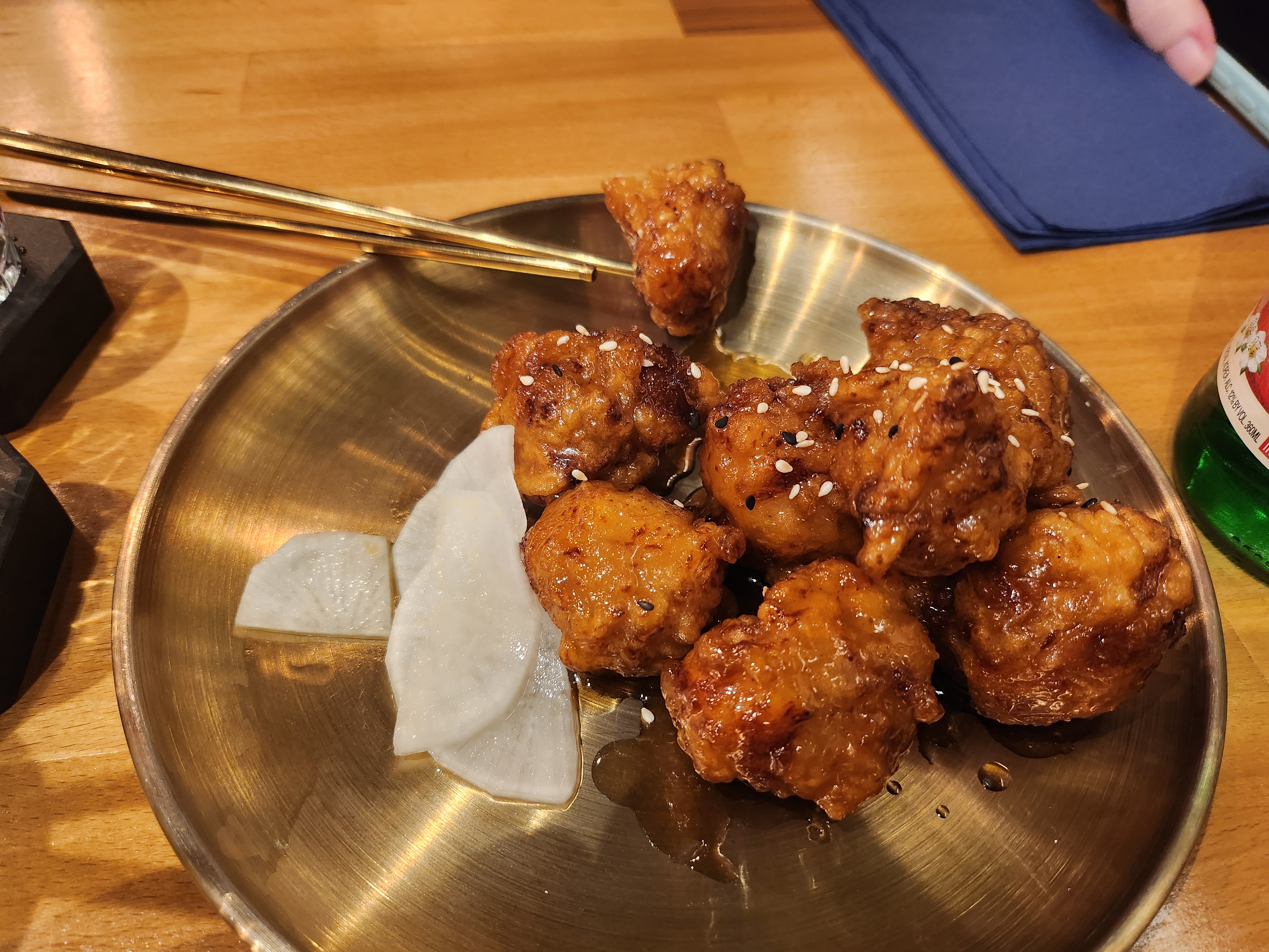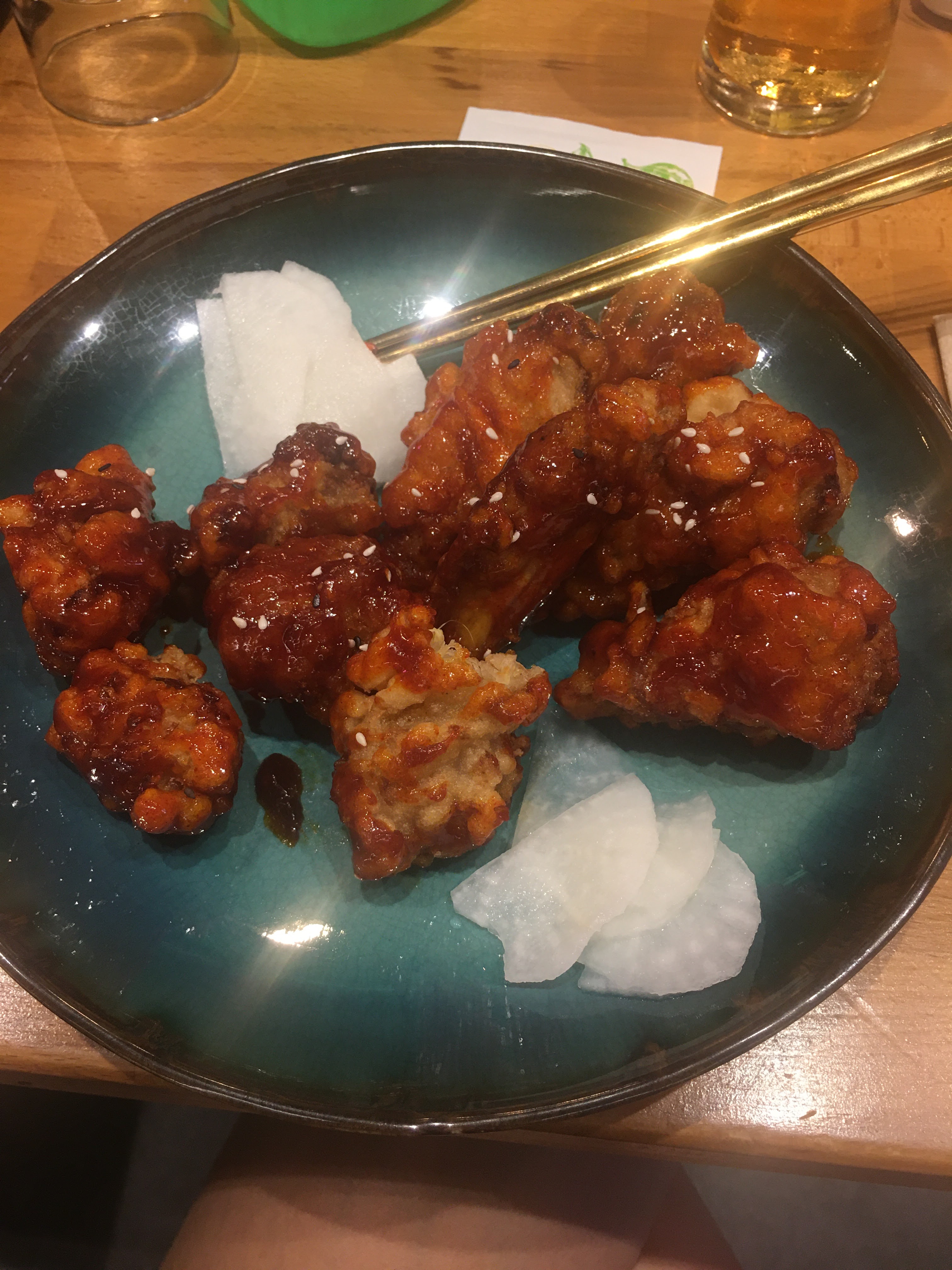 Je suis allé pour manger poulet coréen pimenté. C’était hyper mauvais. Le goût texture et l’odeur sont été terribles. Jamais de la vie.les serveuses need to stop looking at you while you are eating… c’est dérangeant.bière était fraîche et l’ambiance était cool.