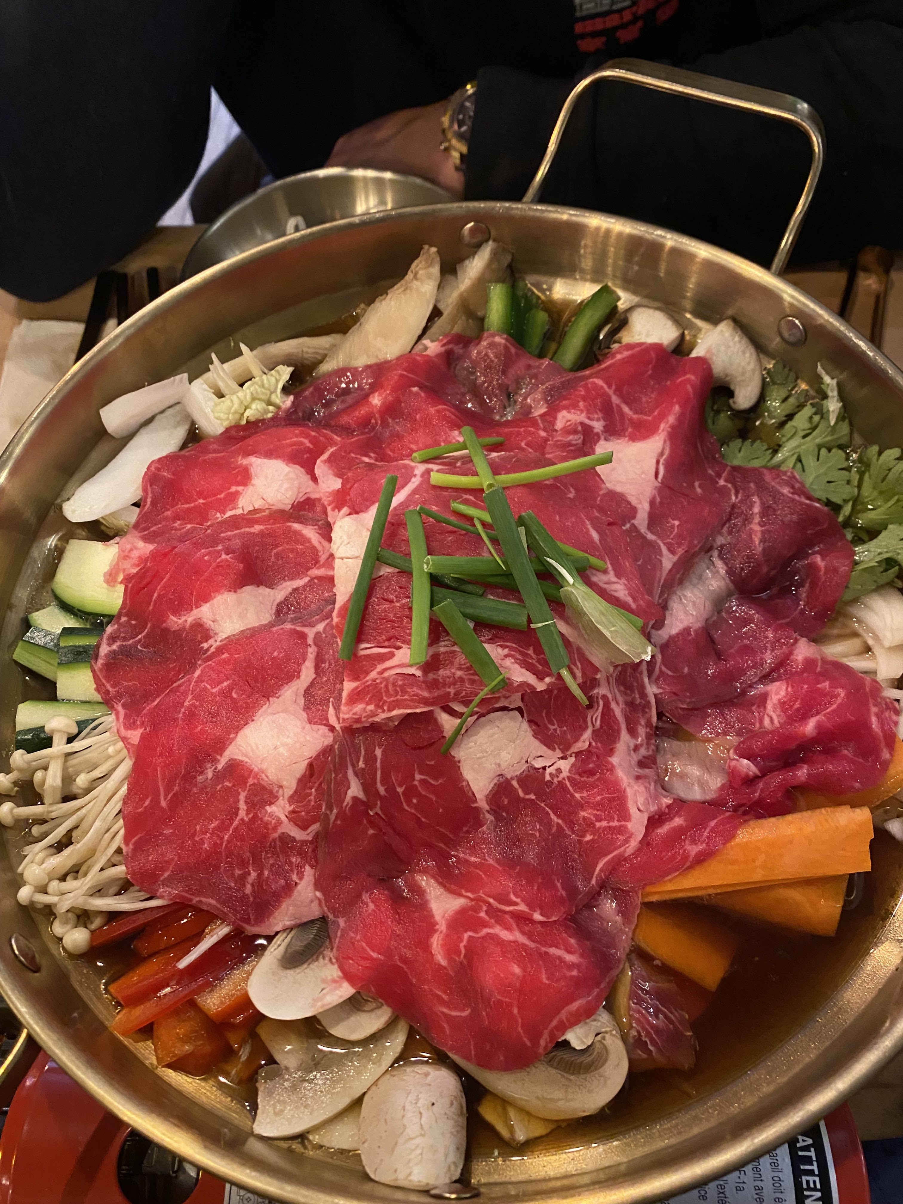 Je n’avais jamais essayé la fondue Coréenne et je n’ai vraiment été déçu. Le personnel du restaurant est la pour vous expliquer tout et reste disponible à chaque moment de votre repas. C’est très agréable ! Côté goût je me suis régalé. Si vous n’avez jamais essayé la fondue Coréenne je ne peux que vous conseiller cette adresse, elle est abordable et bonne.