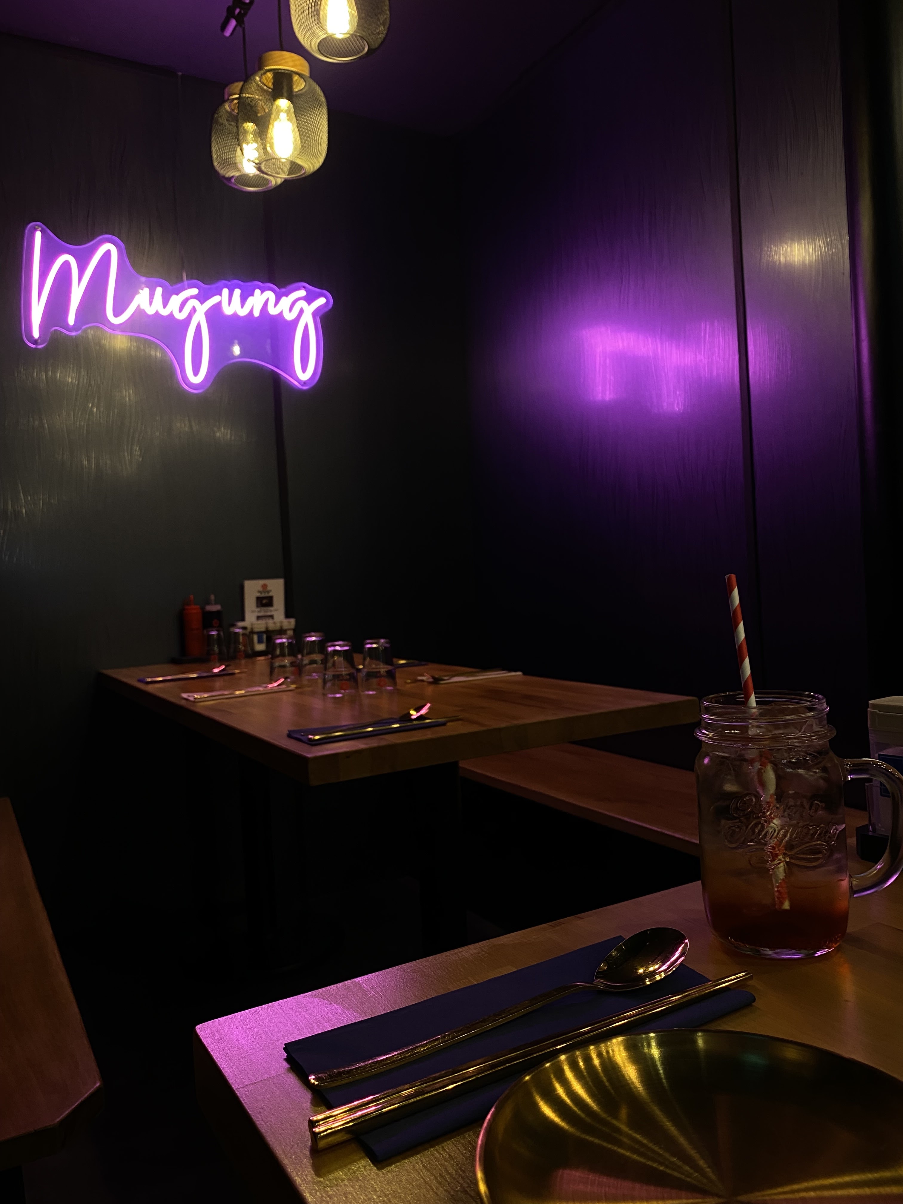 Nous avons cherché un restaurant coréen pour dîner et nous avons tombés sur Mugung par hasard. L’accueil est gentil et agréable. La fondue de nouille pigmentée est très bonne et nous nous sommes régalés. Petit cadre mais pas bruyant, nous recommandons.