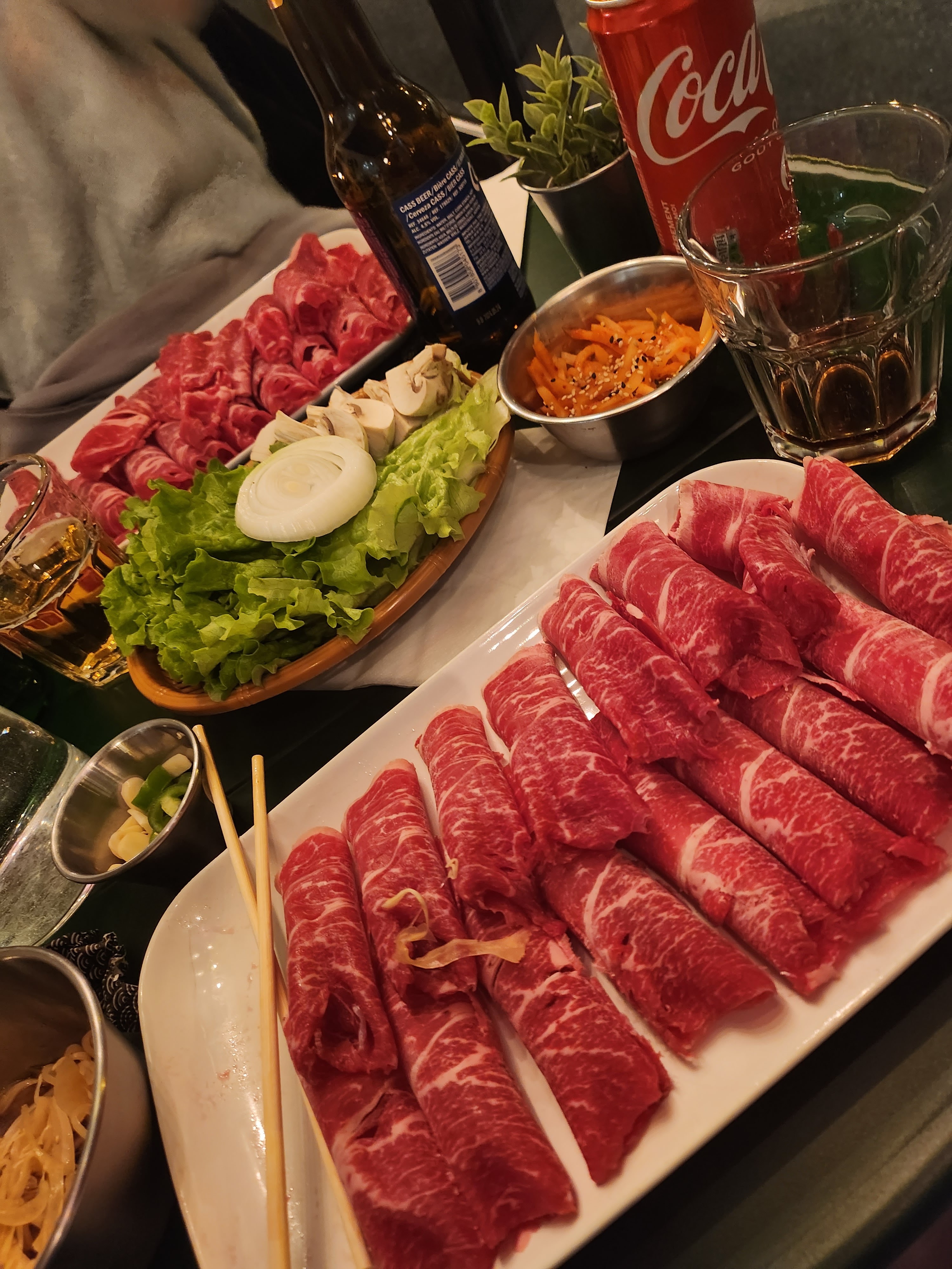 Serveuse sympathique. Nous sommes allés dans ce restaurant pour le BQQ. Très décevant, viande surgelée, pas de marinade, aucun assaisonnement. Les mandu étaient bons. Propreté qui laisse à désirer, pas de décoration. Je ne recommande pas.