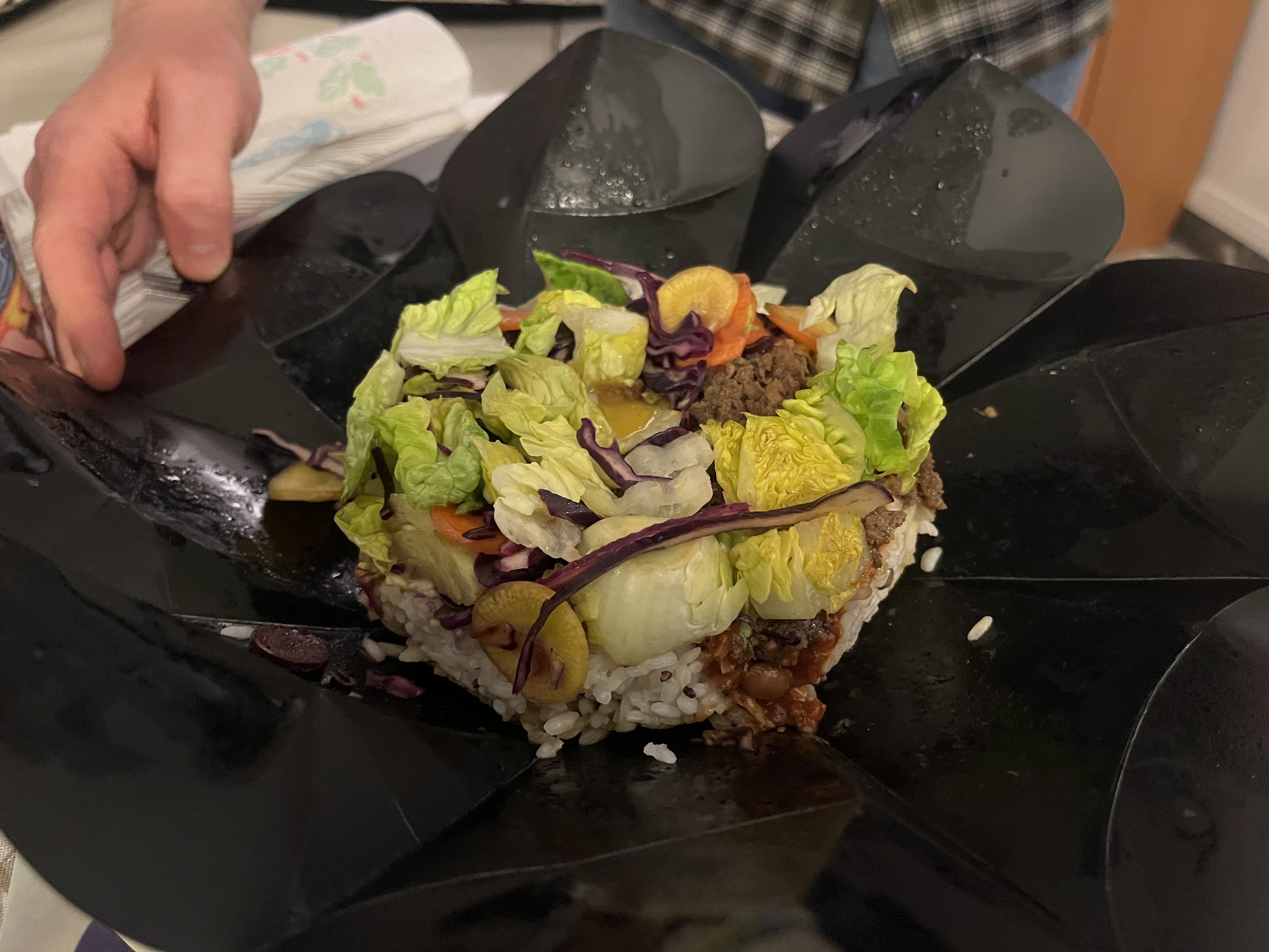Jamais vu un emballage aussi jolie. J’ai adoré le concept du bibimbap bœuf revisité. C’était délicieux, rien à redire. La quantité est correcte. Je me suis régalée ! Merci à vous !