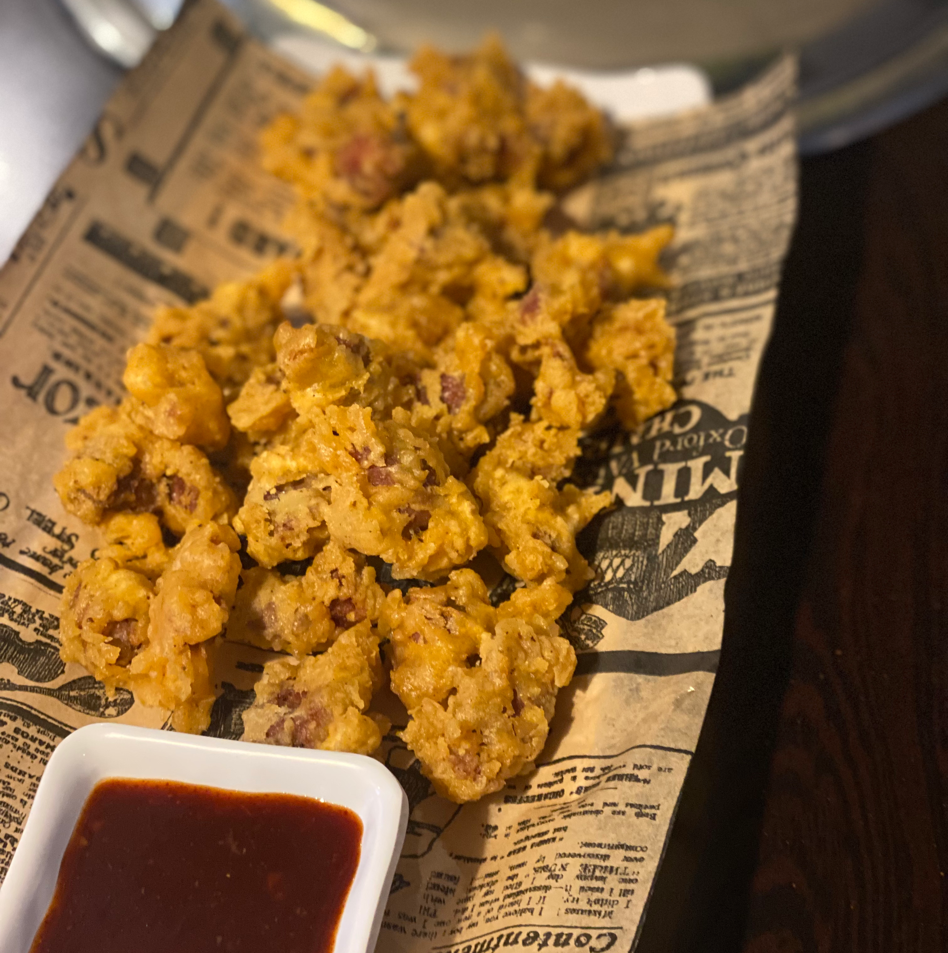 Cet endroit est incroyable ! Nous avons pris le poulet frit et c'était tellement bon. Il s'agit d'un poulet complet et de frites ! Nous avons essayé le miel et la saucisse épicée, toutes deux très bonnes. Ils nous ont donné des gants en plastique comme d'habitude en Corée pour ne pas nous salir les mains. Les gens qui y travaillent sont tous très sympathiques et nous ont aidés pour tout. L'ambiance du restaurant est également très agréable. Confortable et peu fréquenté. Je reviendrai certainement Ps. ils ont aussi des salles de karaoké.