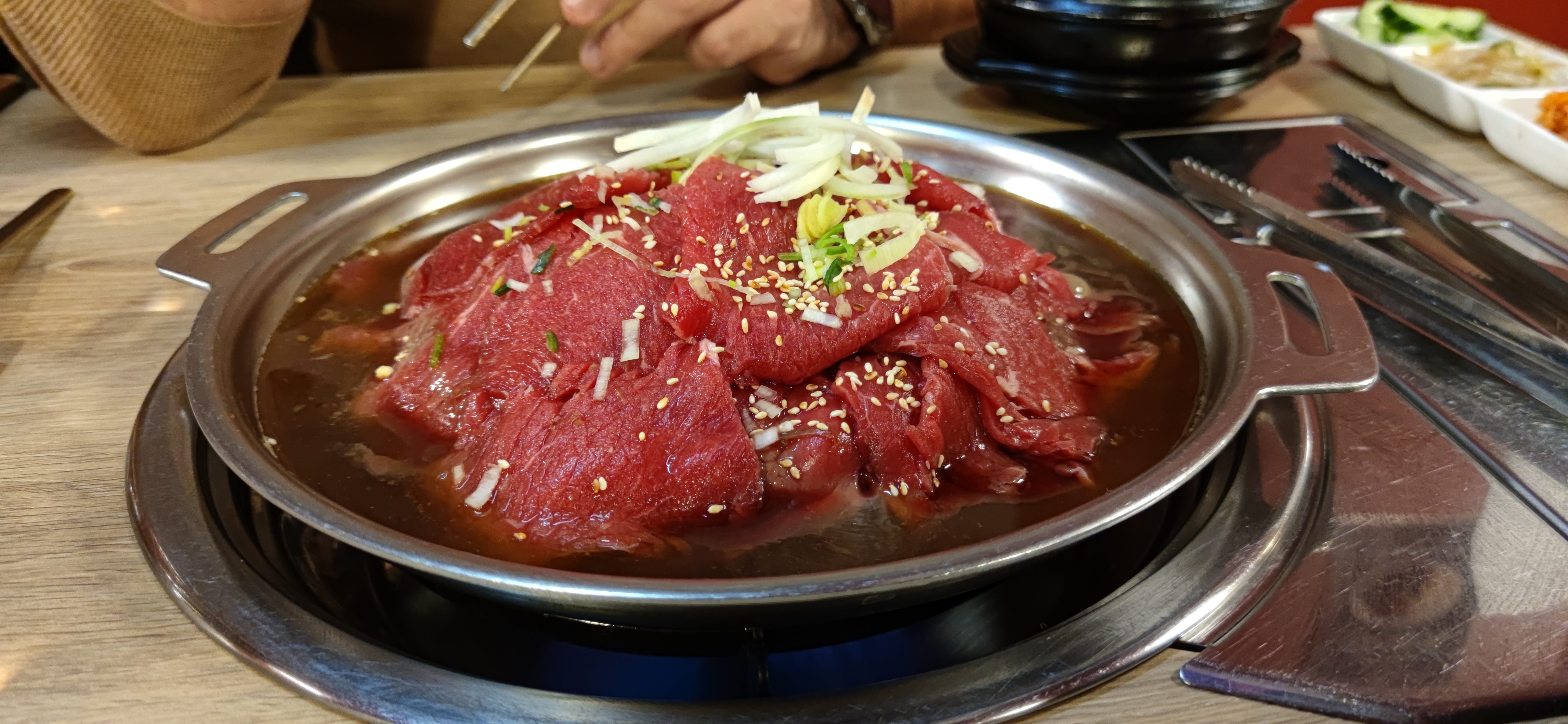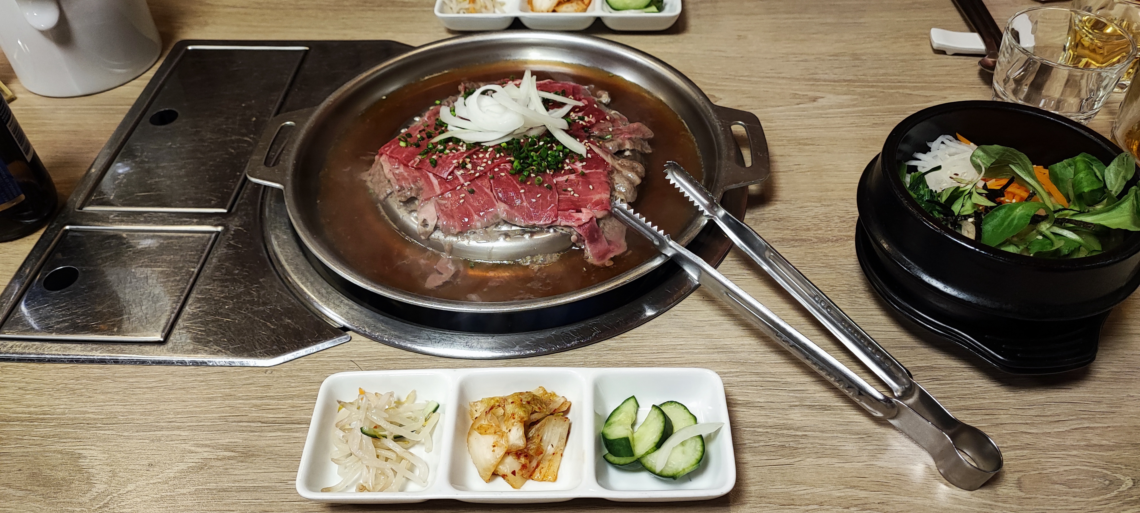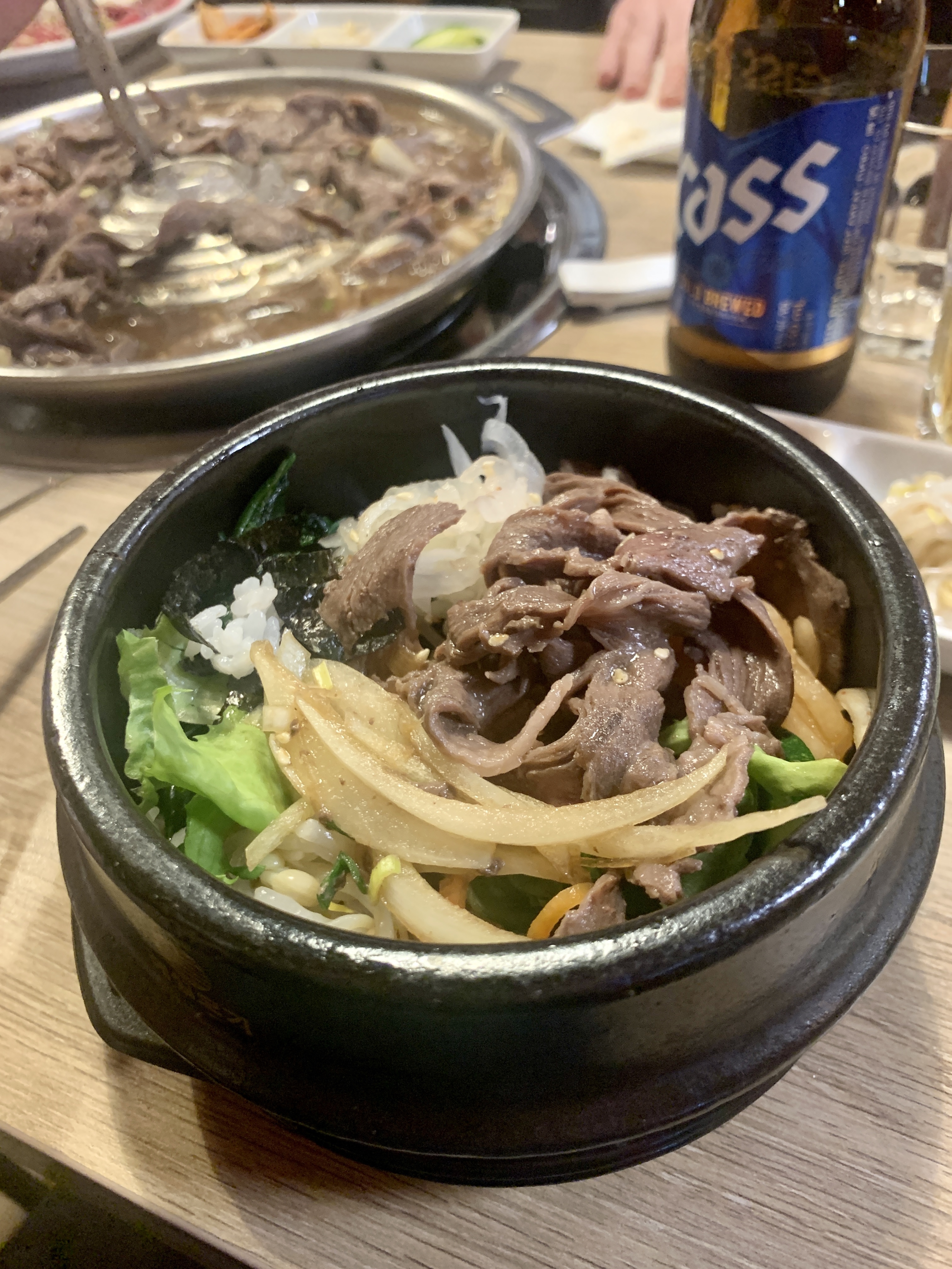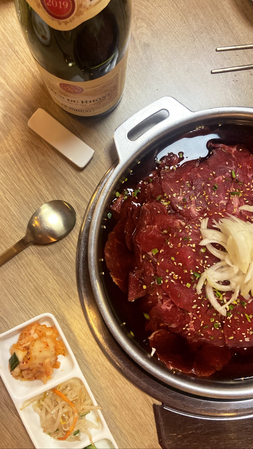 Première fois que je test un BBQ coréen et je suis satisfaite ! Il y a une bonne quantité de viande, un bon rapport qualité prix. Accompagné d'un petit bibimbap pas trop rempli pour profiter de la grillade. Le personnel est très accueillant.
