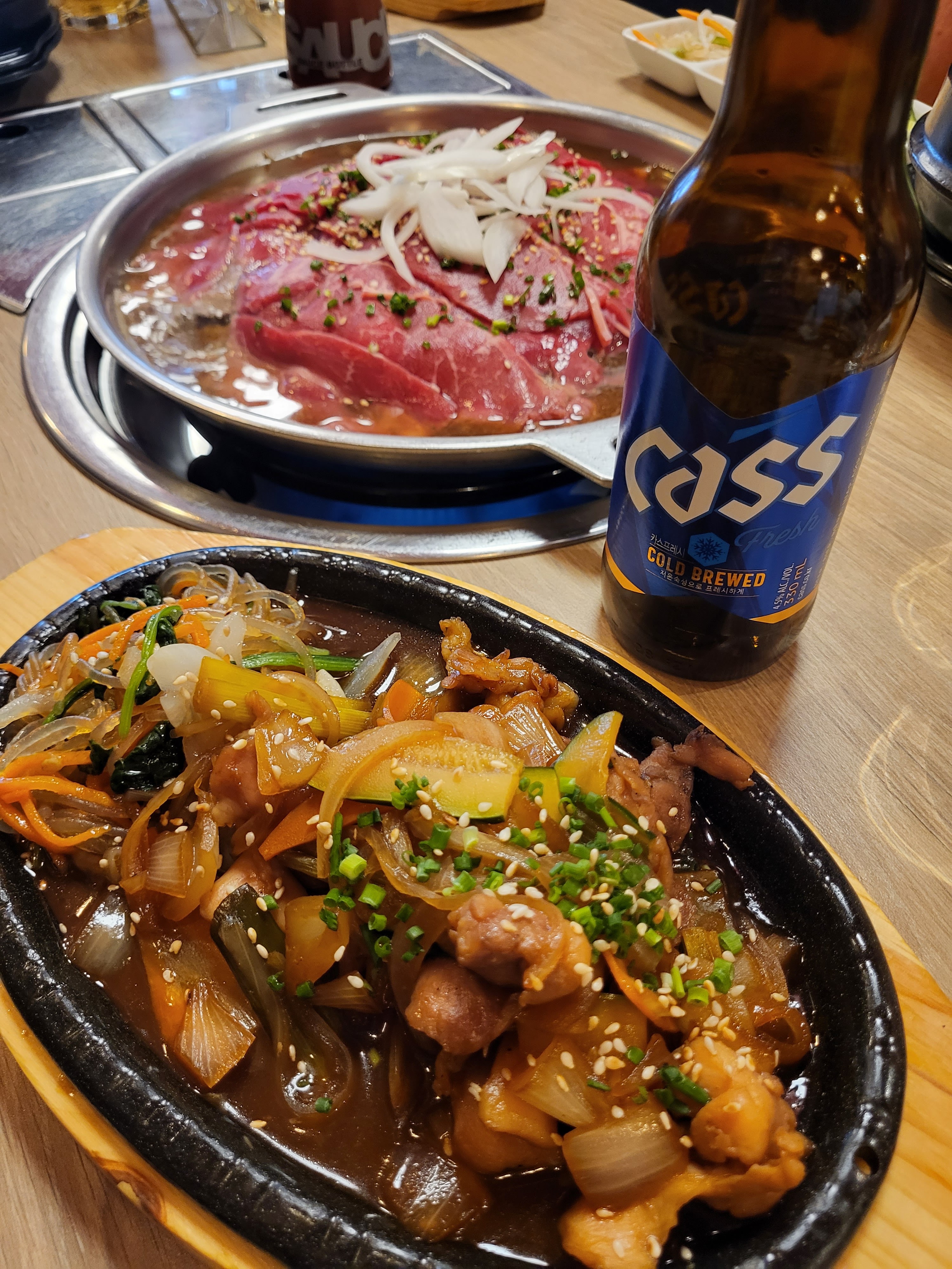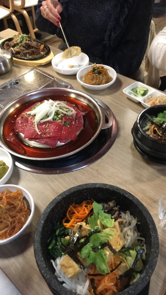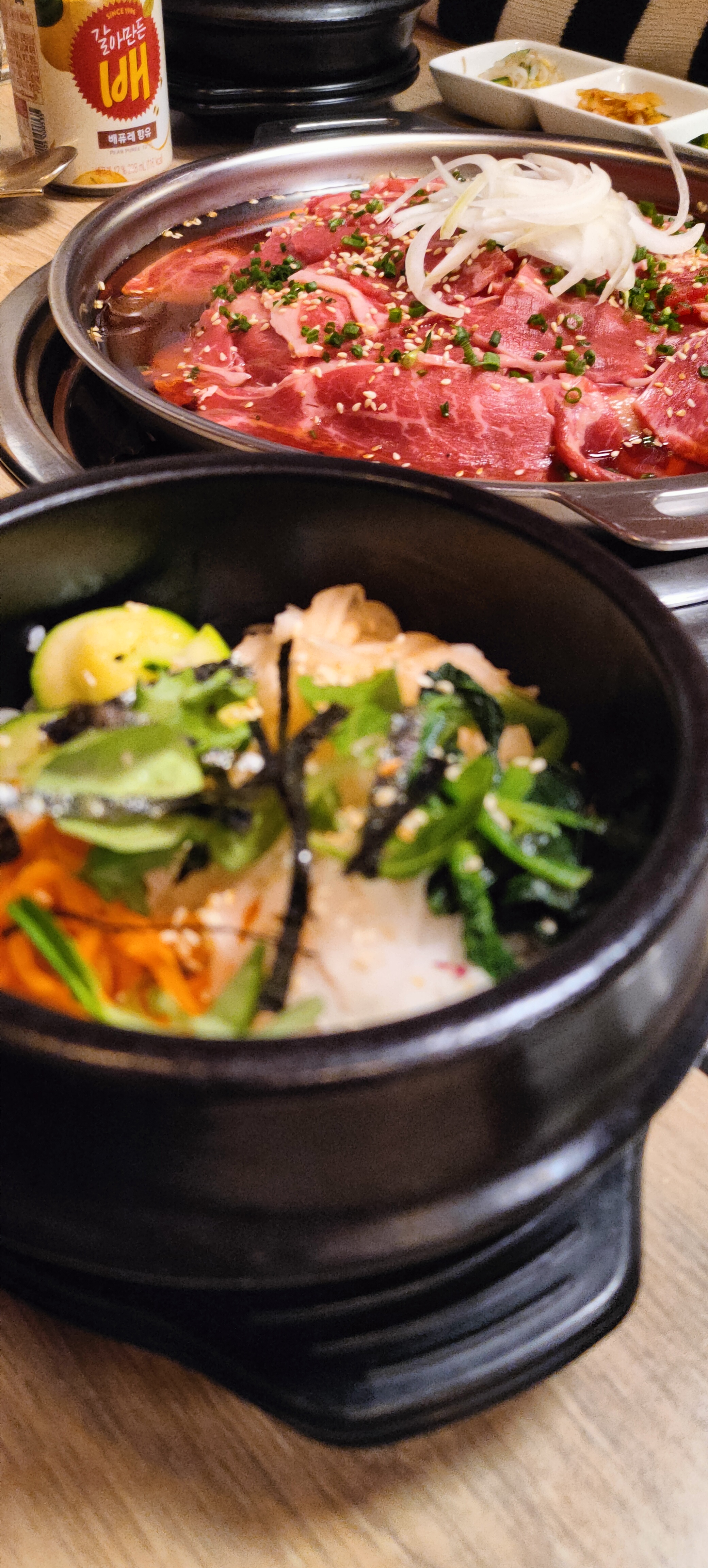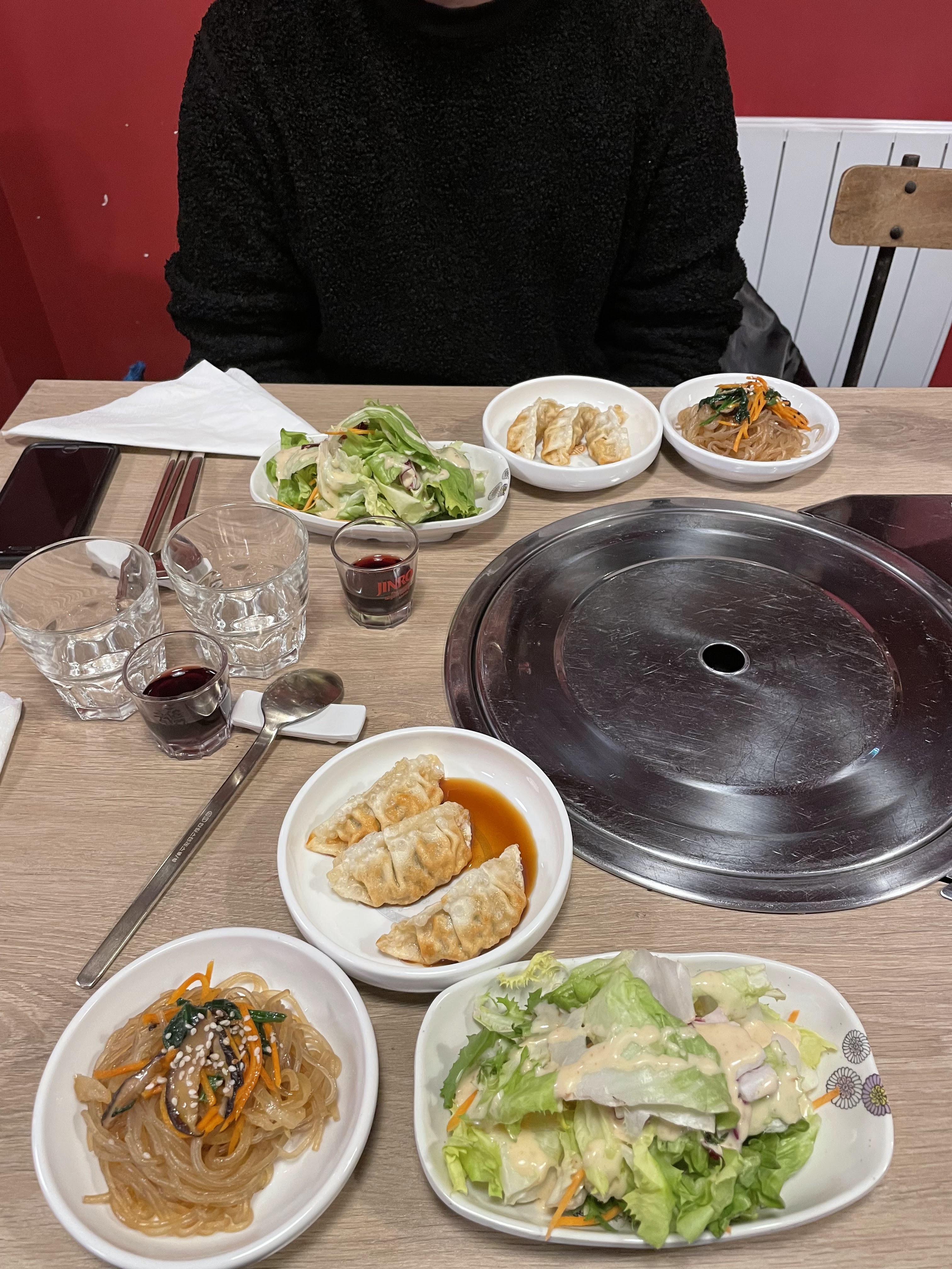 Bon restaurant, les produits sont bons, il y a du choix et des options vegans. Les plats sont bien assaisonnés, les formules copieuses. L'accueil est super, le personnel était très sympa. J'ai prix le menu avec gyoza aux légumes et bibimbap au tofu, les gyozas étaient très bons, j'ai adoré les nouilles en entrée, le bibimbap correspondait à mes attentes. Mes amis ont pris du boeuf, l'un au barcebue, l'autre dans le menu. C'est sympa de faire son propre barbecue mais ils ont préféré la cuisson du boeuf du menu. C'était ma première fois dans un barbecue coréen, j'ai trouvé les prix un peu élevés mais je ne connais pas les prix du marché.