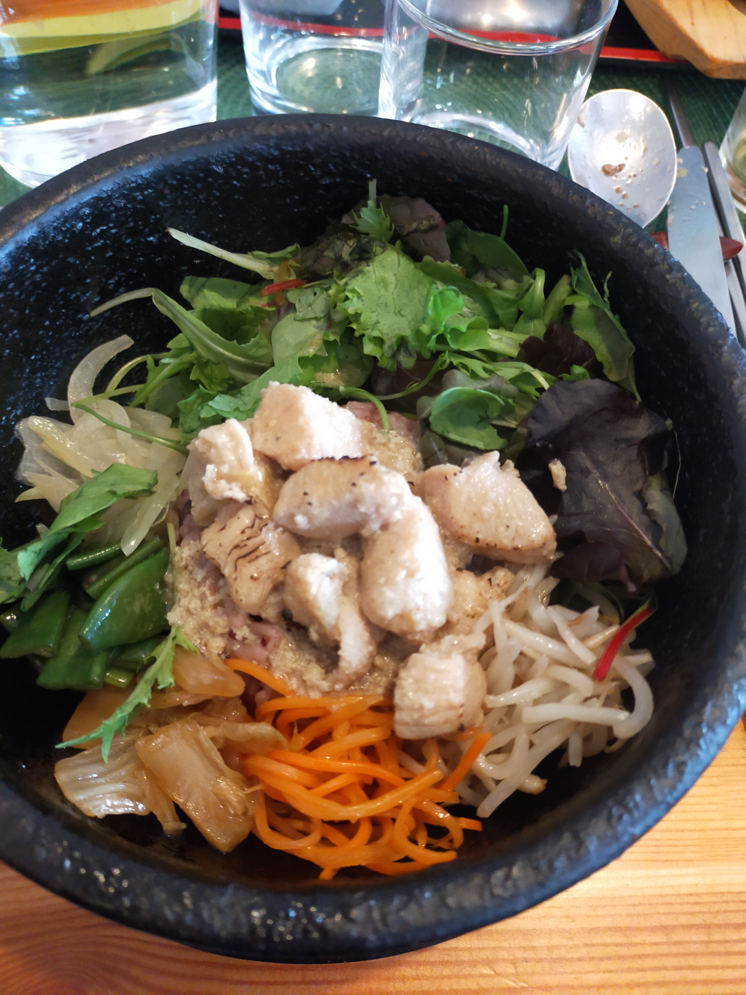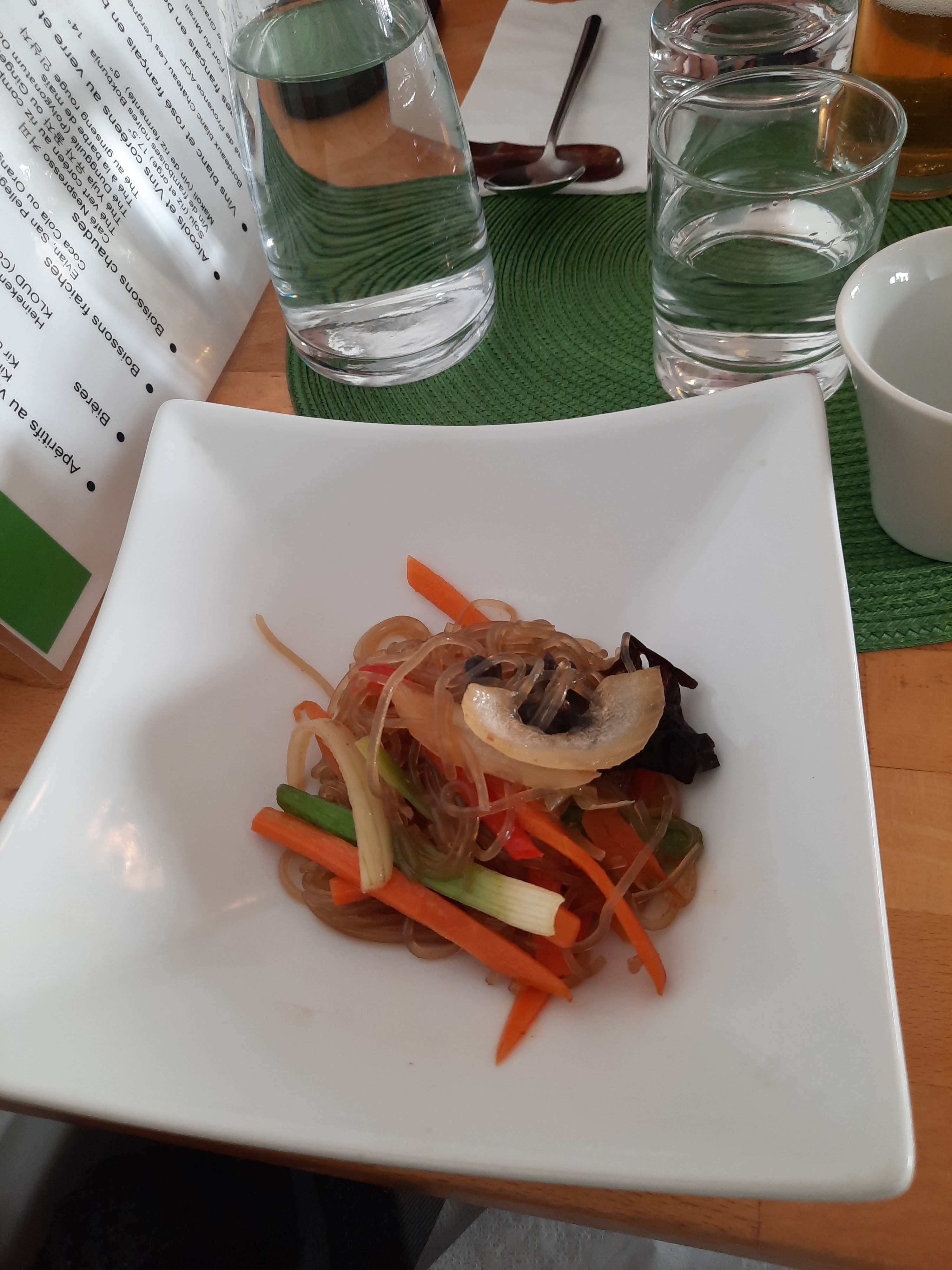 Japchae excellent, bibimpap de légumes trop bon. Au top! Plat typiquement Coréen qui sort de l'ordinaire. Un régal.