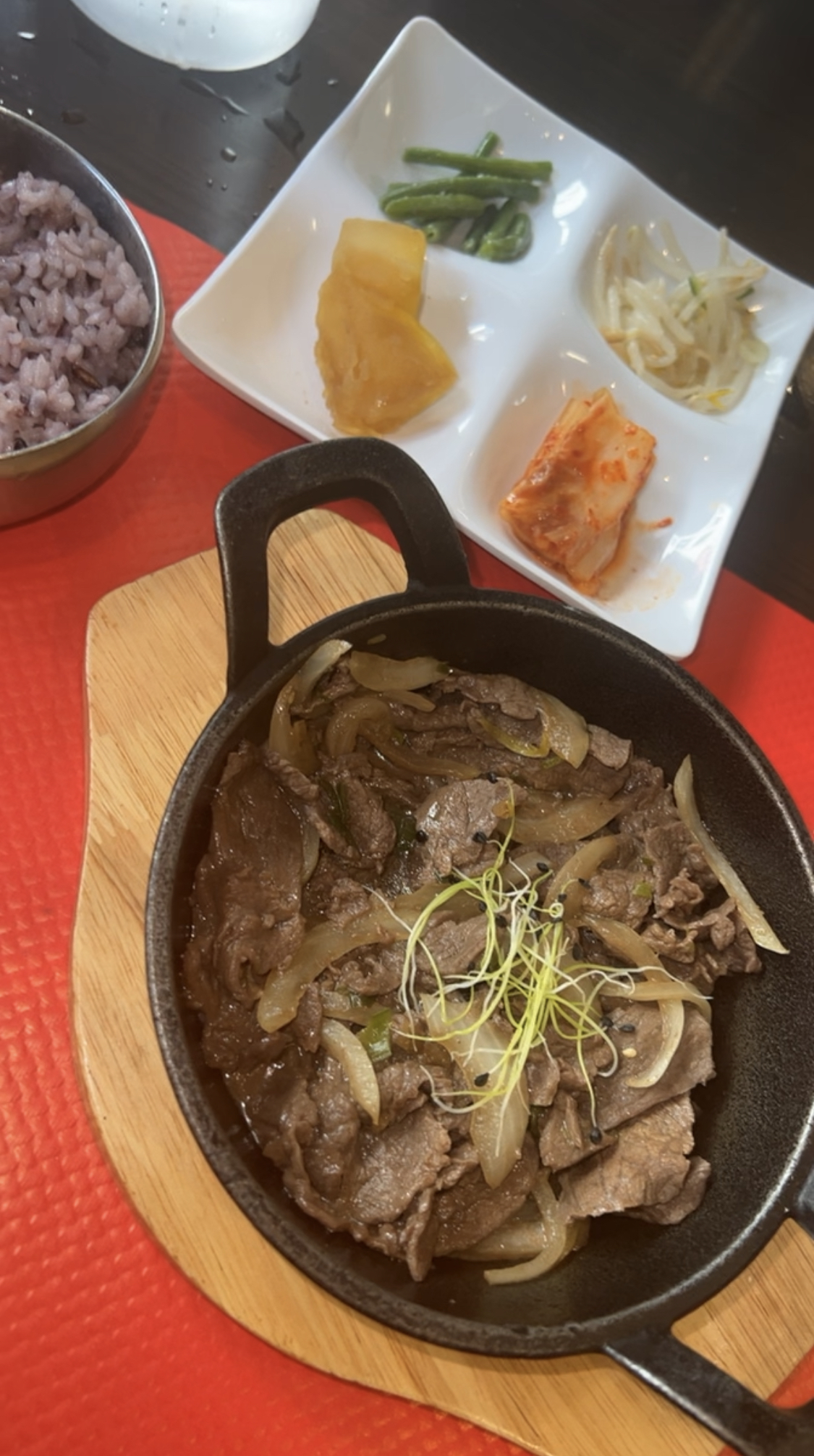 Restaurant coréen authentique. Nous avons goûter le Sundaeguk et le Bulgogi. C'était bien assaisonné et très réconfortant. Tous les plats sont servis avec du riz noir et des sides (kimchi, pomme de terre, pousses de soja, etc). Dommage qu'il n'y avait pas assez de sundae dans le Sundaeguk. Et le bulgogi était servi dans un petit plat. Si vous mangez beaucoup, vous ne serez pas rassasié(e).