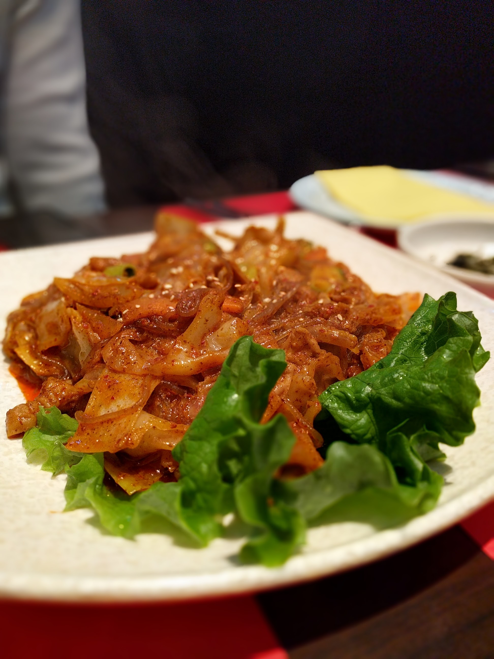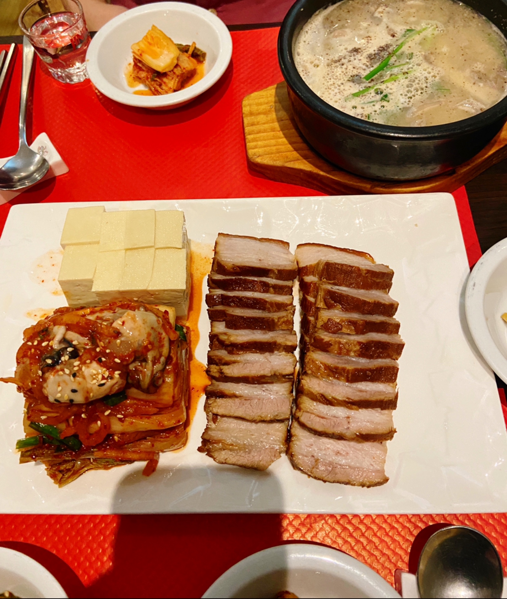 Belle découverte moi qui suis fan du bossam j'ai pu trouver ce restaurant coréen qui en sert et généreusement avec le kimchi excellent