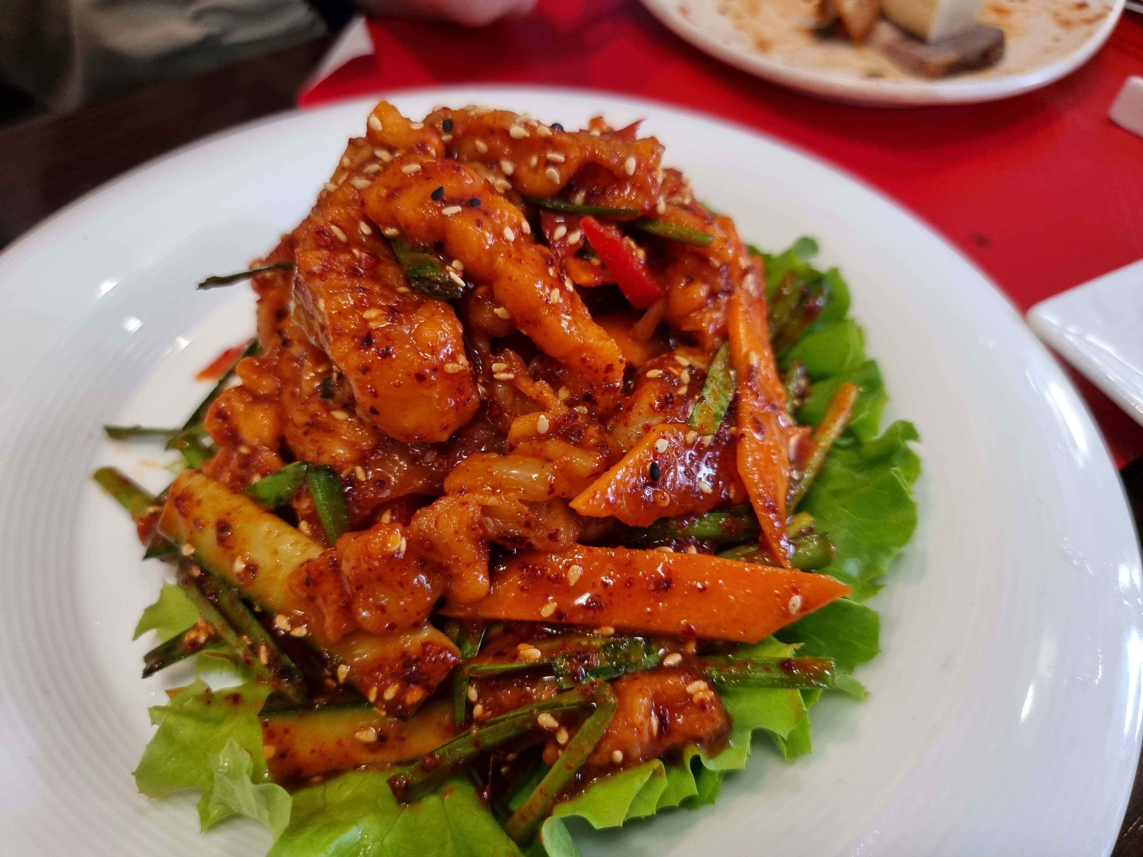 Accueil fort chaleureux, décoration surprenante, mais on s'y fait rapidement. Ce restaurant coréen a un menu très riche. Une quantité d'entrées et de plats atypiques (non vu dans les cartes d'autre restaurants coréens) a ne plus savoir ou donner de la tête. Les entrées sont généreuses, a partager. Les plats sont bons. Le plus de ce restaurant ? étant dans une rue un peu cachée, même le vendredi soir, ce dernier n'est pas saturé et on peut y manger tranquillement à notre rythme, contrairement aux restaurants similaire vers sainte Anne ou on c'est le service à la chaîne. Je le recommande.