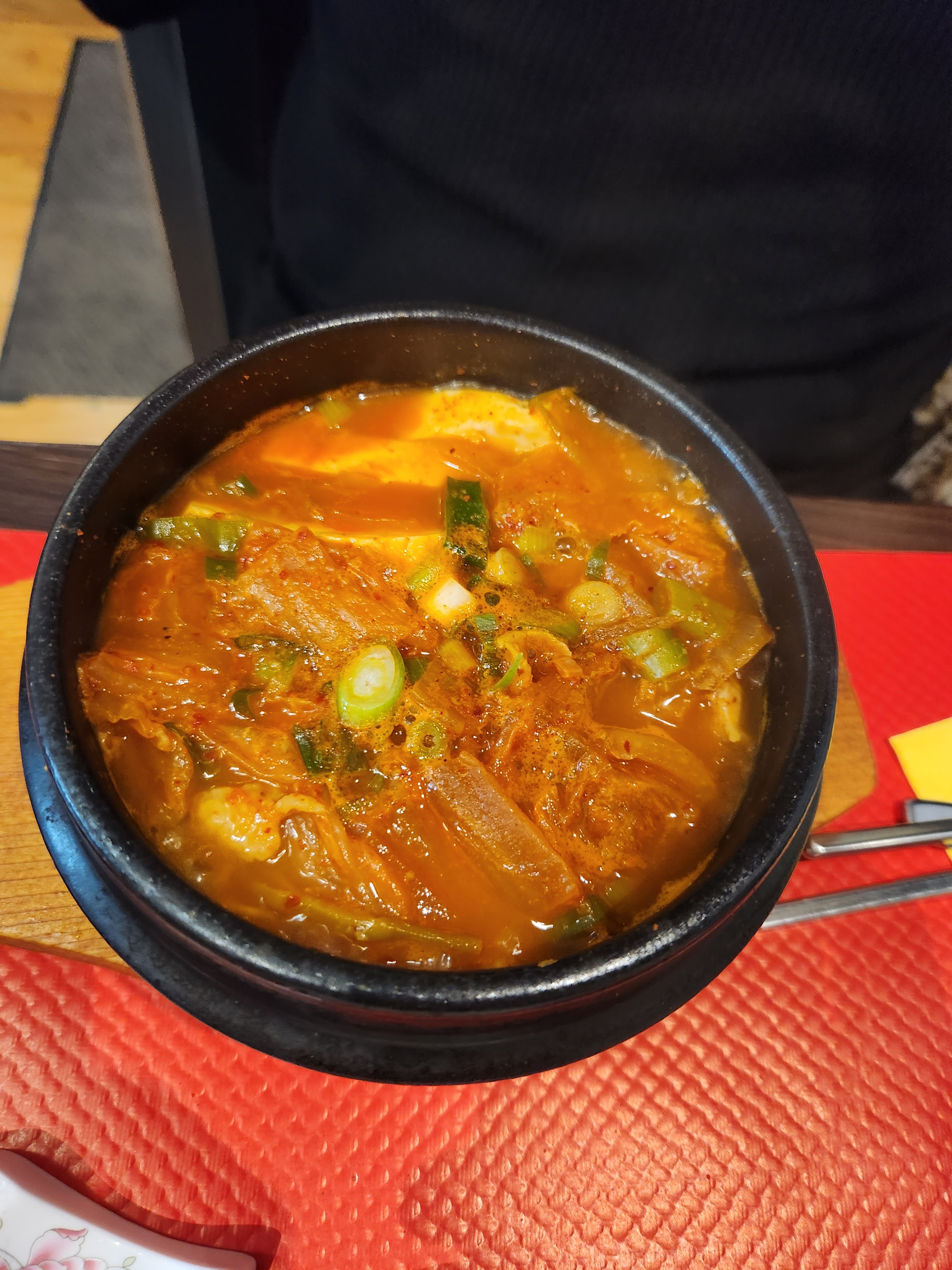 La cuisine était plutôt bonne mais il y a meilleure comme restaurant coréen. Nous reviendrons pour goûter aux autres plats que le ragoût de kimchi tofu et soupe de sundae et porc.