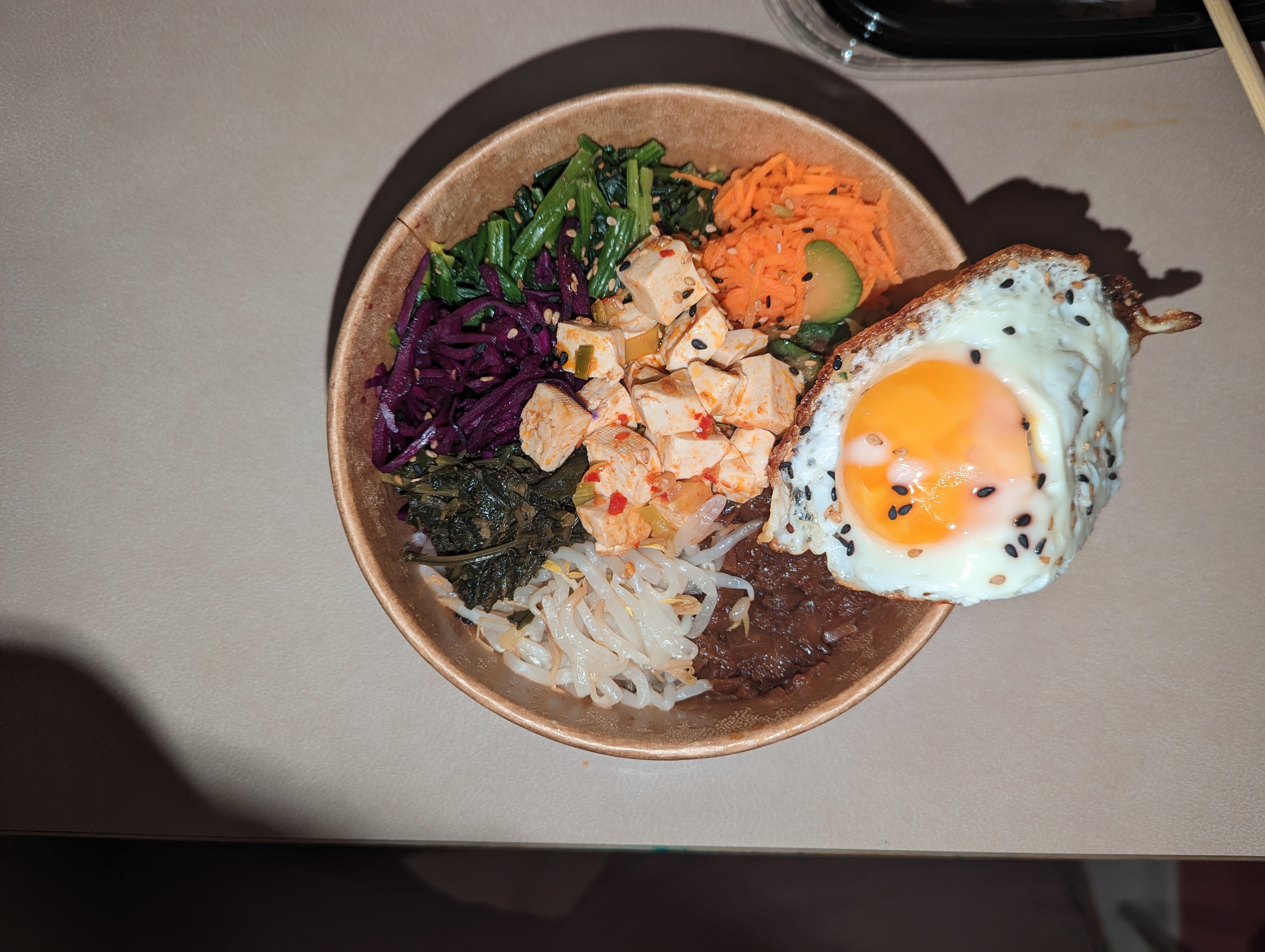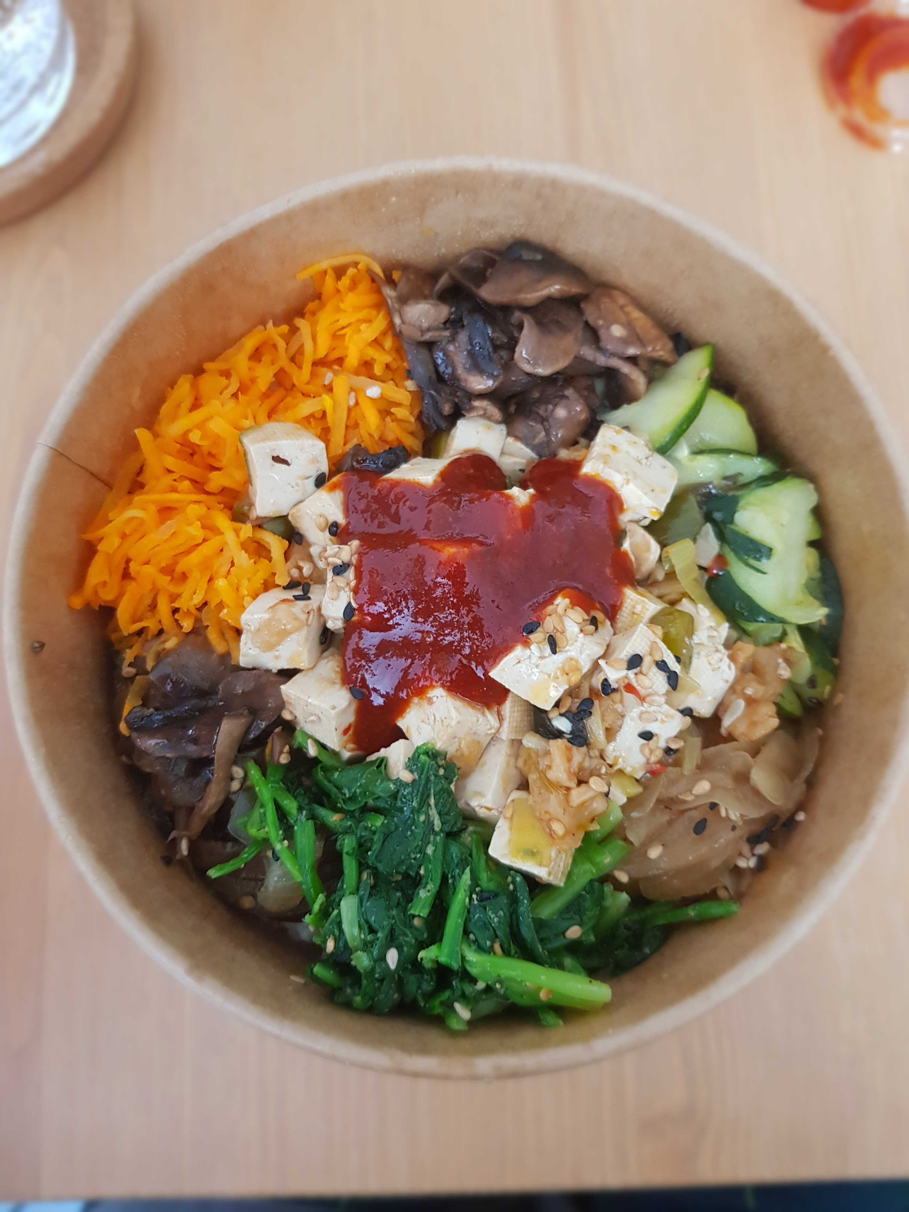 C'est la première fois que je viens prendre un plat à emporter dans ce restaurant coréen et le bibimbap végétarien que j'ai mangé était très bon. Bonne quantité, savoureux, j'y retournerai avec plaisir ! Points positifs à relever : options végétariennes (et même Vegan si on demande sans œuf) et possibilité de venir avec son propre contenant (réduction de 0.50€ sur le plat)
