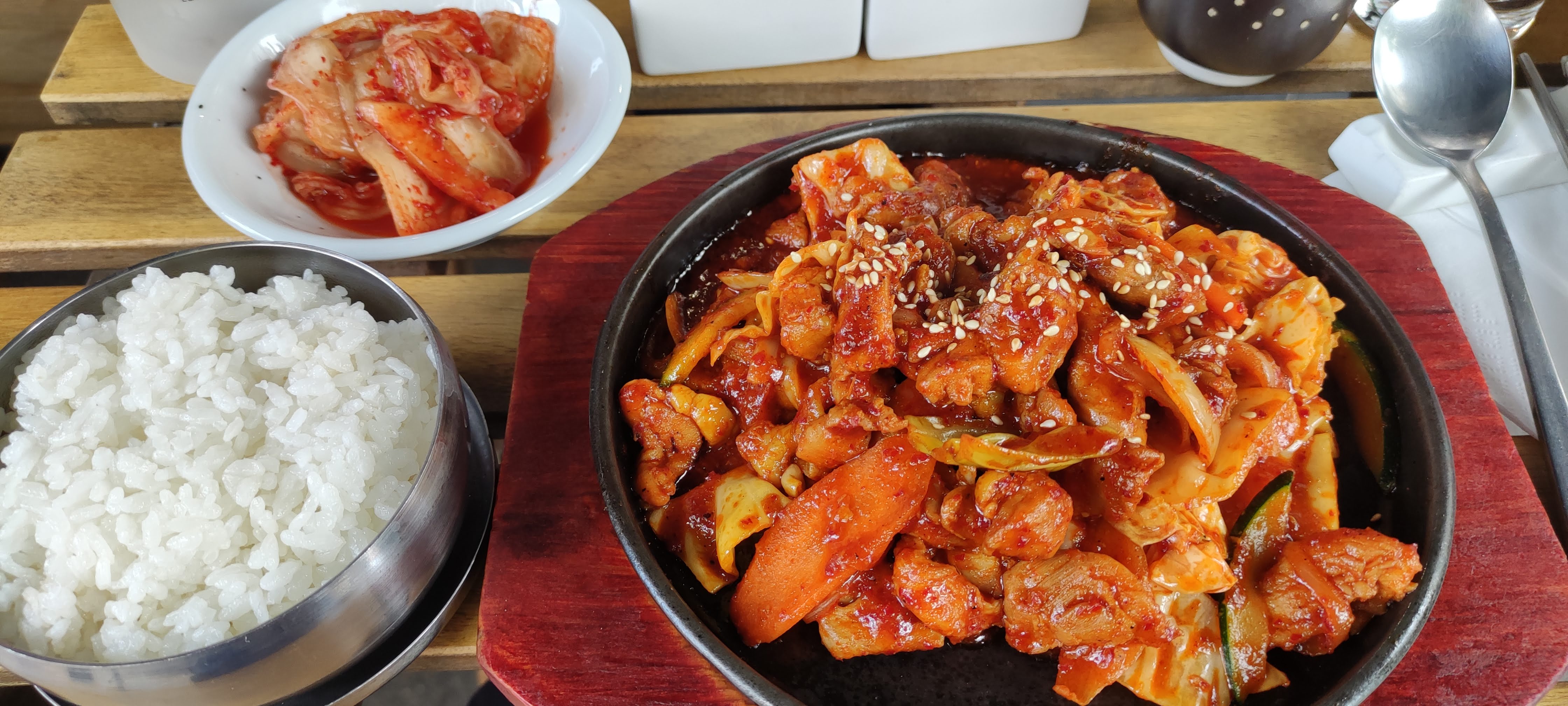 Accueil très chaleureux, bonne ambiance. Le bibimbap était bon et généreux, des améliorations à faire (concernant la sauce du poulet frit et la sauce piquante à disposition). Le kimchi n'était pas fameux par contre et les banchan sont à revoir. Dans l'ensemble c'était tout de même une bonne expérience.