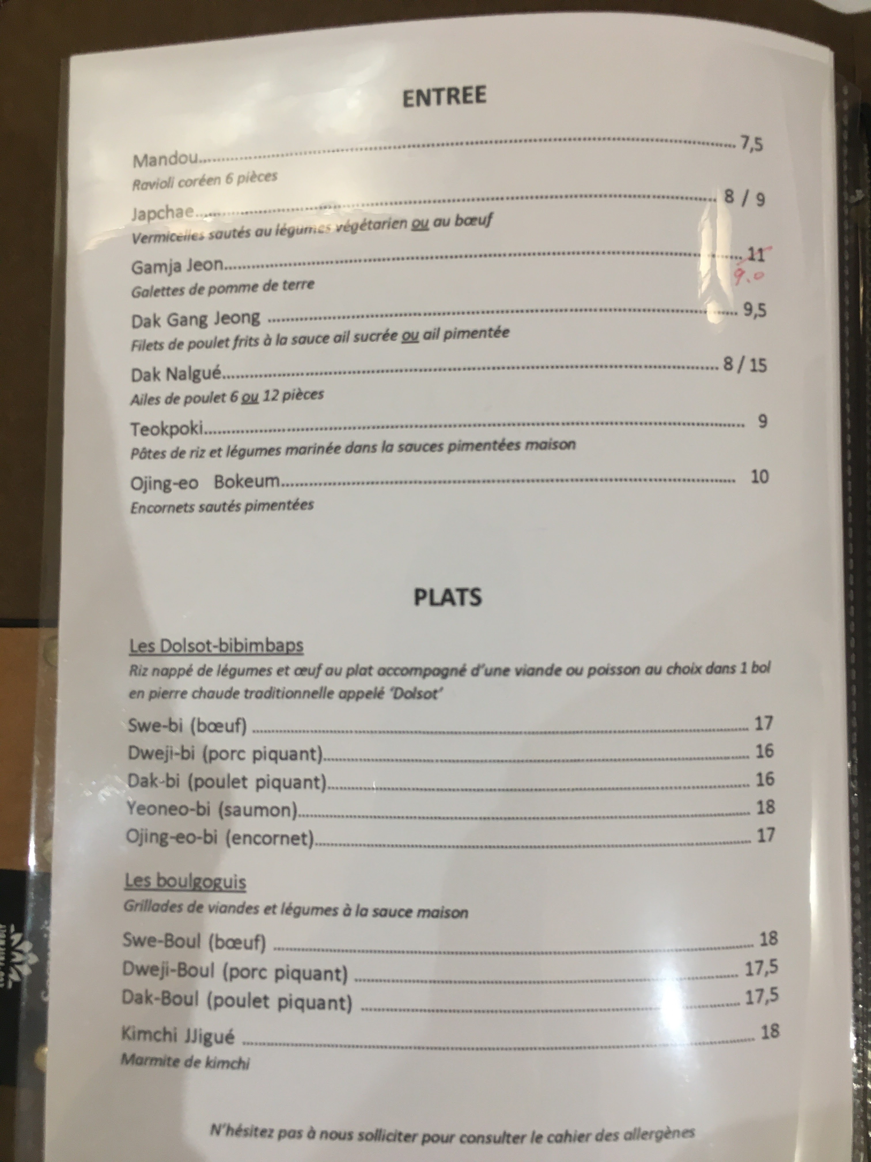 Vraiment de très bons plats! Leur bibim bap est vraiment top,servi dans un bol en terre cuite qui renforce le goût du riz! Un dessert révisité pas mal! Le prix est correct et la qualité y est! Attention l'établissement est assez fréquenté! Entrée +plat+ dessert +boisson 22€/personne