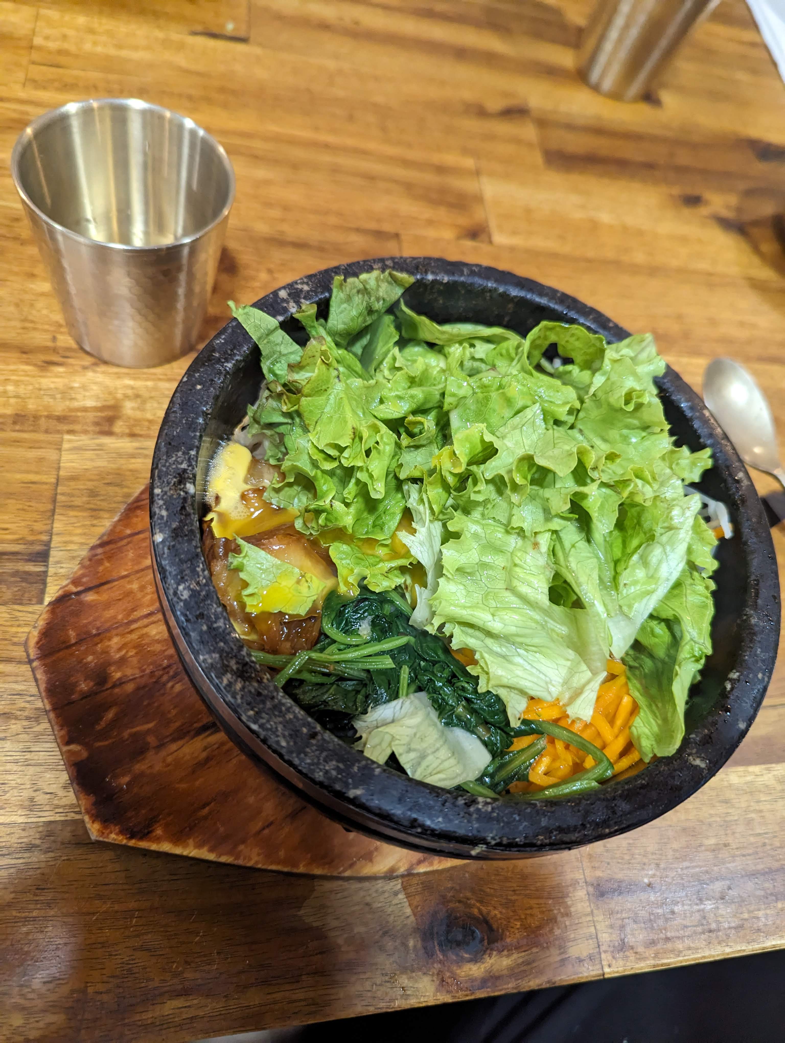 Personnel très accueillant, bimbimbap délicieux et très copieux! Un régal !