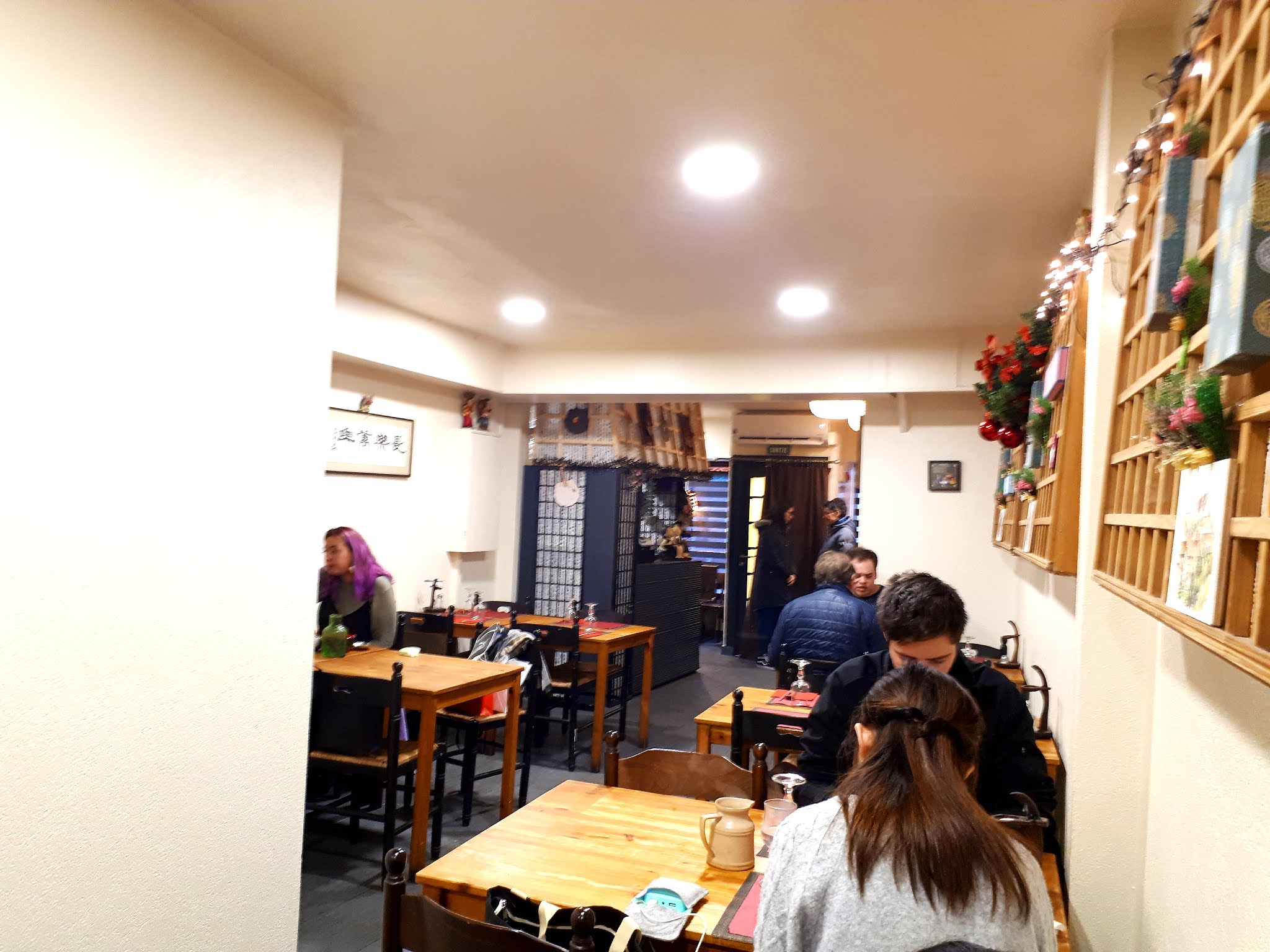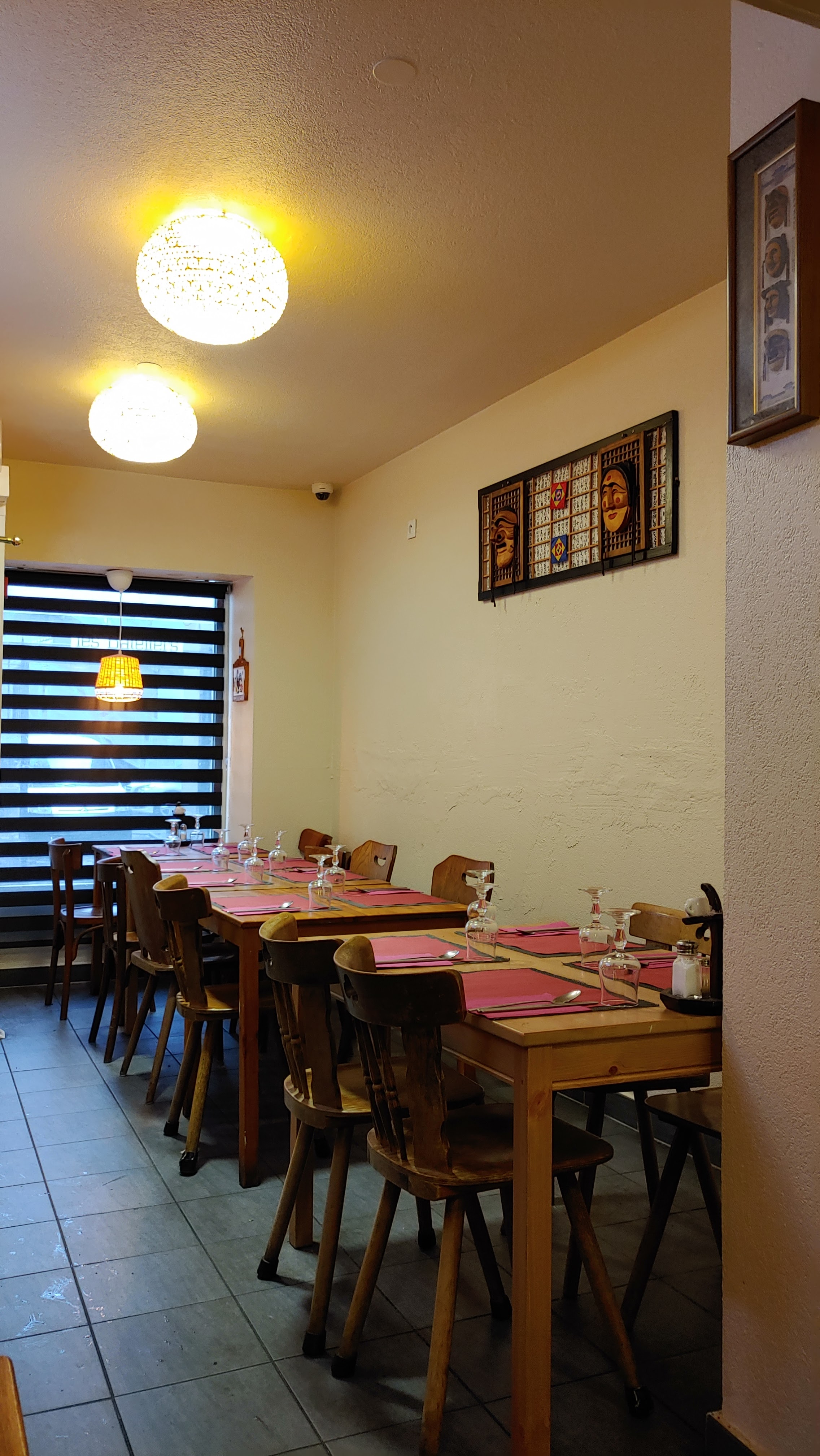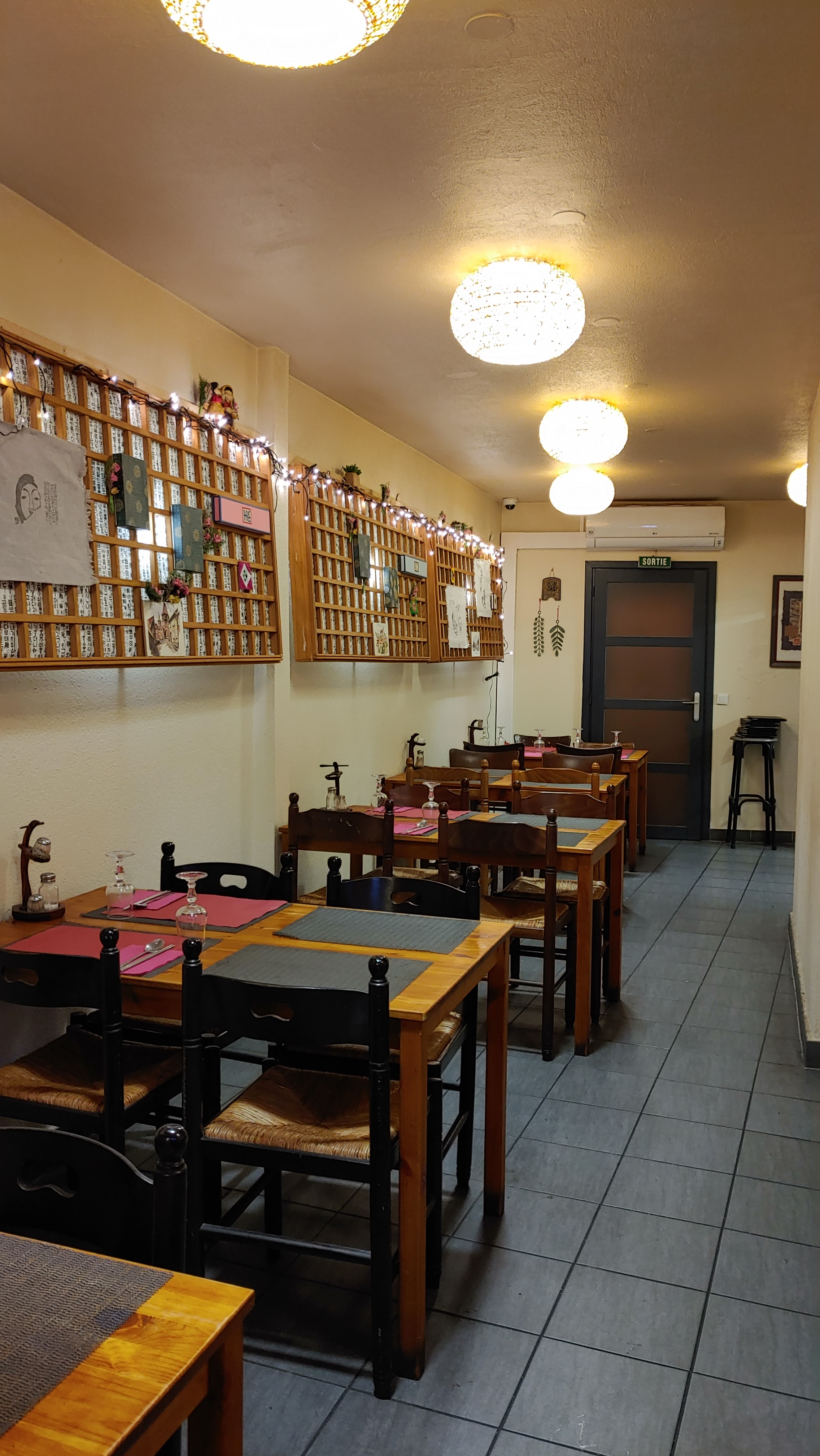 Pas très grand mais très authentique Madame fait la cuisine et monsieur le service Les plats sont un peu moins piquant qu en Corée, visiblement la cuisinière s' est adaptée à nos goût d'européens On y va pour changer d'air